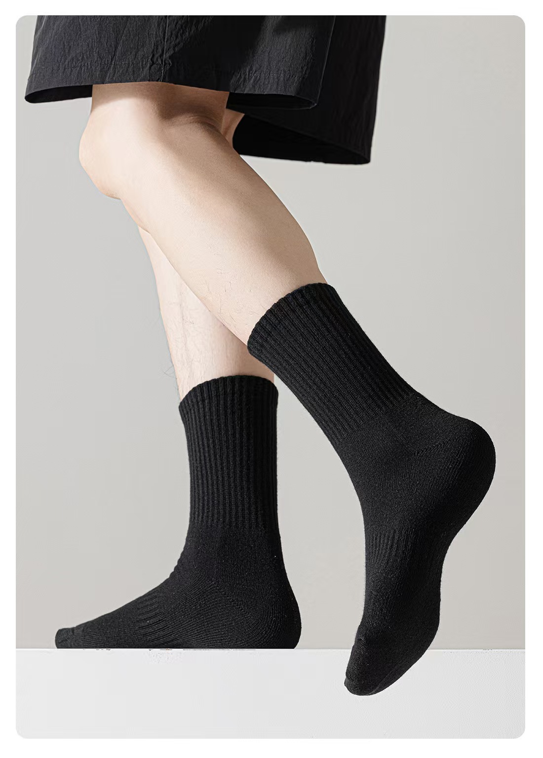 厚袜子男士秋冬季中高筒毛巾底吸汗透气纯色休闲百搭毛圈运动棉袜