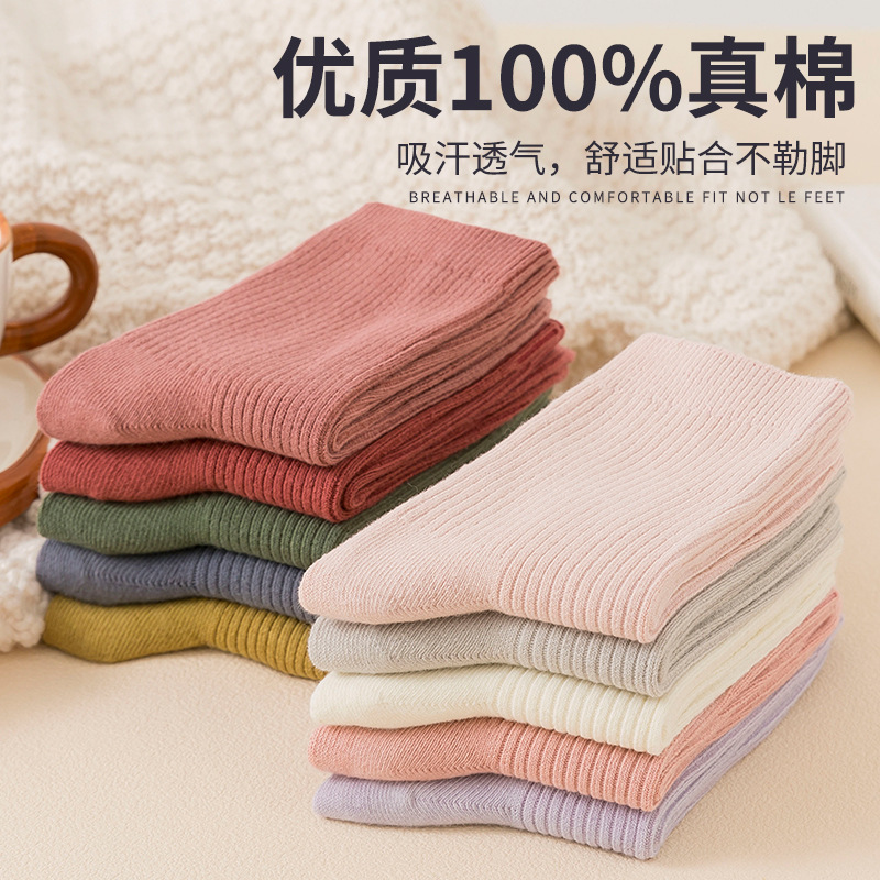 100%纯棉袜子抗菌防臭中筒春秋冬女款堆堆袜吸汗保暖潮流百搭时尚