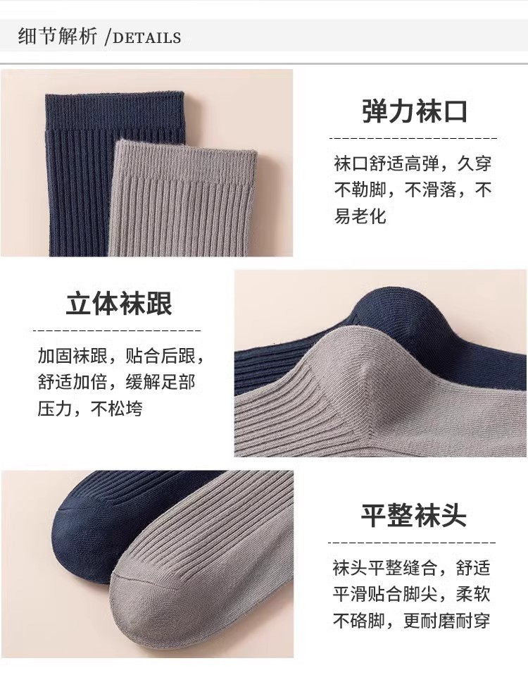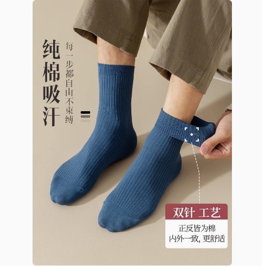 纯棉全棉抗起球棉袜男商务春秋款中筒袜子吸汗防臭不臭脚四季长袜