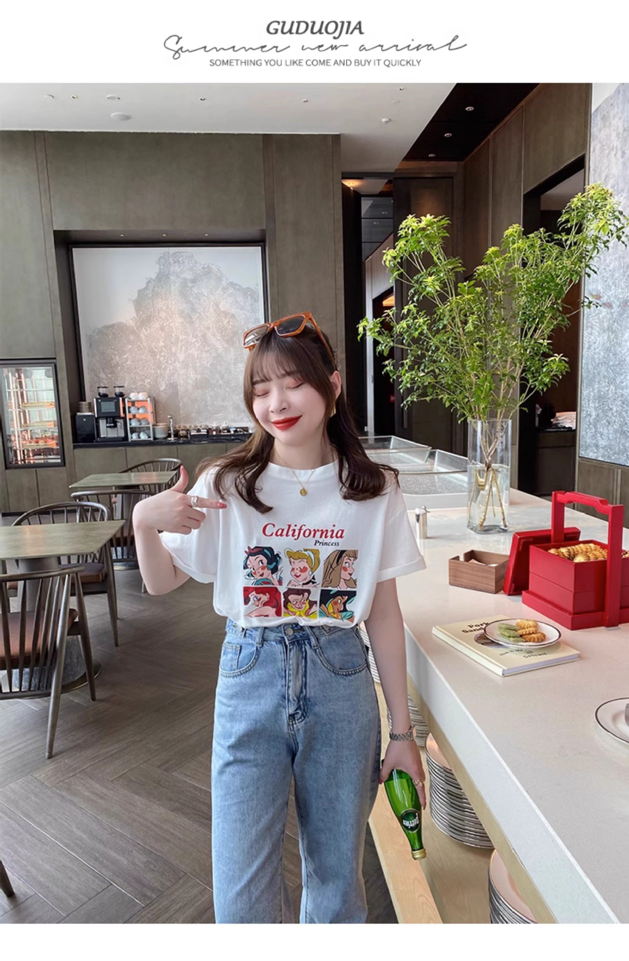 重磅纯棉美式t恤女短袖夏季设计感小众宽松短袖体恤港味chic上衣