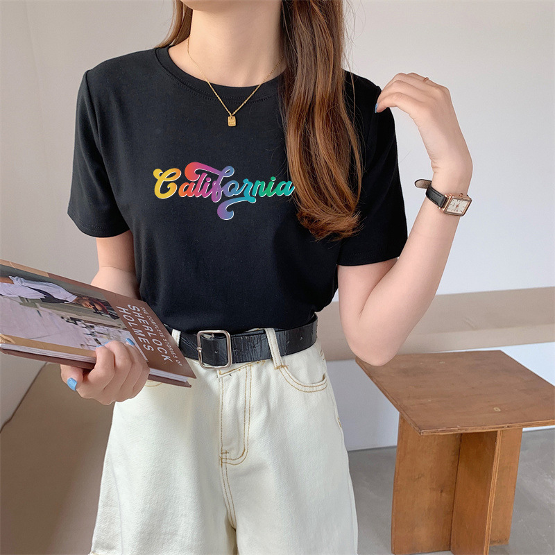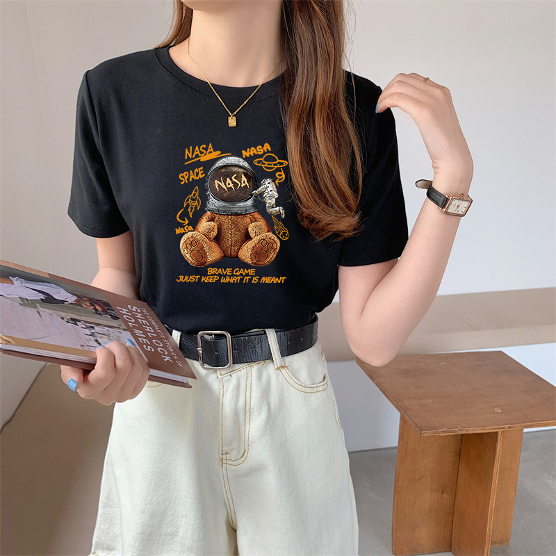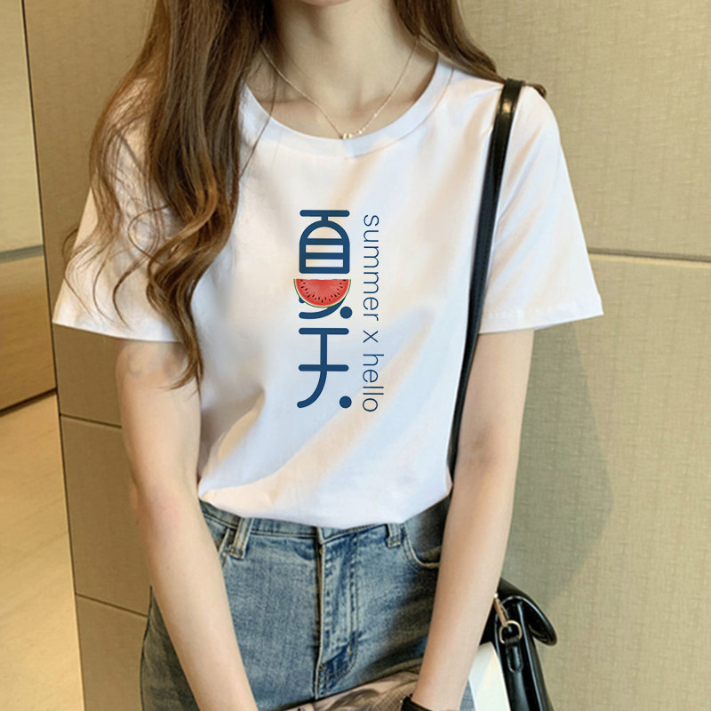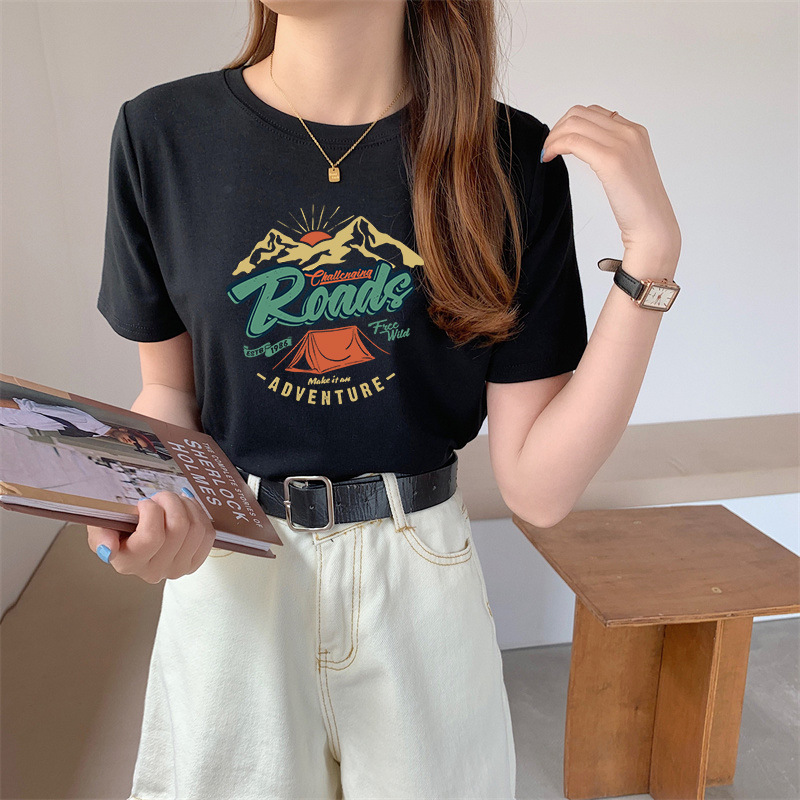 2026短袖t恤女夏季韩版宽松圆领印花百搭原宿风上衣潮流女装体恤