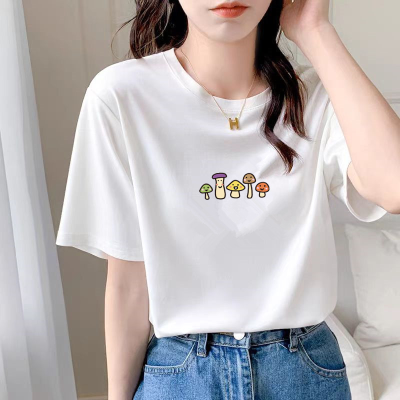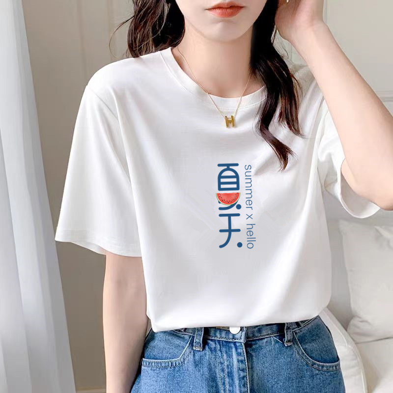 2026夏季新款纯棉女装短袖t恤女士白色圆领上衣打底衫批