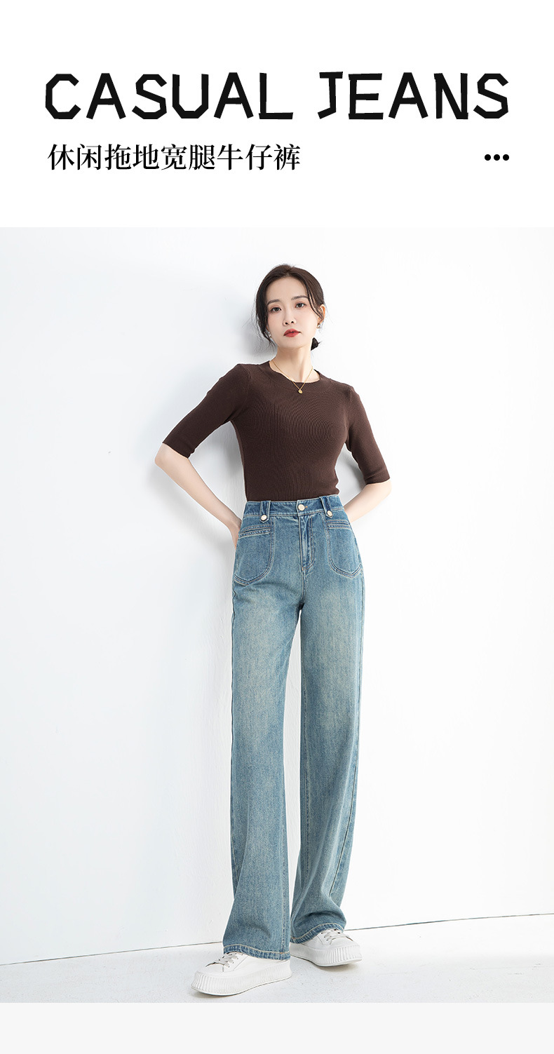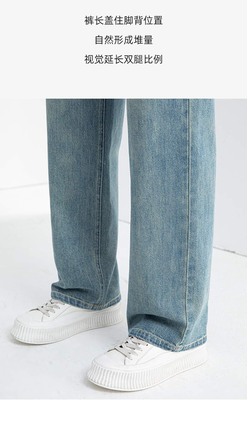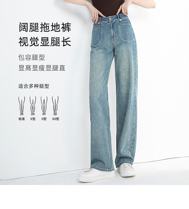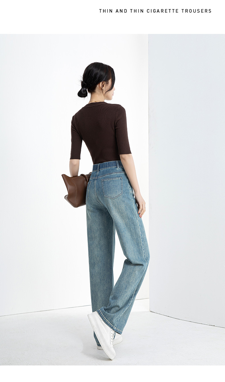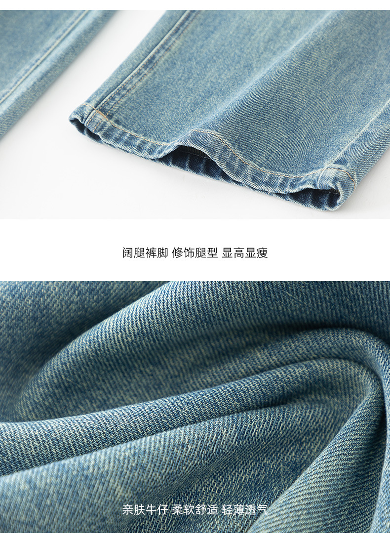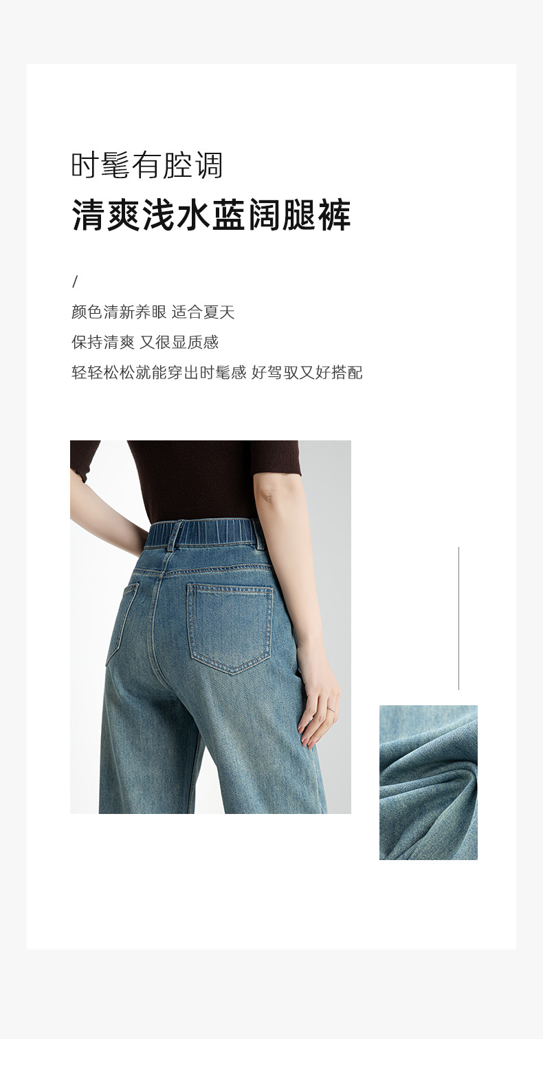 夏季浅蓝拖地宽腿裤女2026新款松紧高腰显瘦休闲时尚牛仔裤