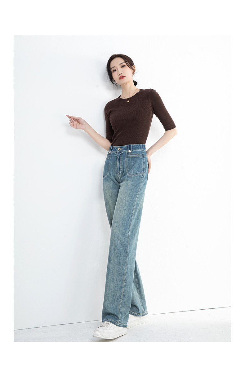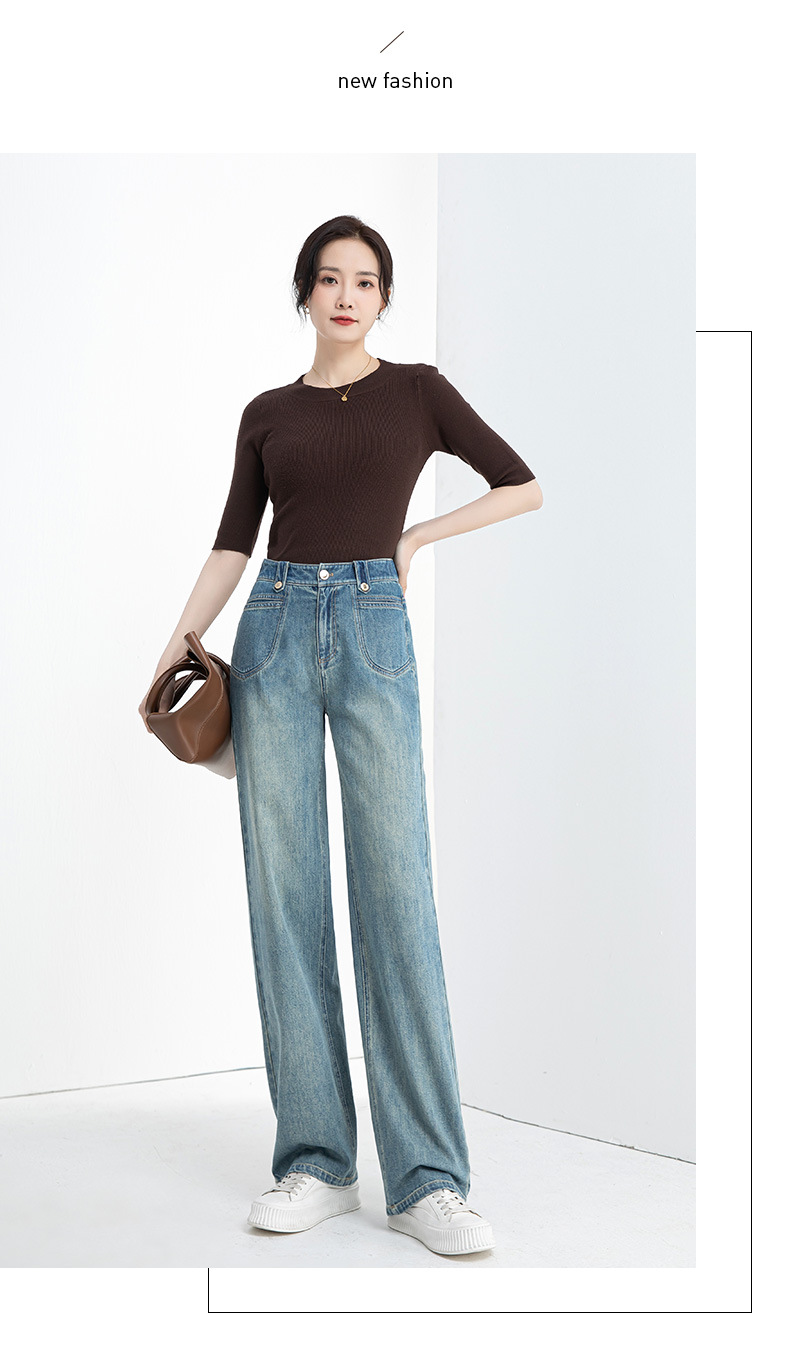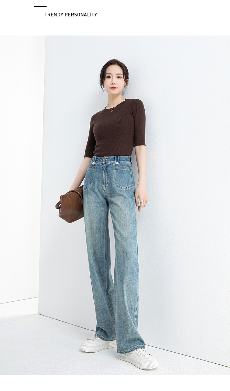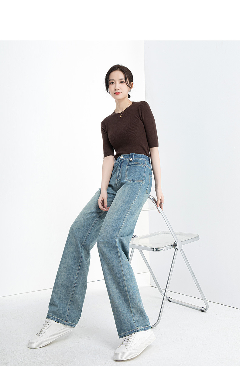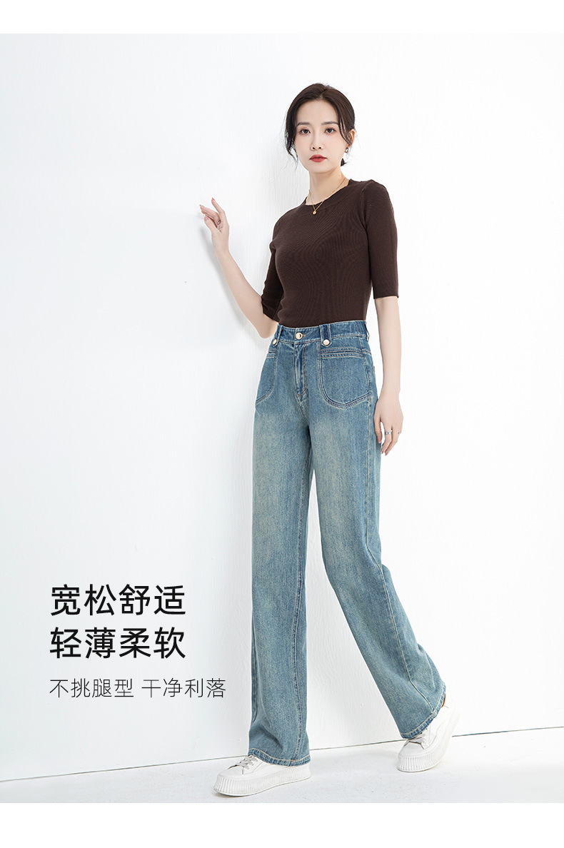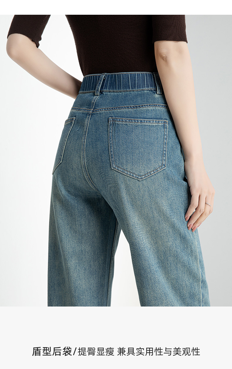 夏季浅蓝拖地宽腿裤女2026新款松紧高腰显瘦休闲时尚牛仔裤