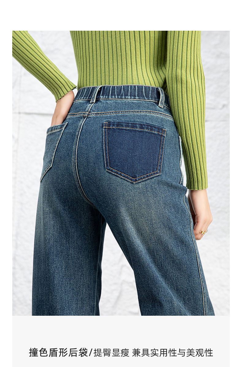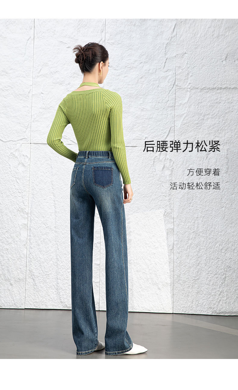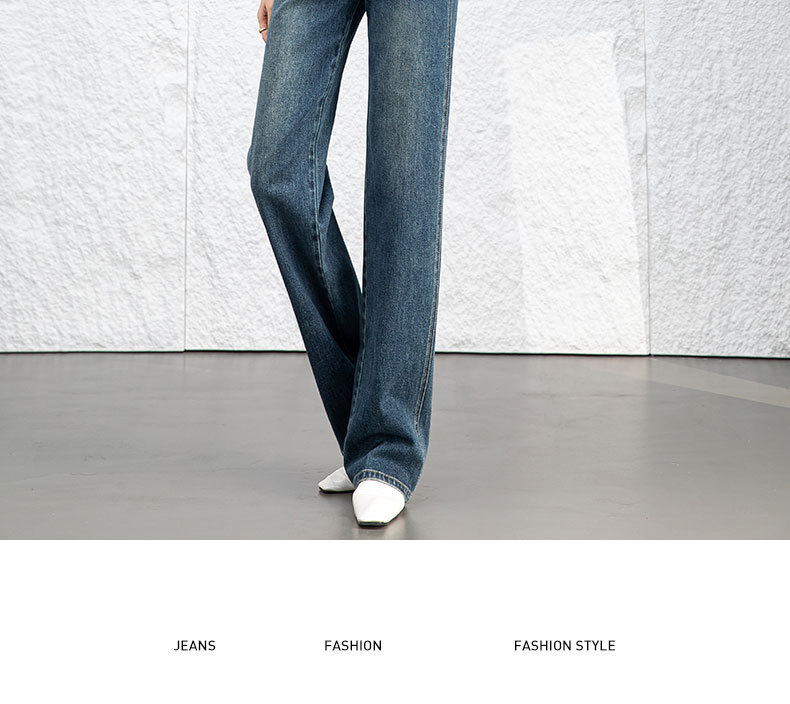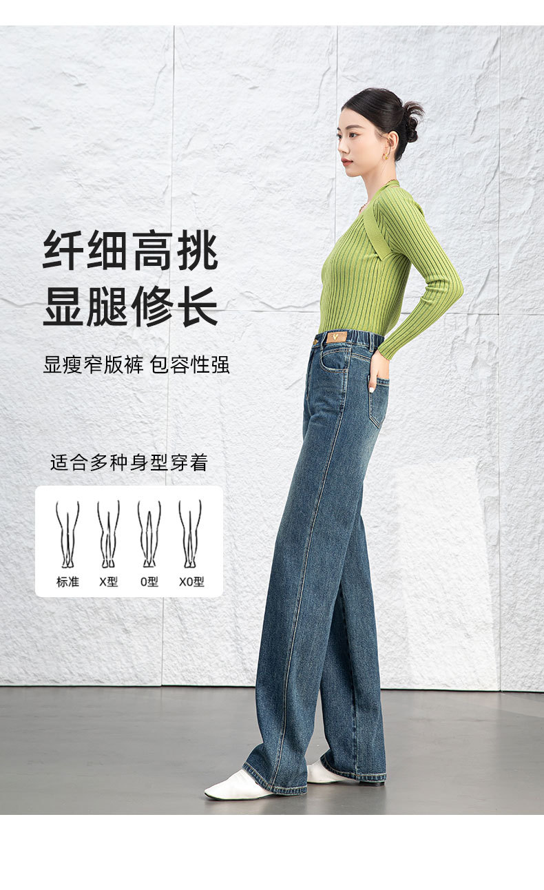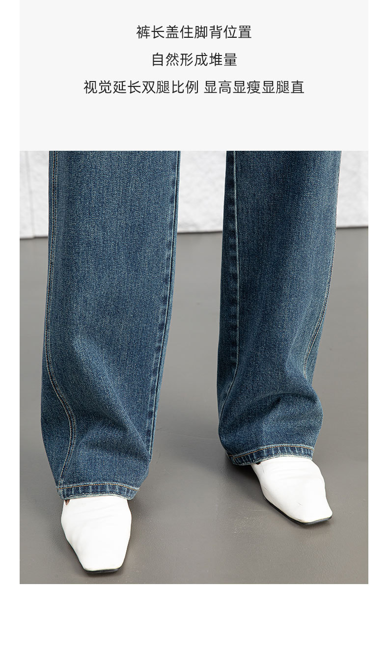 复古直筒牛仔裤女2026新款春季显瘦窄版阔腿长裤子后腰松紧