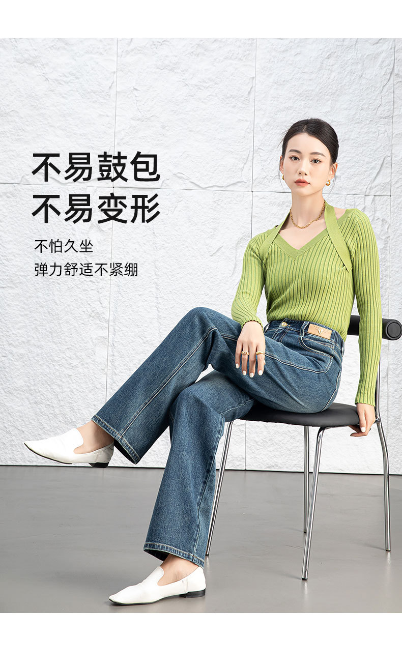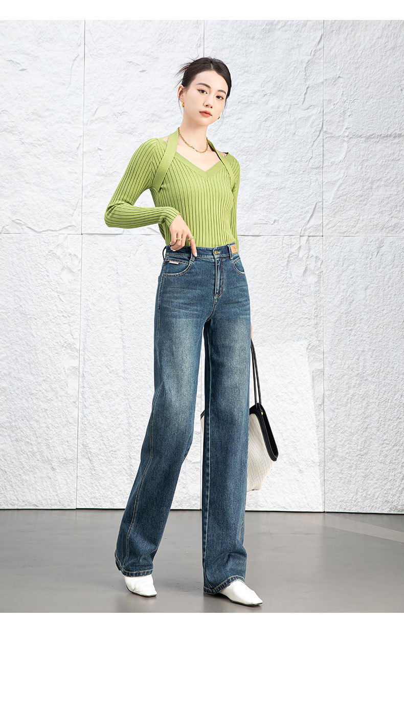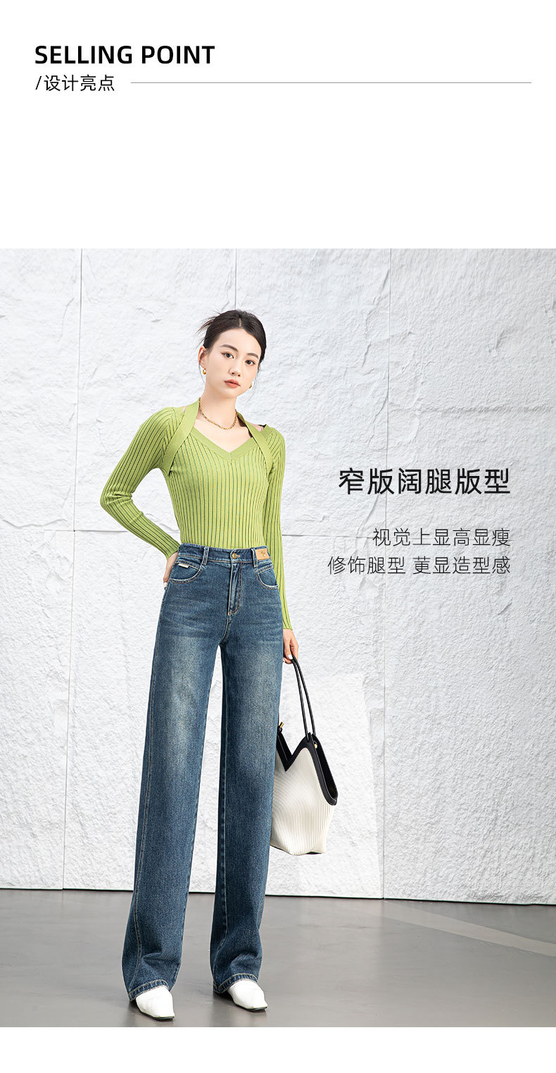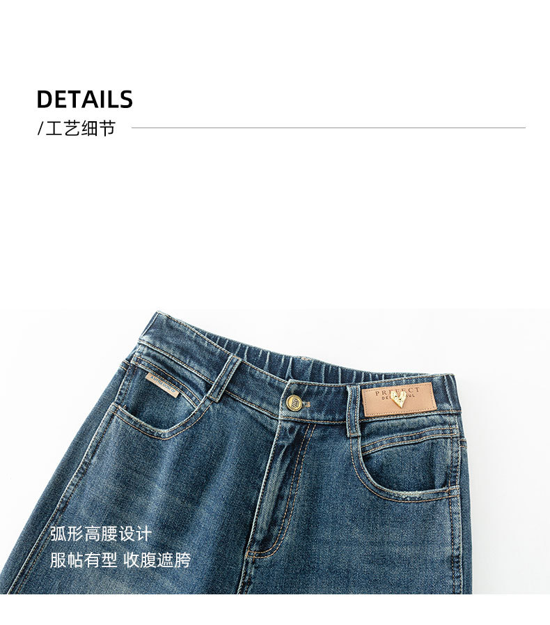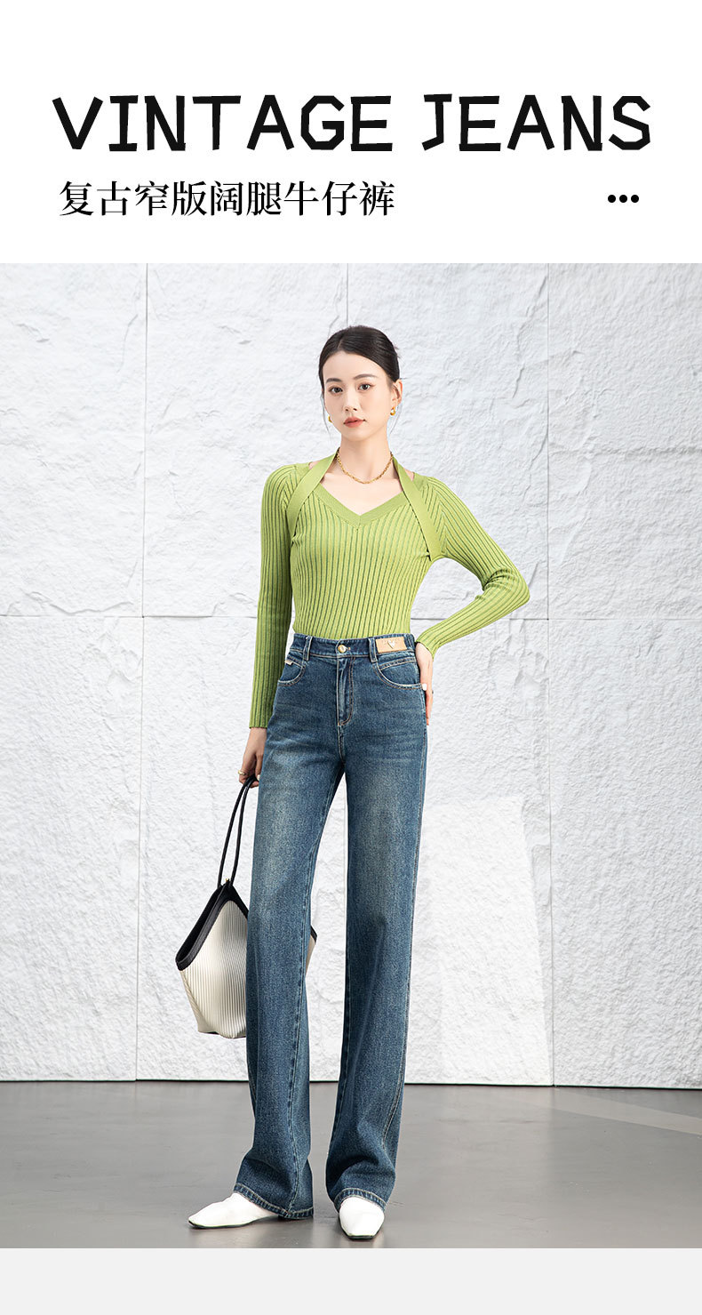 复古直筒牛仔裤女2026新款春季显瘦窄版阔腿长裤子后腰松紧