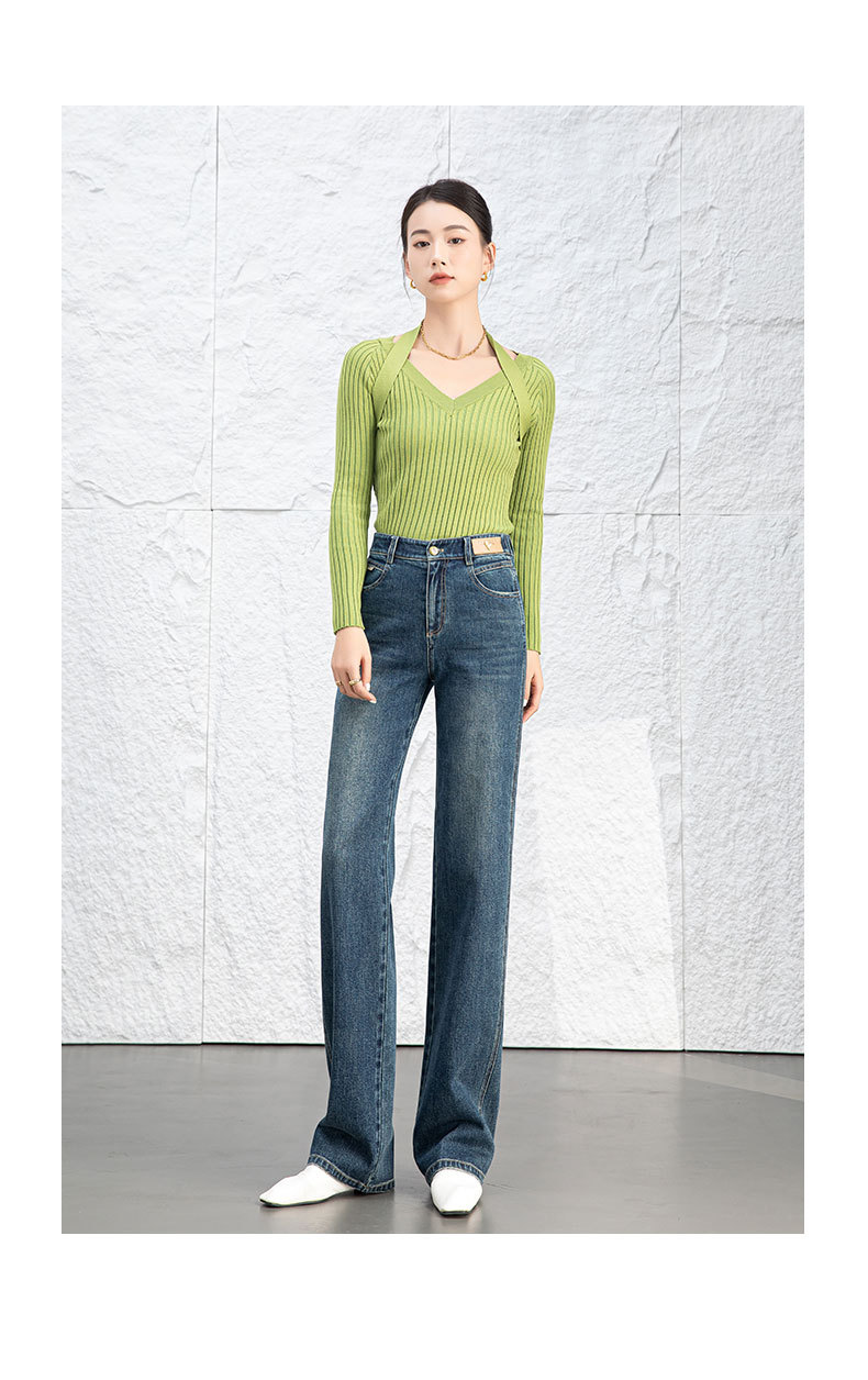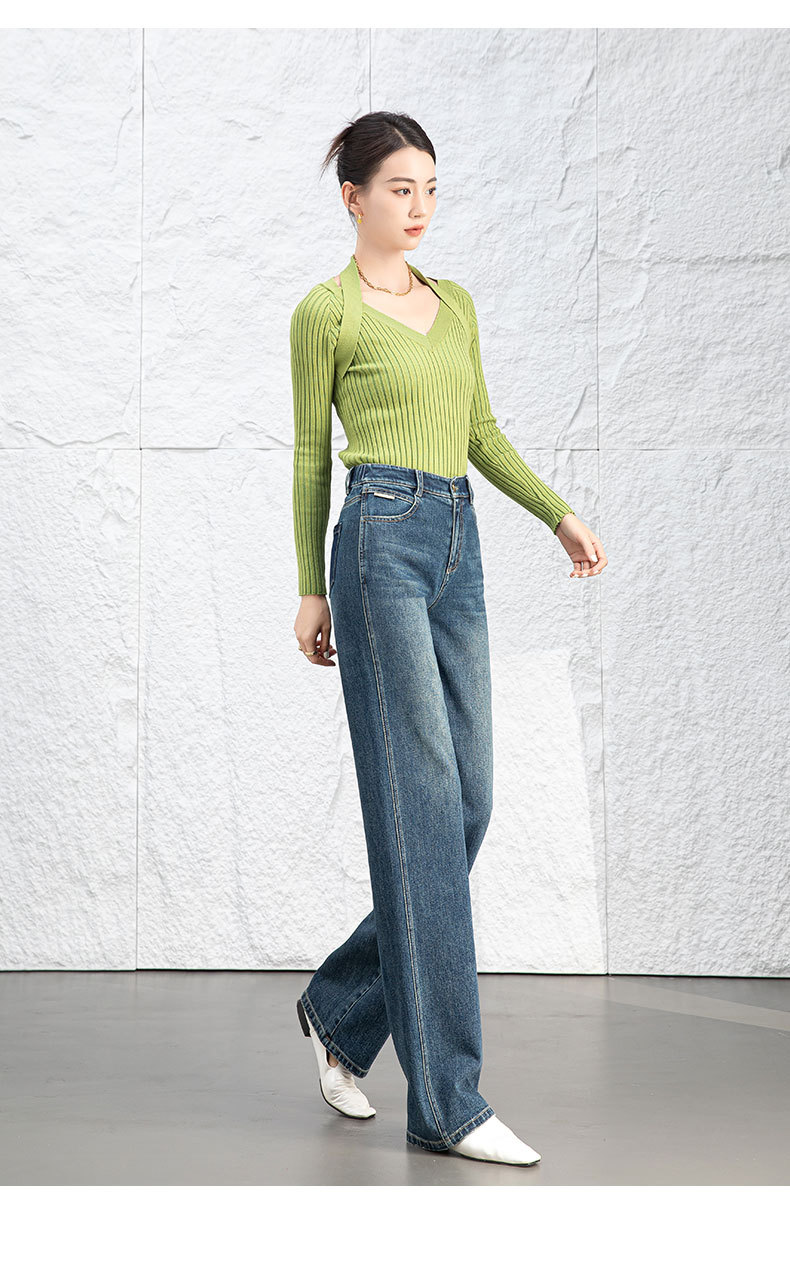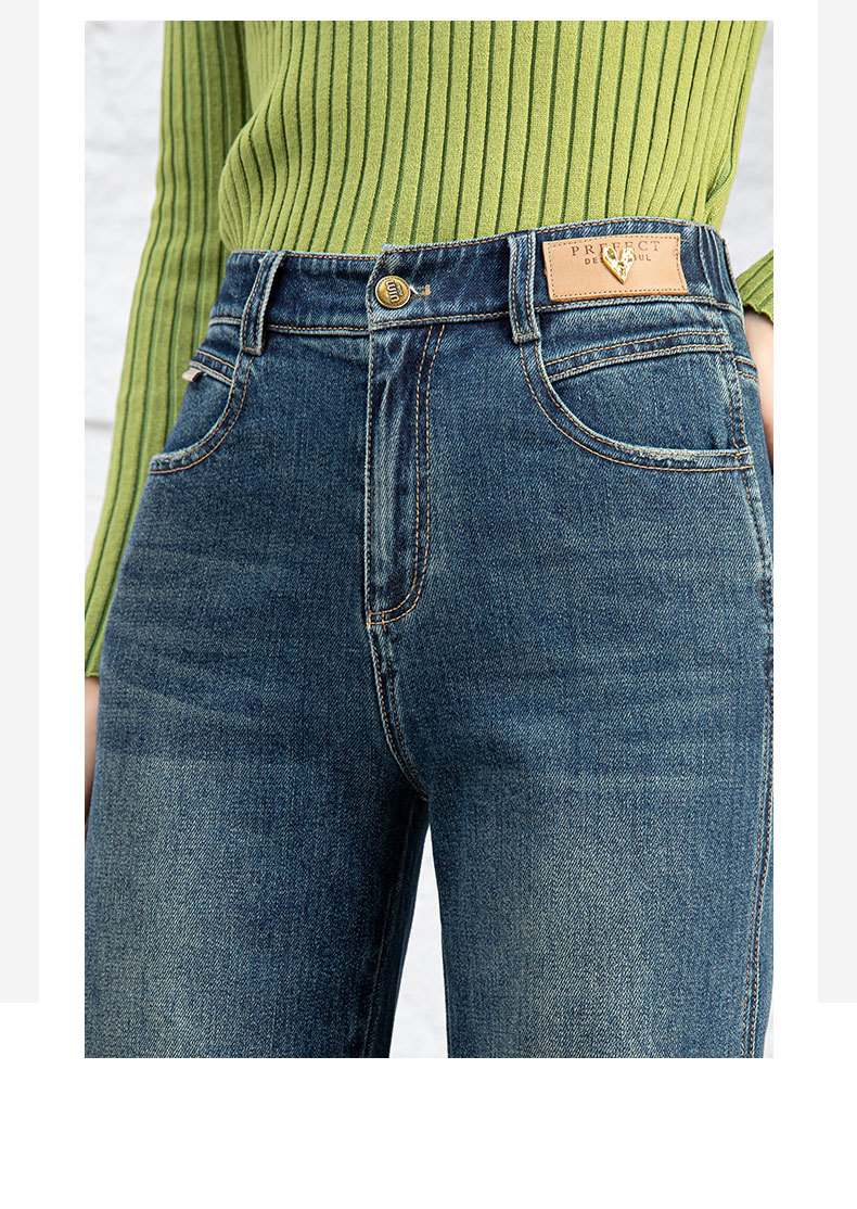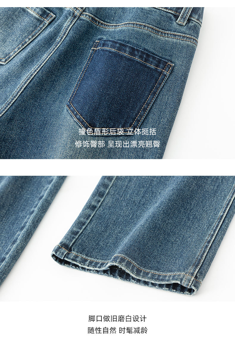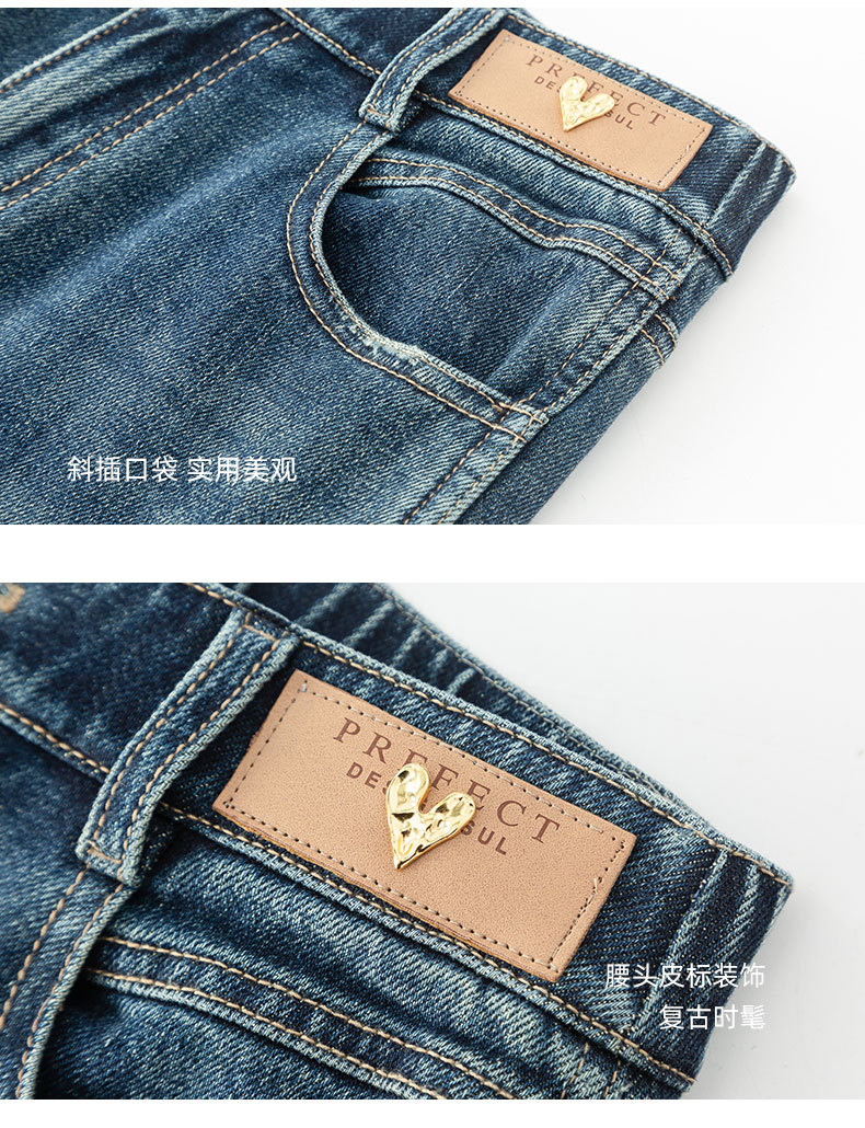 复古直筒牛仔裤女2026新款春季显瘦窄版阔腿长裤子后腰松紧