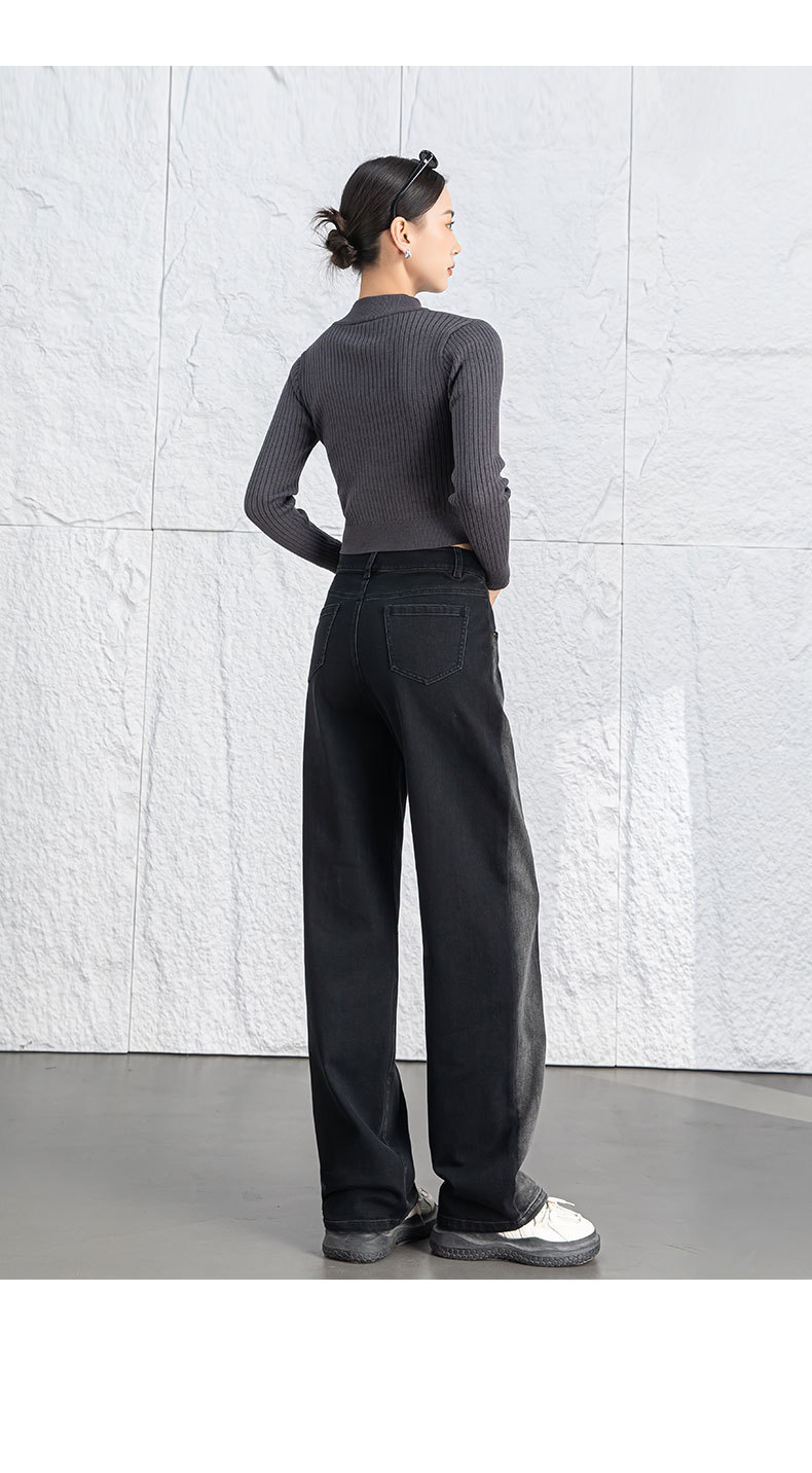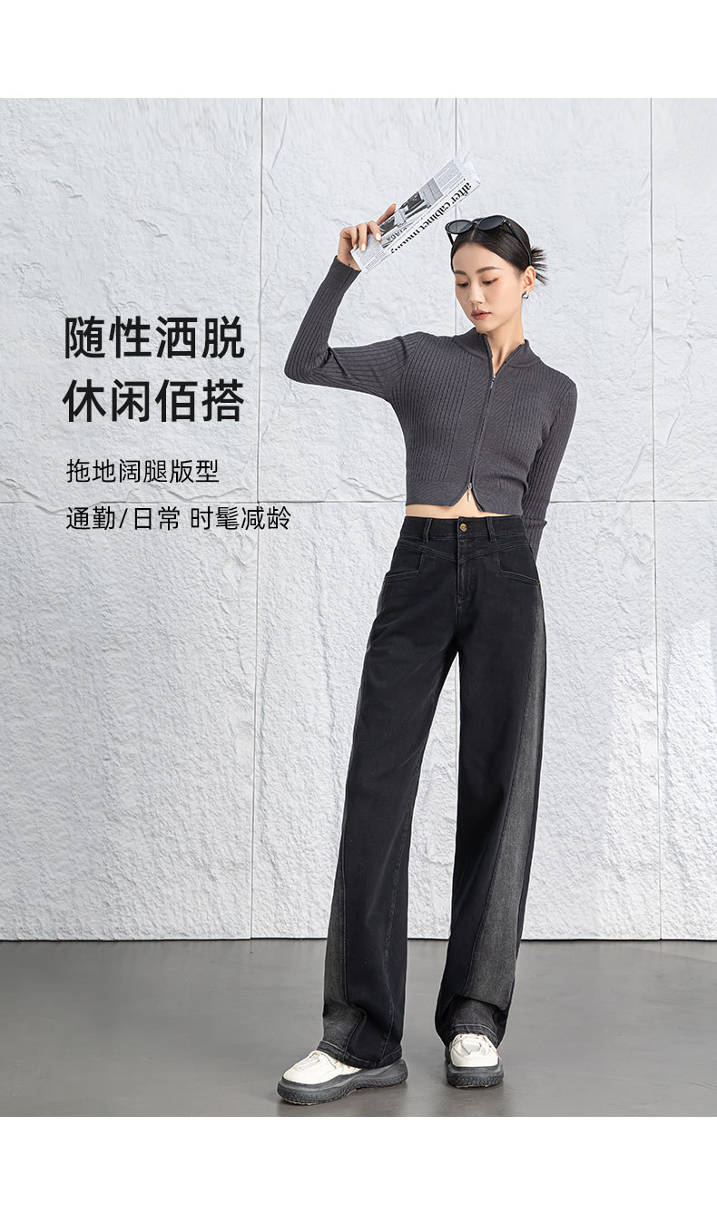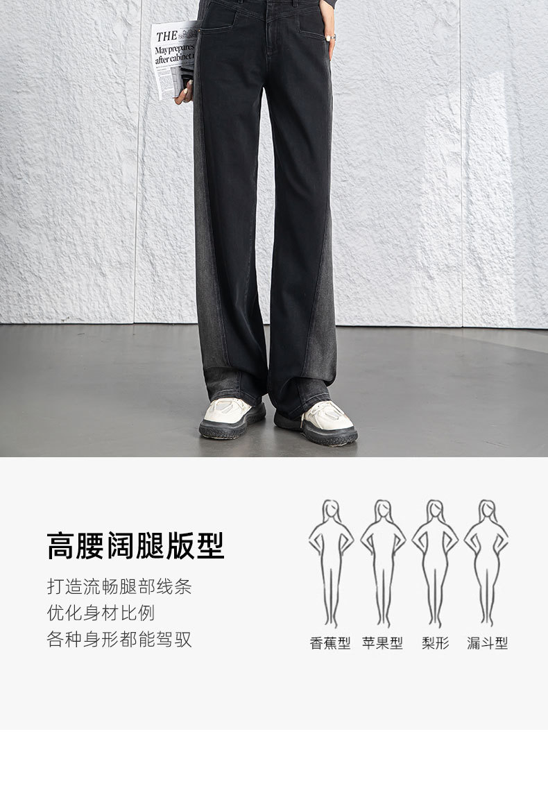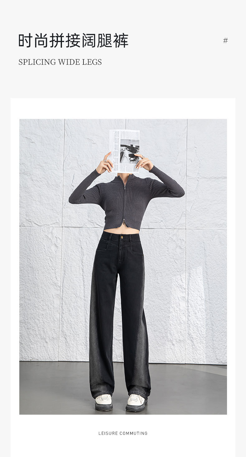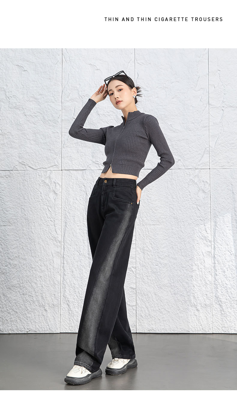 黑色阔腿牛仔裤女春季高腰显瘦小个子直筒裤子2026年新款