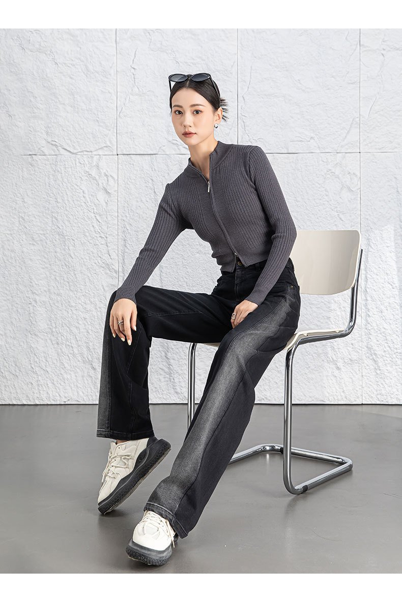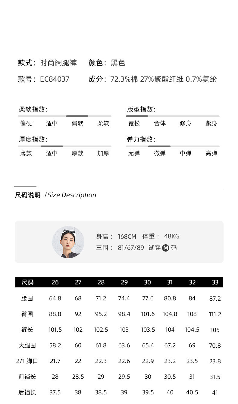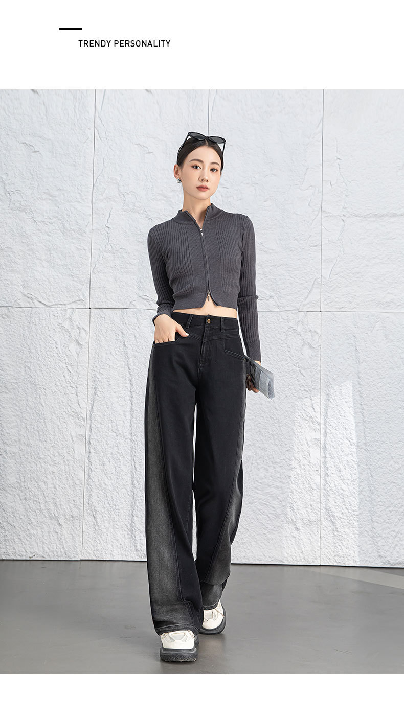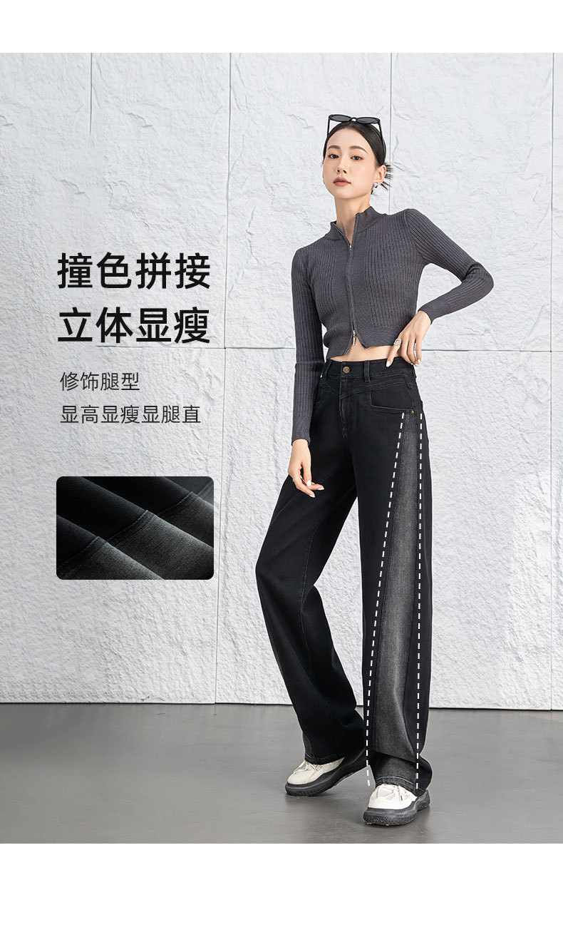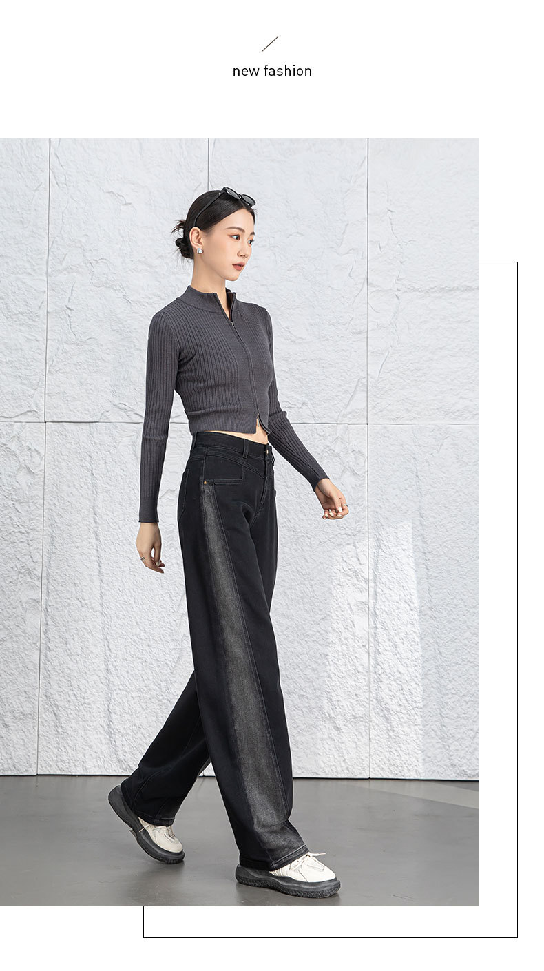 黑色阔腿牛仔裤女春季高腰显瘦小个子直筒裤子2026年新款