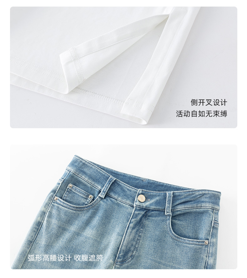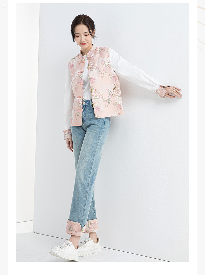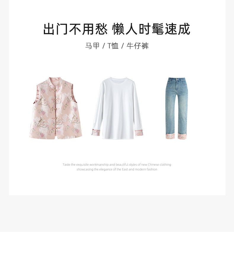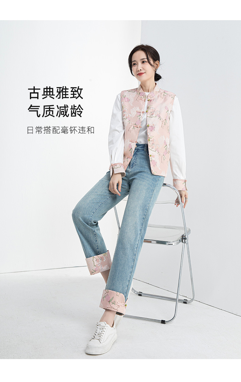 新中式拼接提花直筒裤2026春夏新款高腰显瘦弹力国风牛仔裤