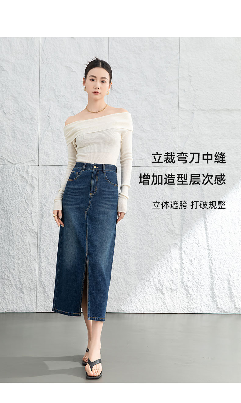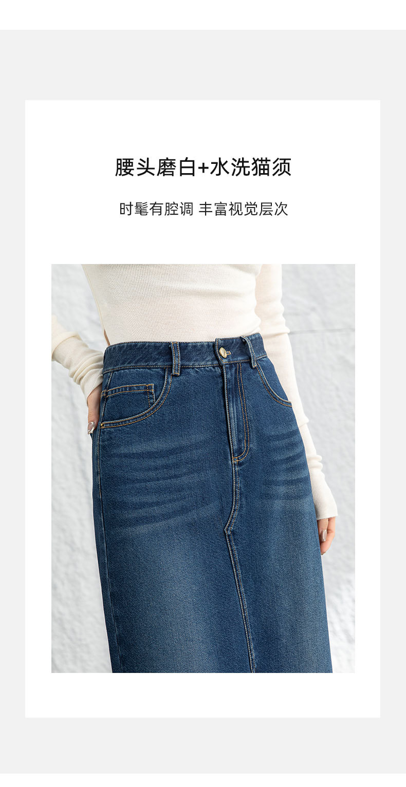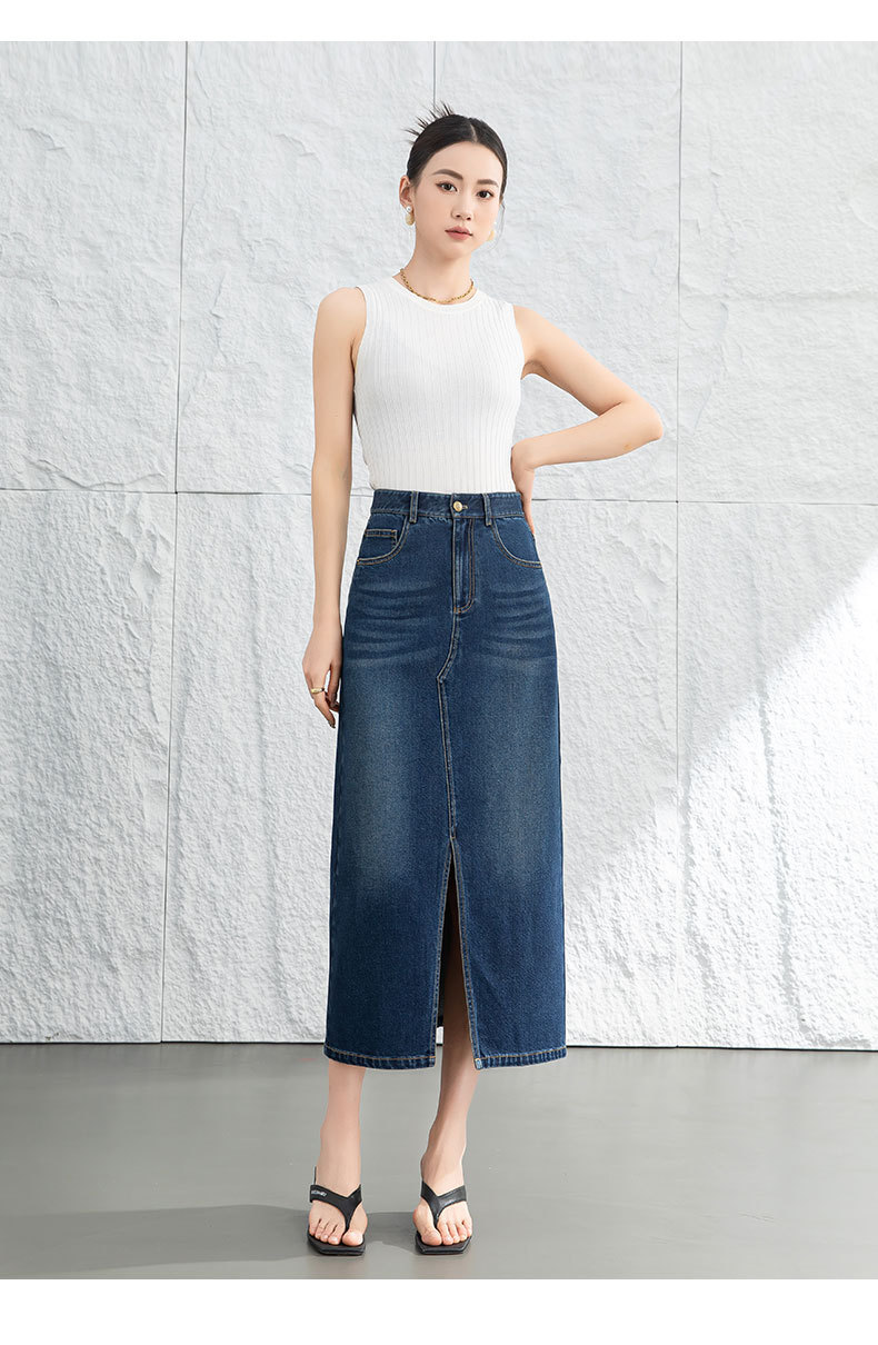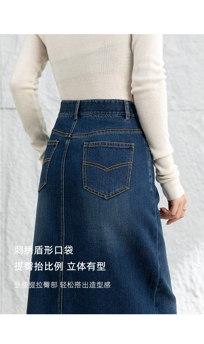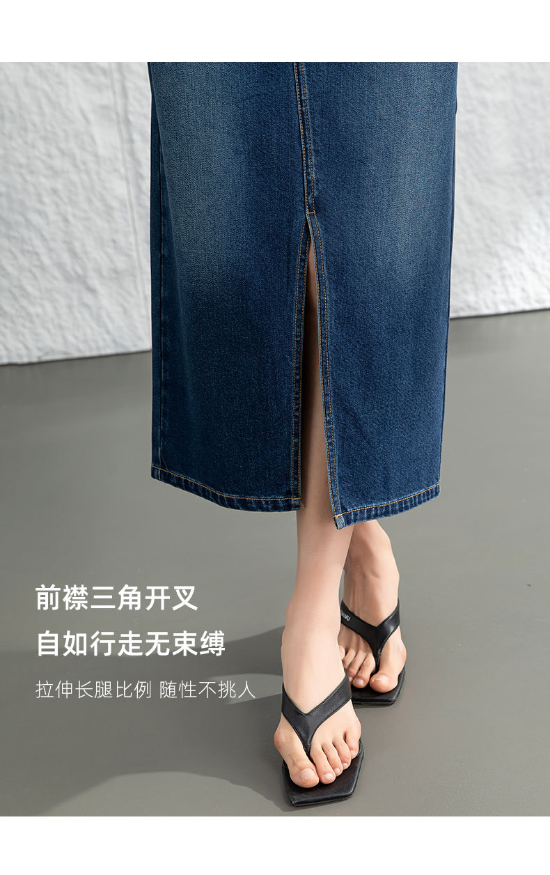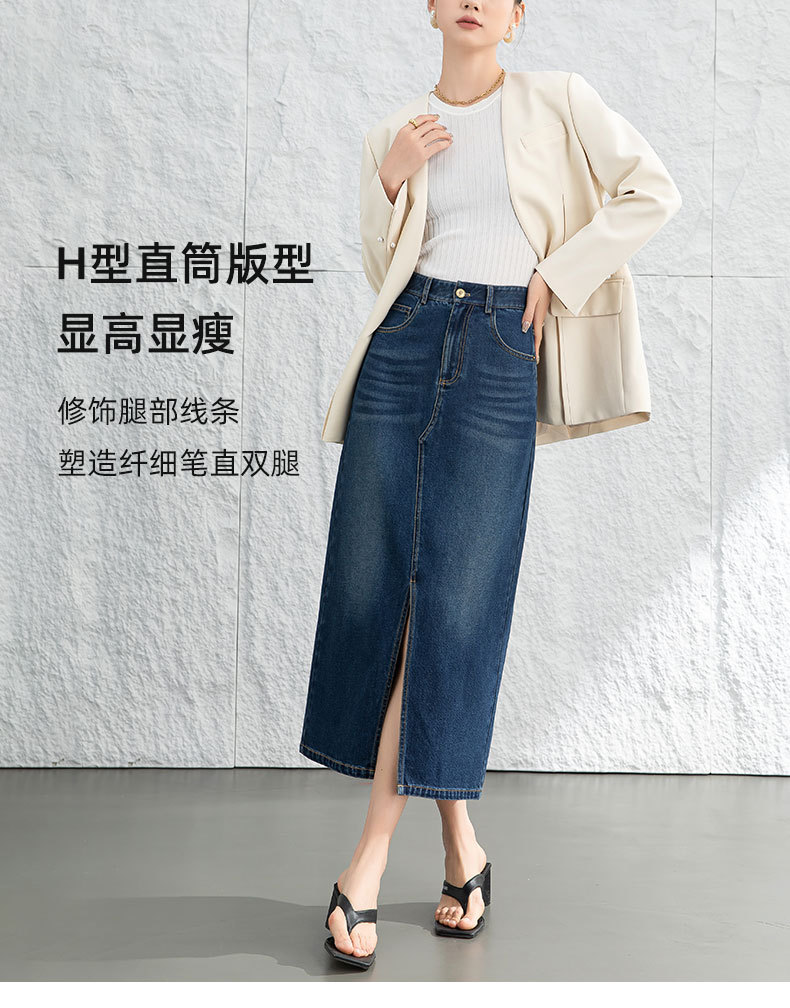 鑫阁 设计感a字直筒牛仔半身裙女2026春新品前开叉美式复古中长裙