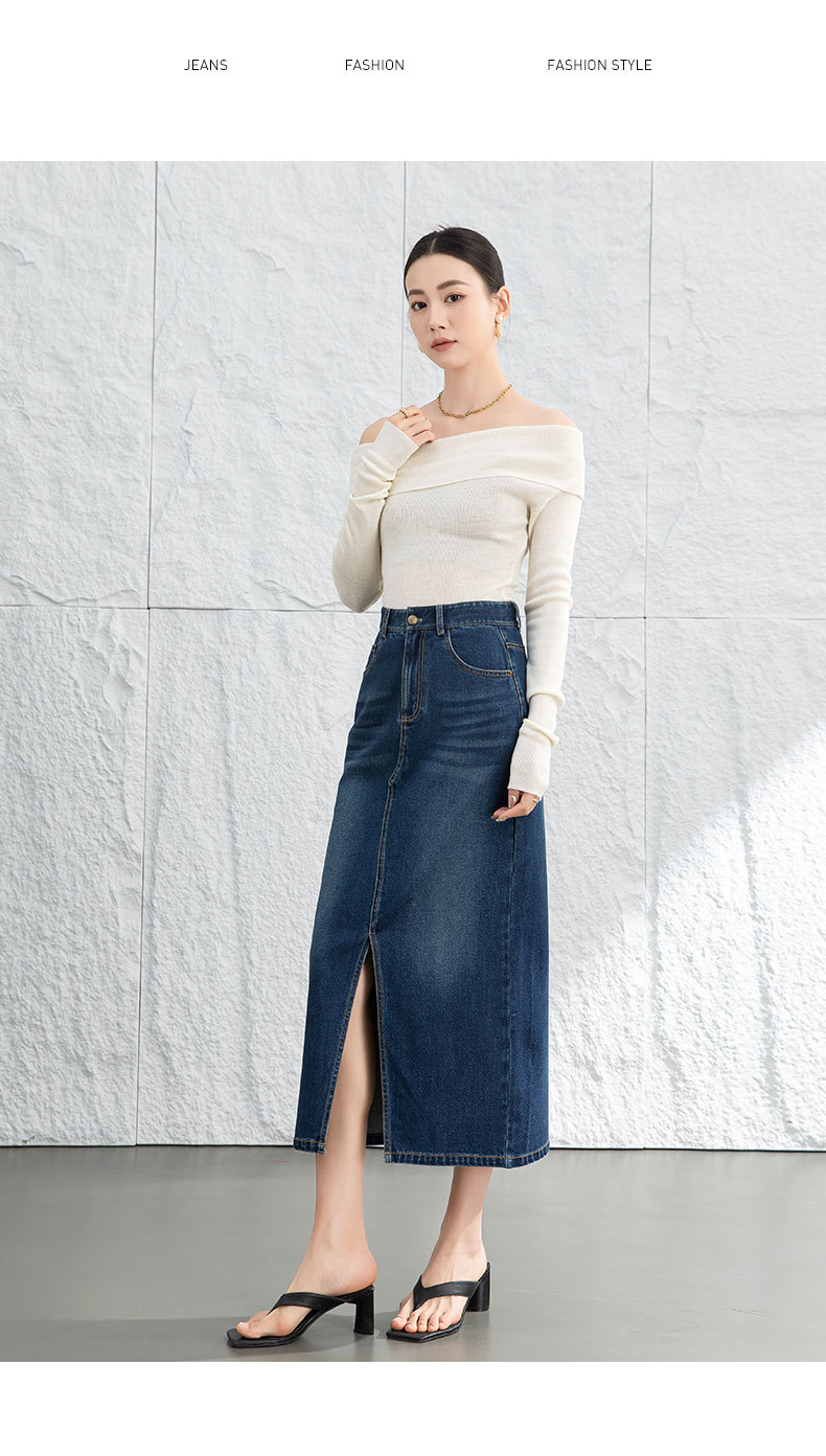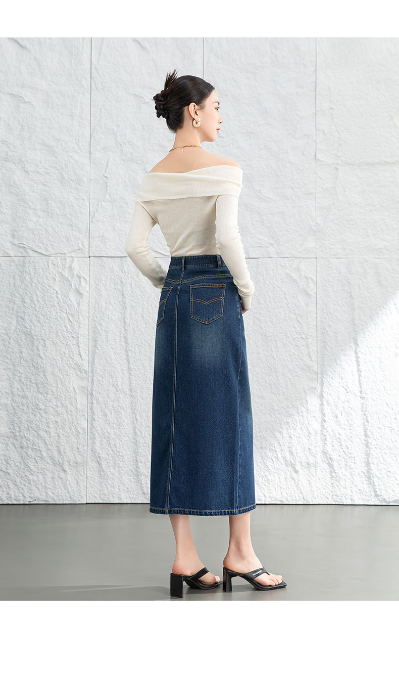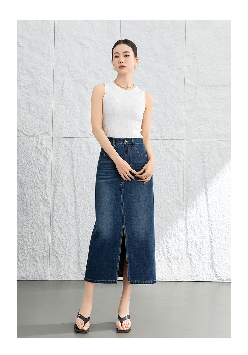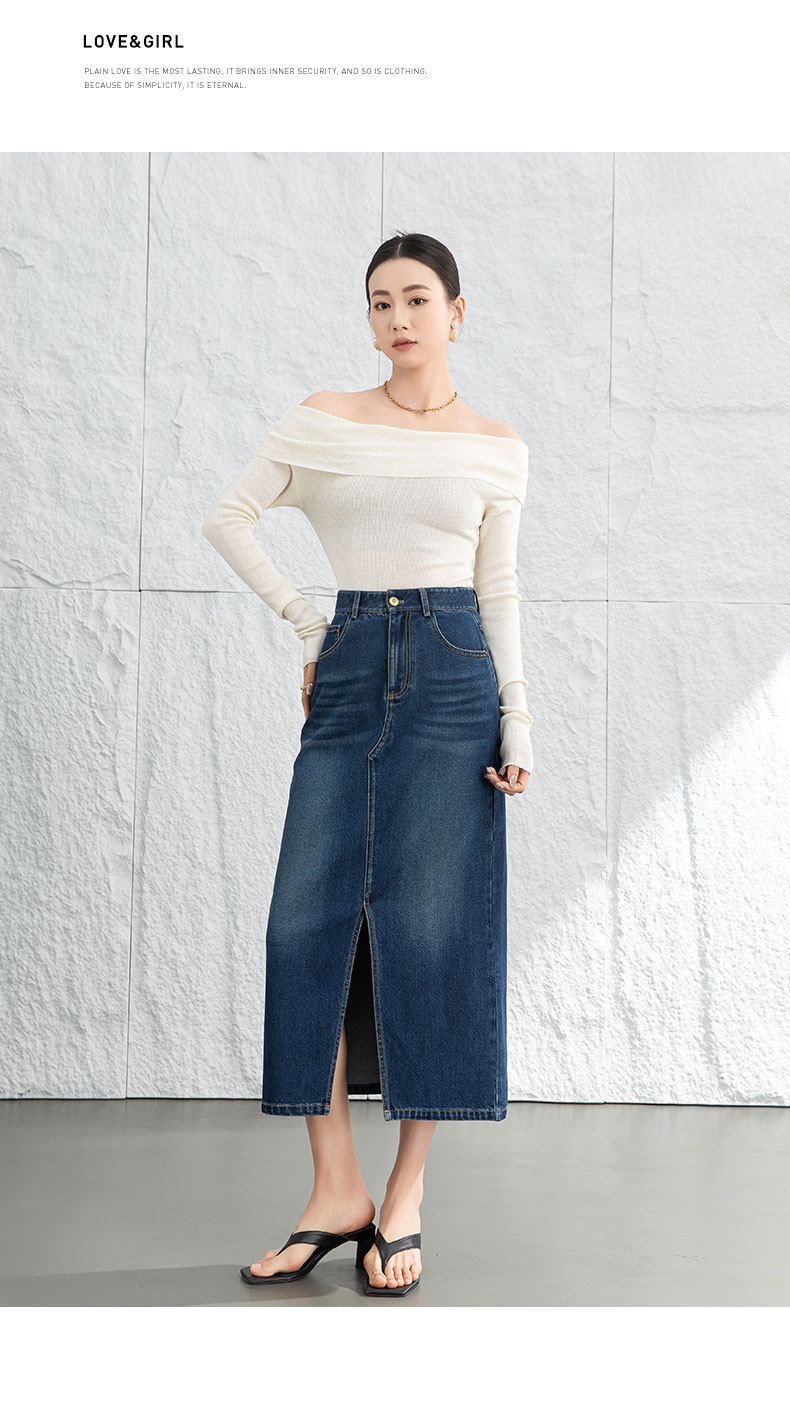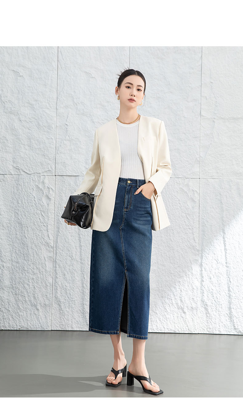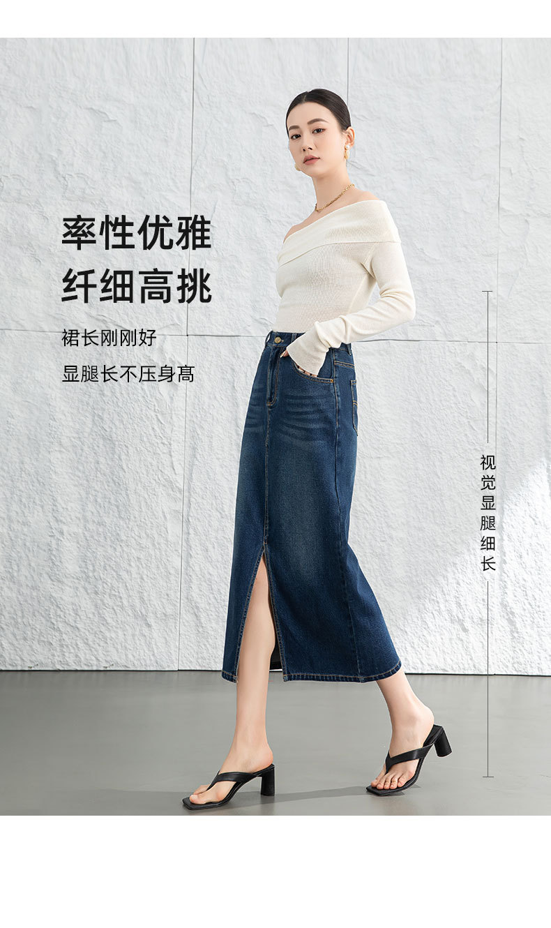 鑫阁 设计感a字直筒牛仔半身裙女2026春新品前开叉美式复古中长裙