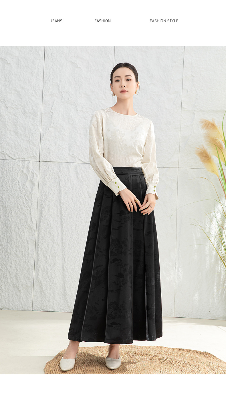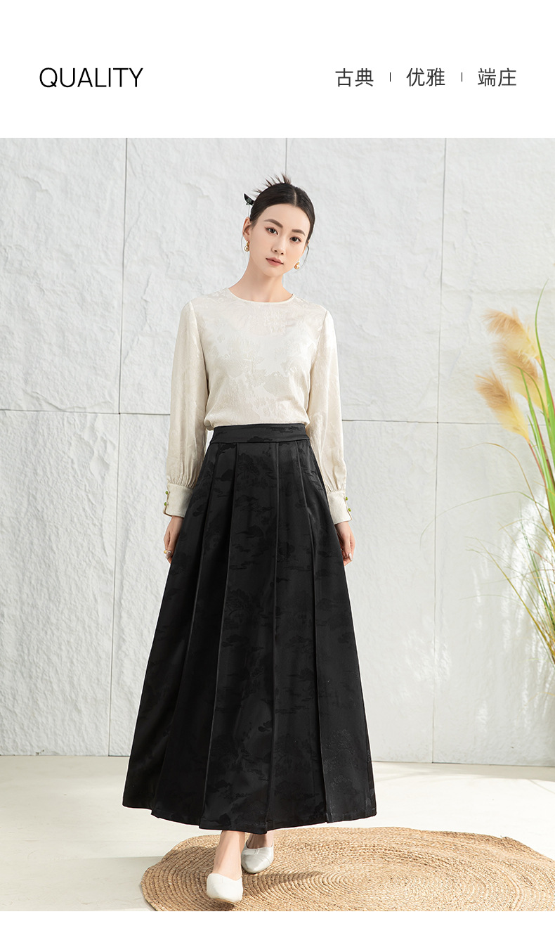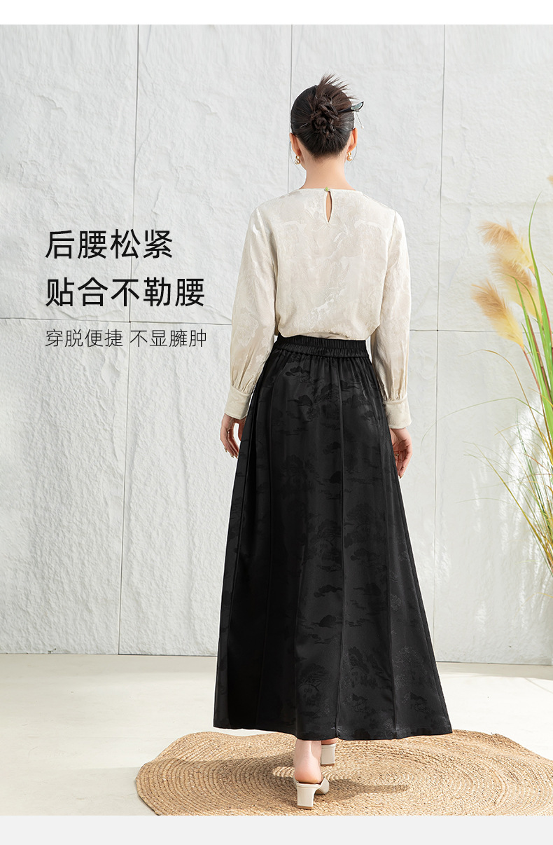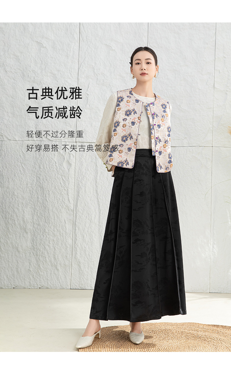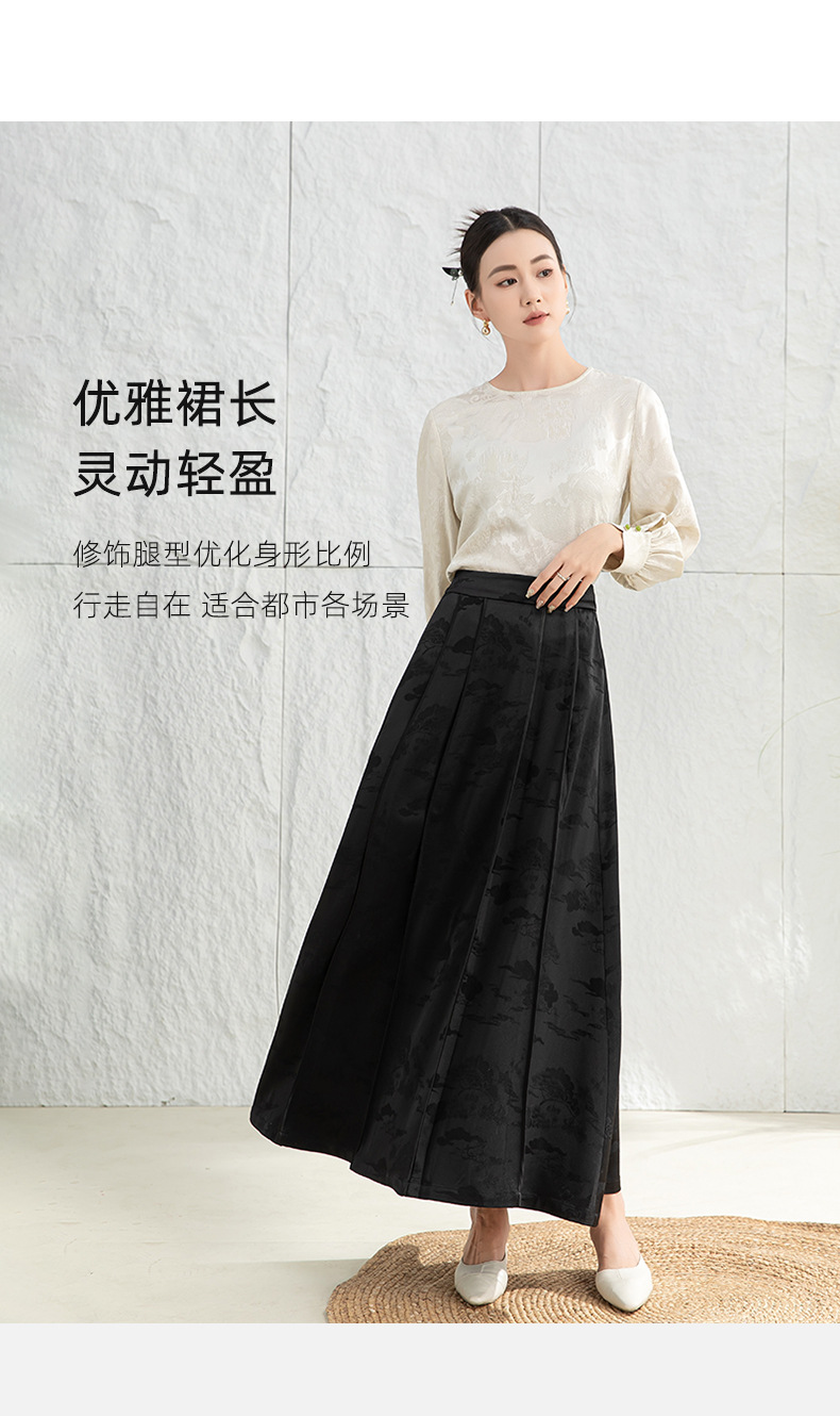 鑫阁新中式2026新款国风大摆高腰压褶中长款改良提花马面
