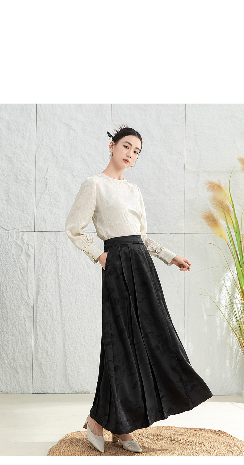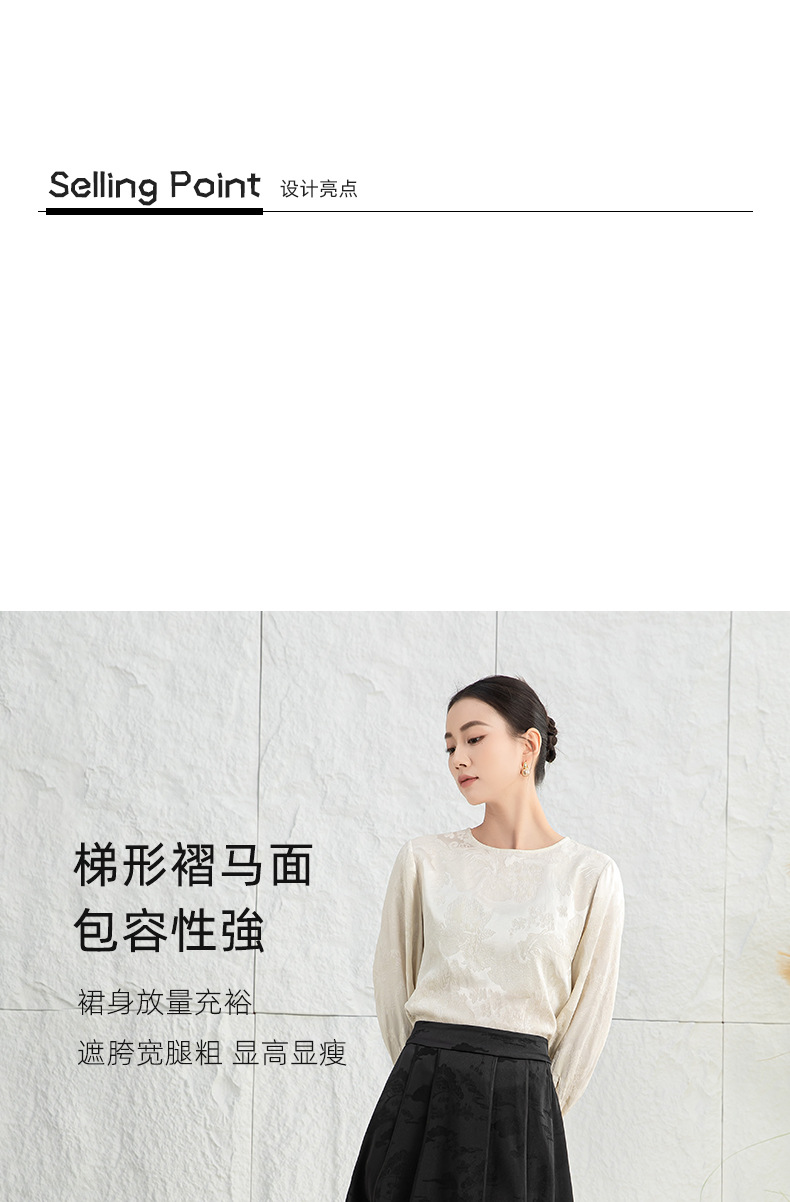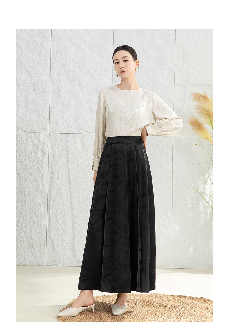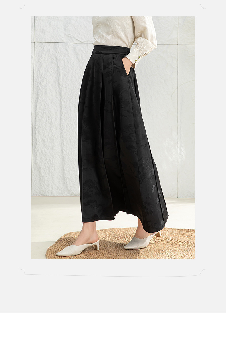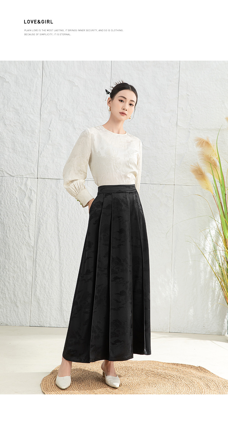 鑫阁新中式2026新款国风大摆高腰压褶中长款改良提花马面