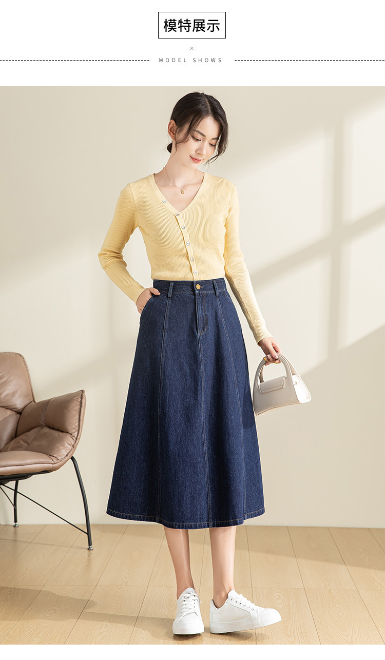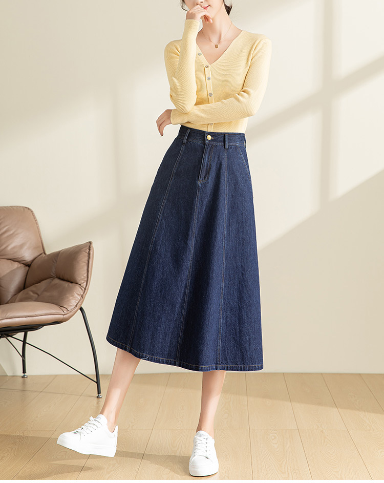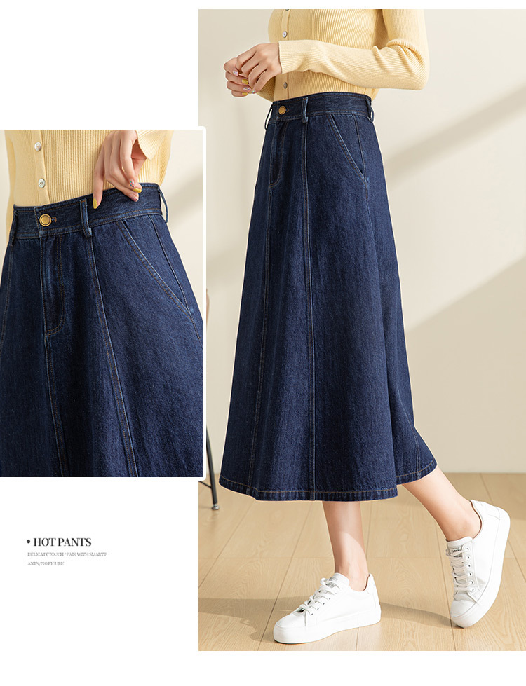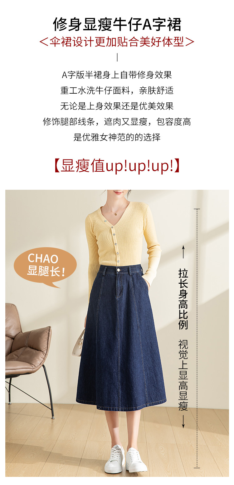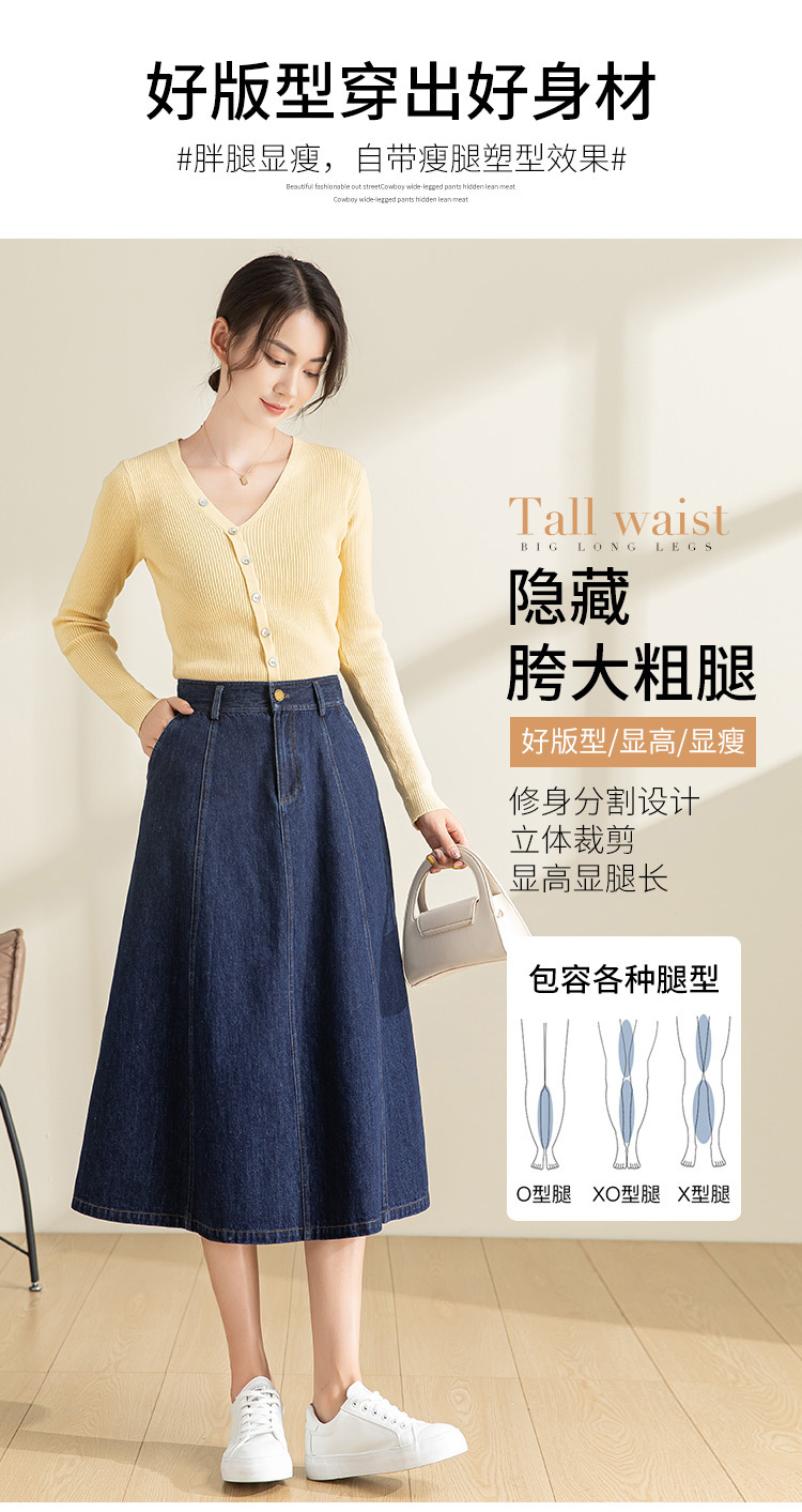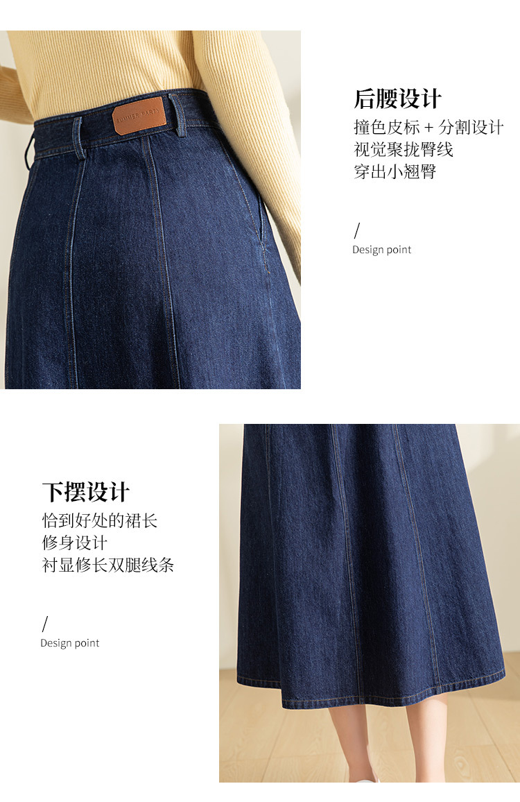 遮胯牛仔A字半身裙女裙子春秋新款大码女装胖妹妹宽松洋气裙子潮