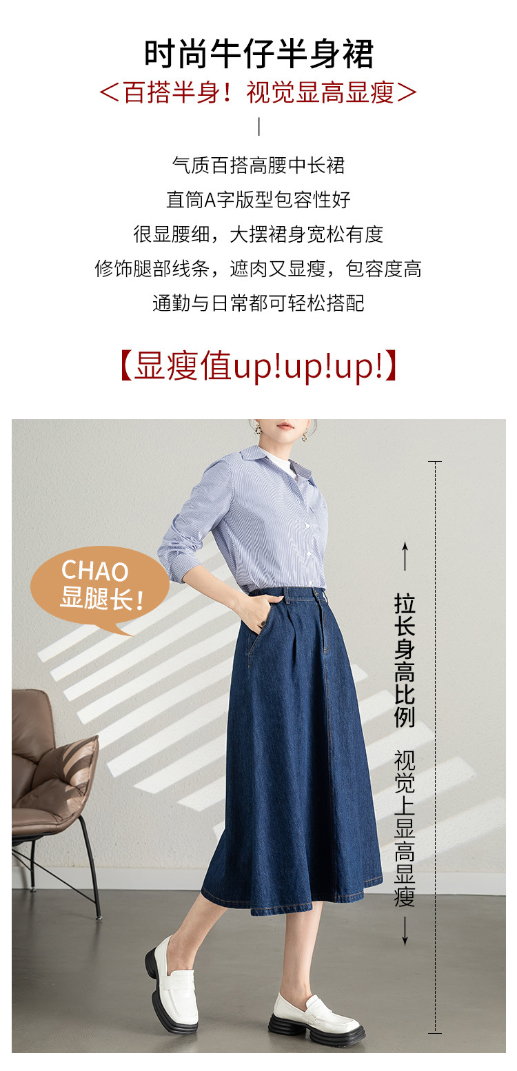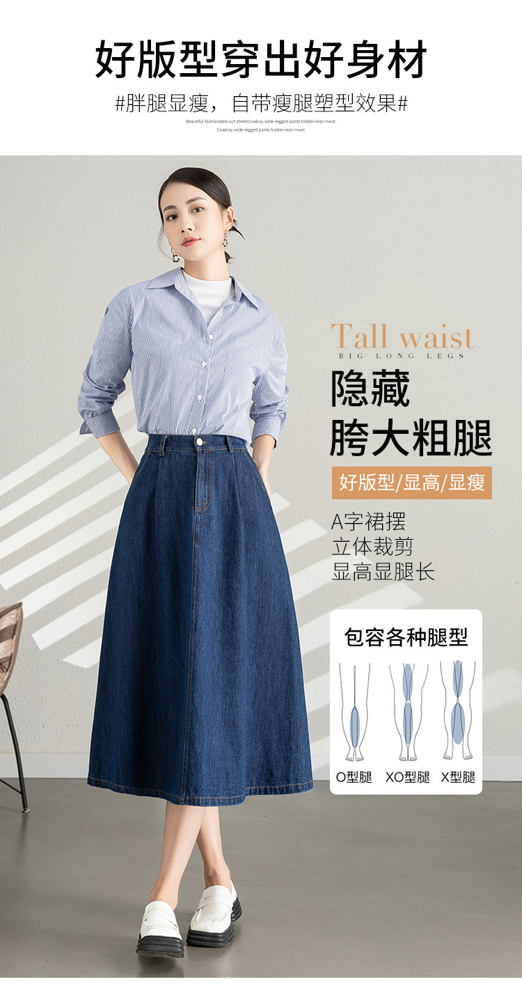 牛仔半身裙中长高腰显瘦女裙新款春季胖MM大码宽松a字伞裙女裙