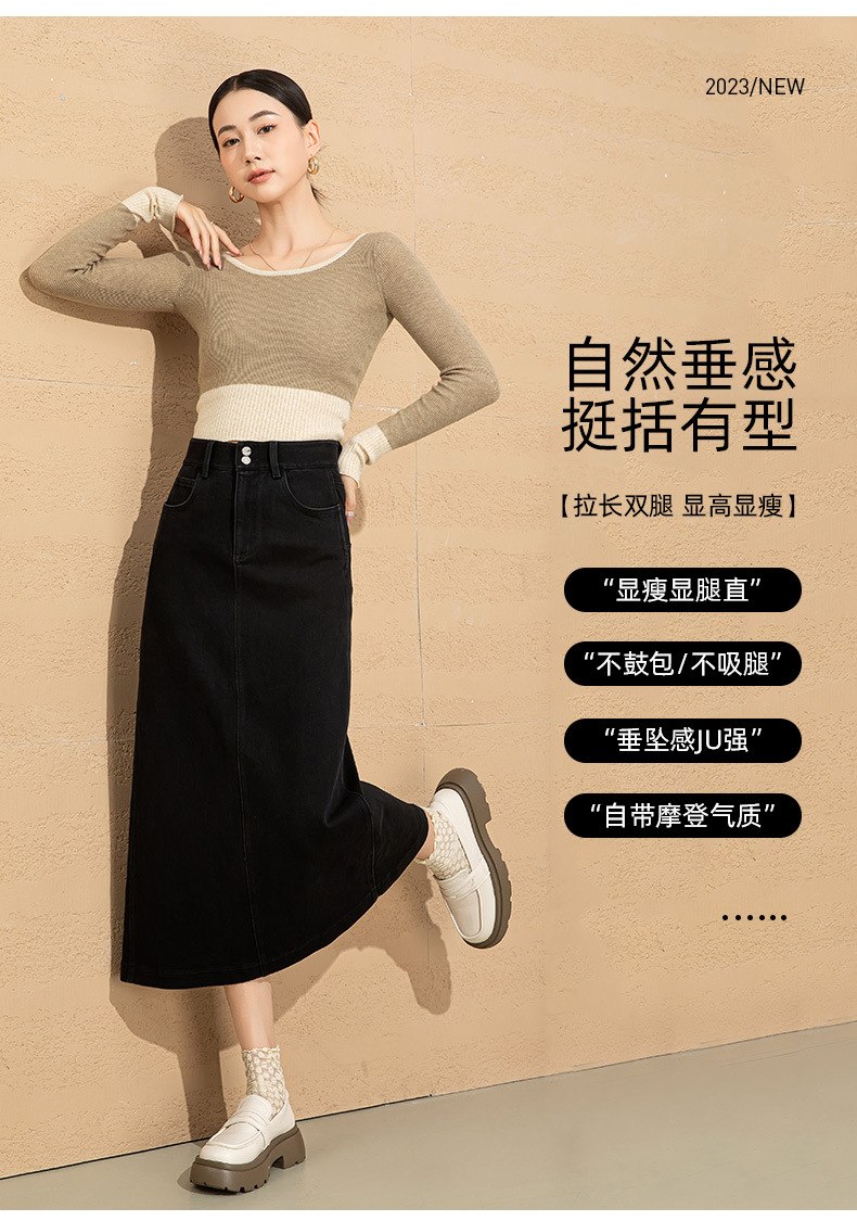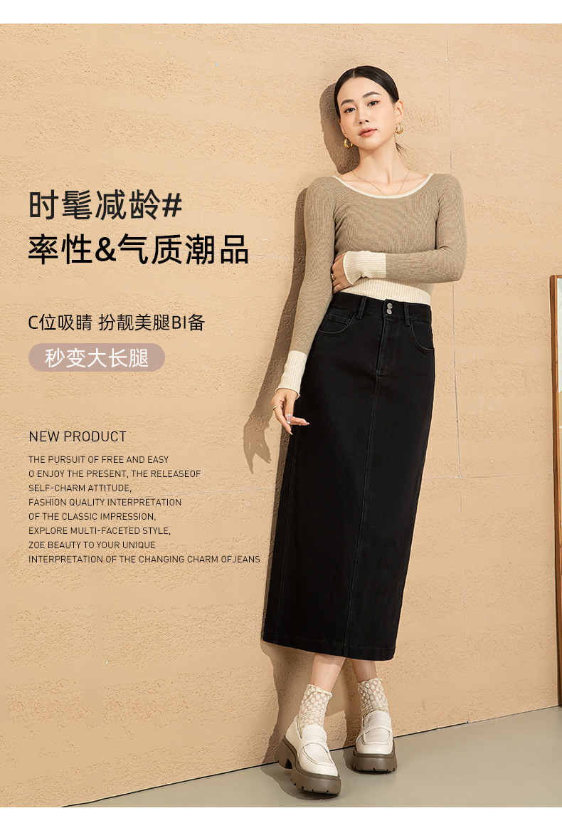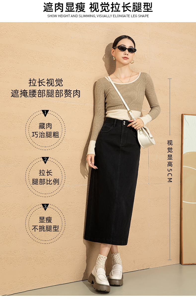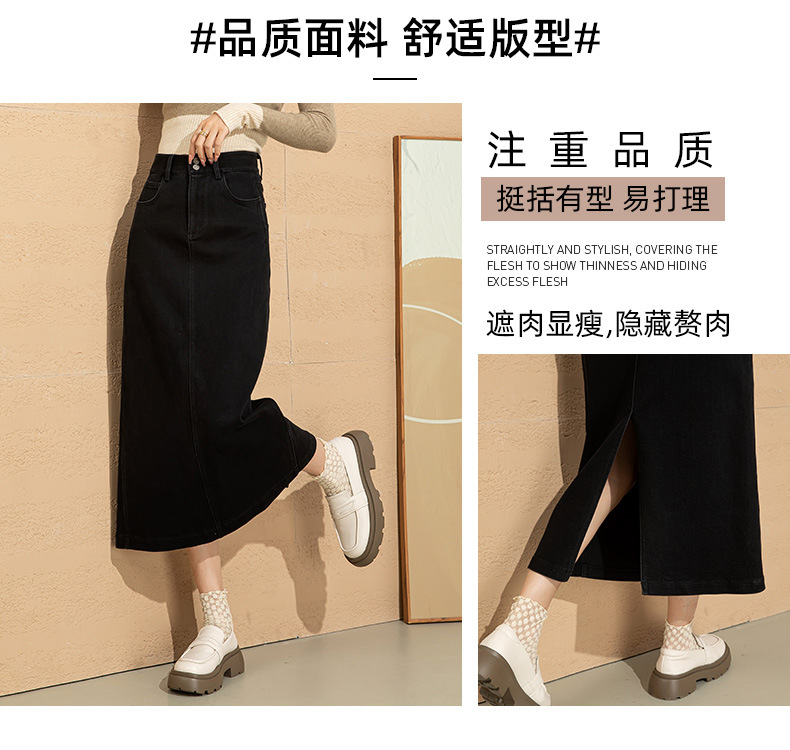 高腰开叉牛仔半身裙女2026年新款春季中长款遮胯a字小个子包臀裙