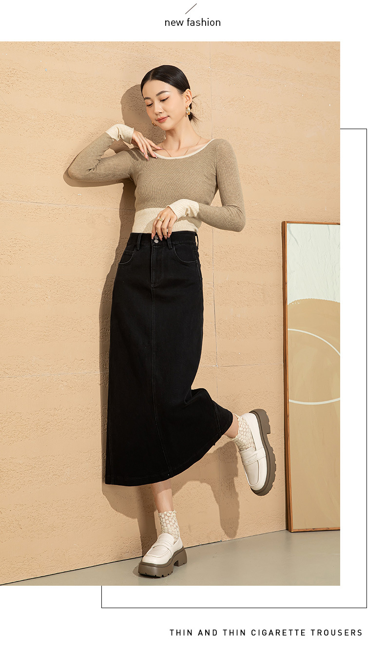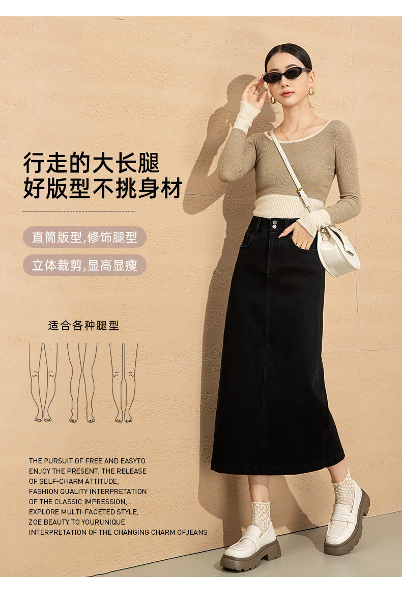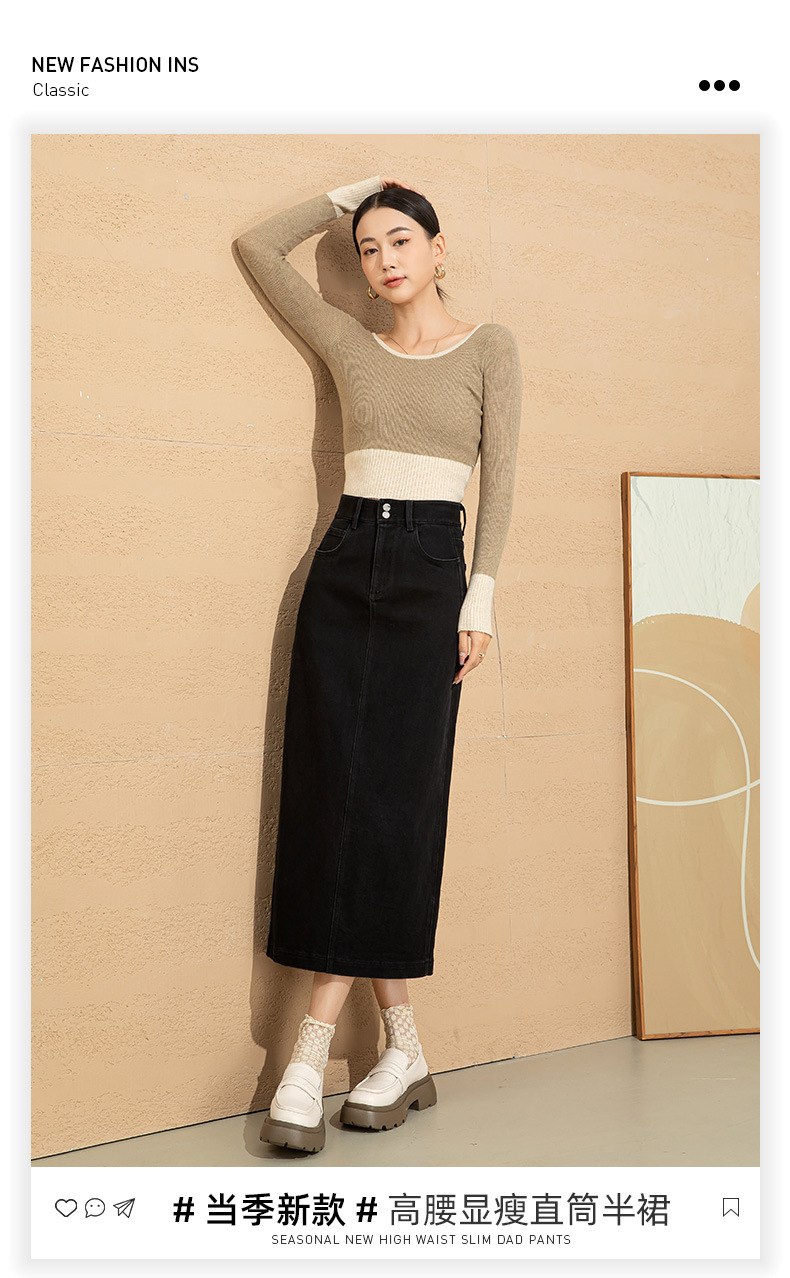 高腰开叉牛仔半身裙女2026年新款春季中长款遮胯a字小个子包臀裙