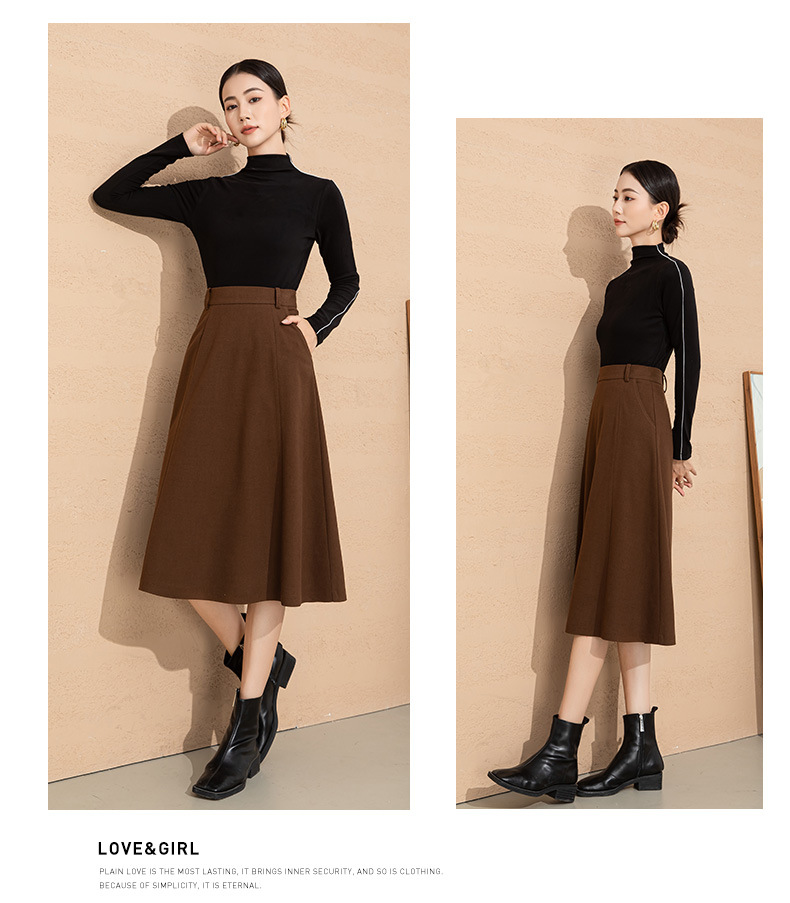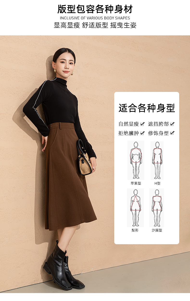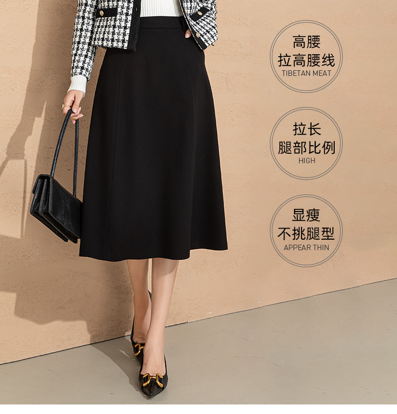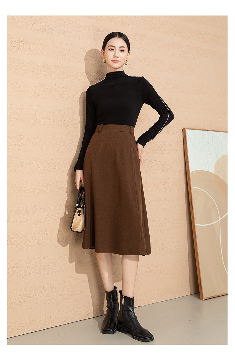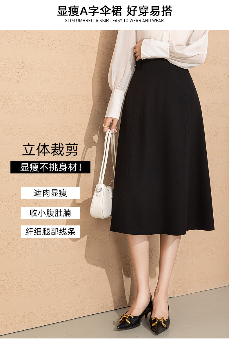 法式赫本风毛呢半身裙女秋冬新品羊毛高腰显瘦大摆中长款a字伞裙