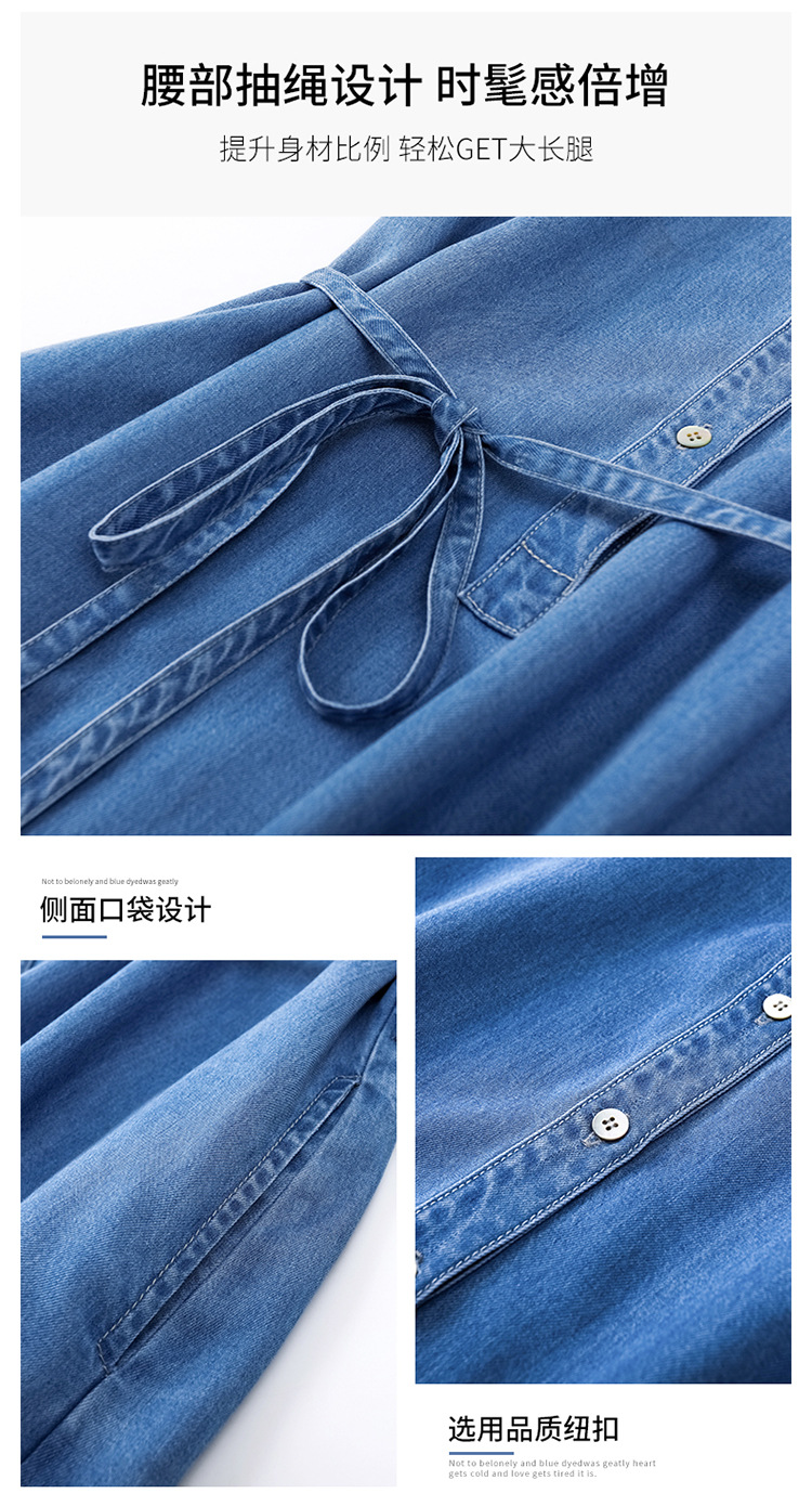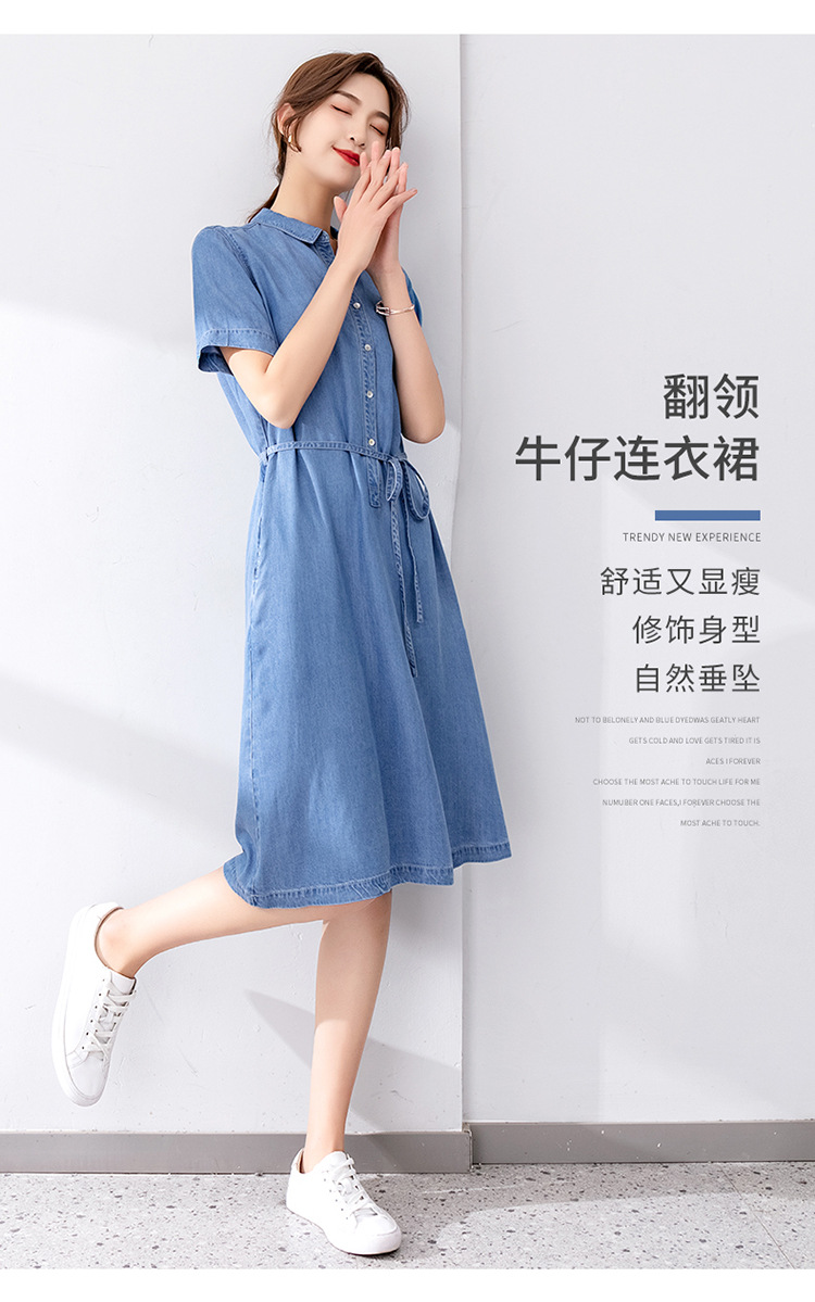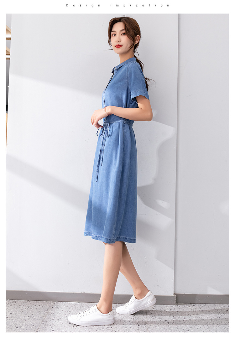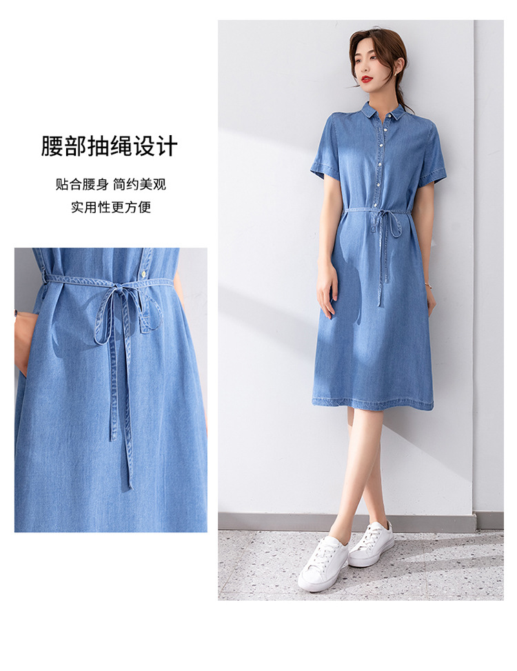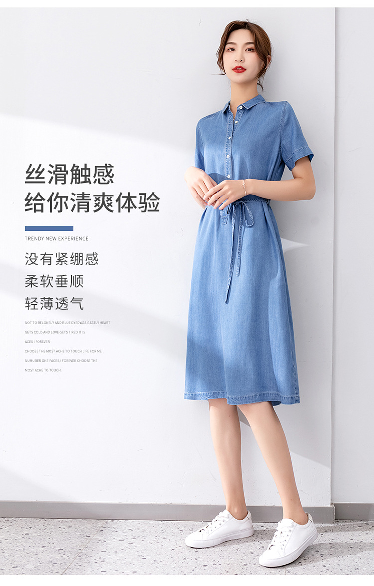 天丝连衣裙2026新款夏季小个子女装显瘦气质polo领蓝色牛仔衬衫裙