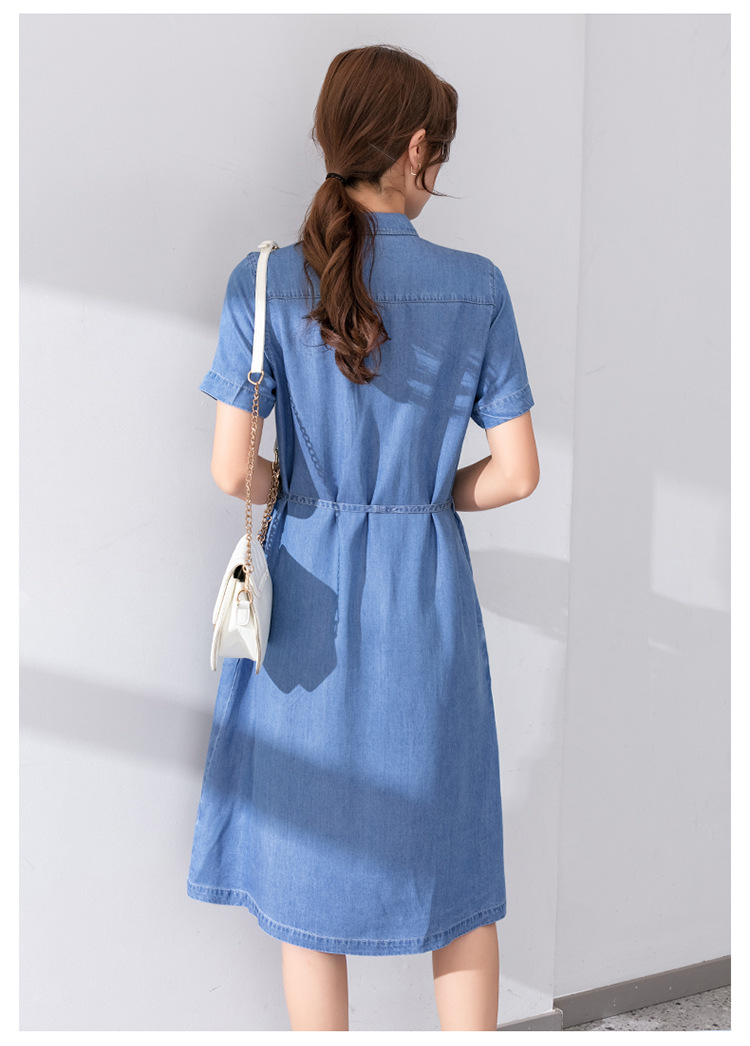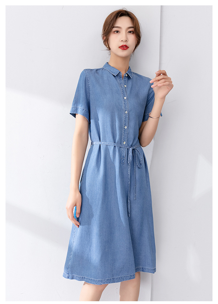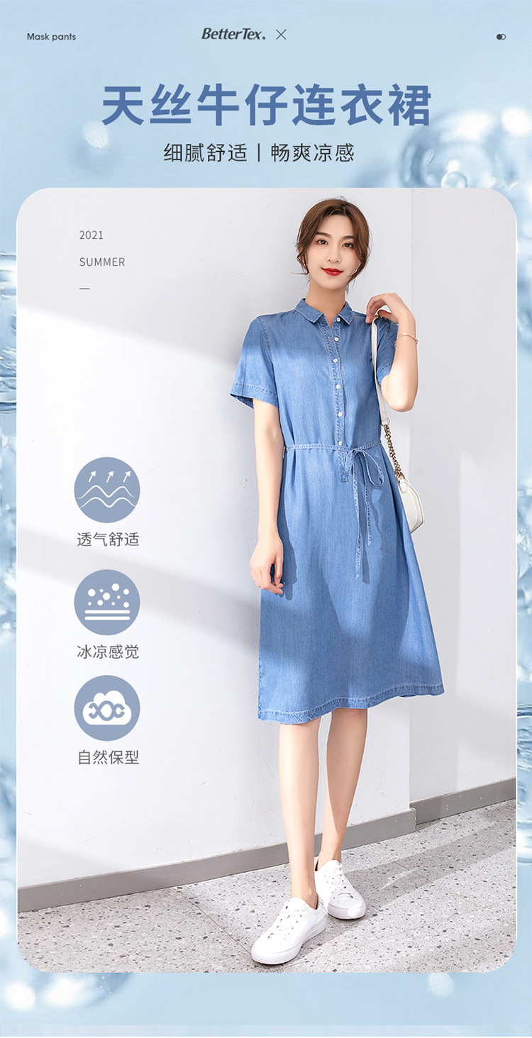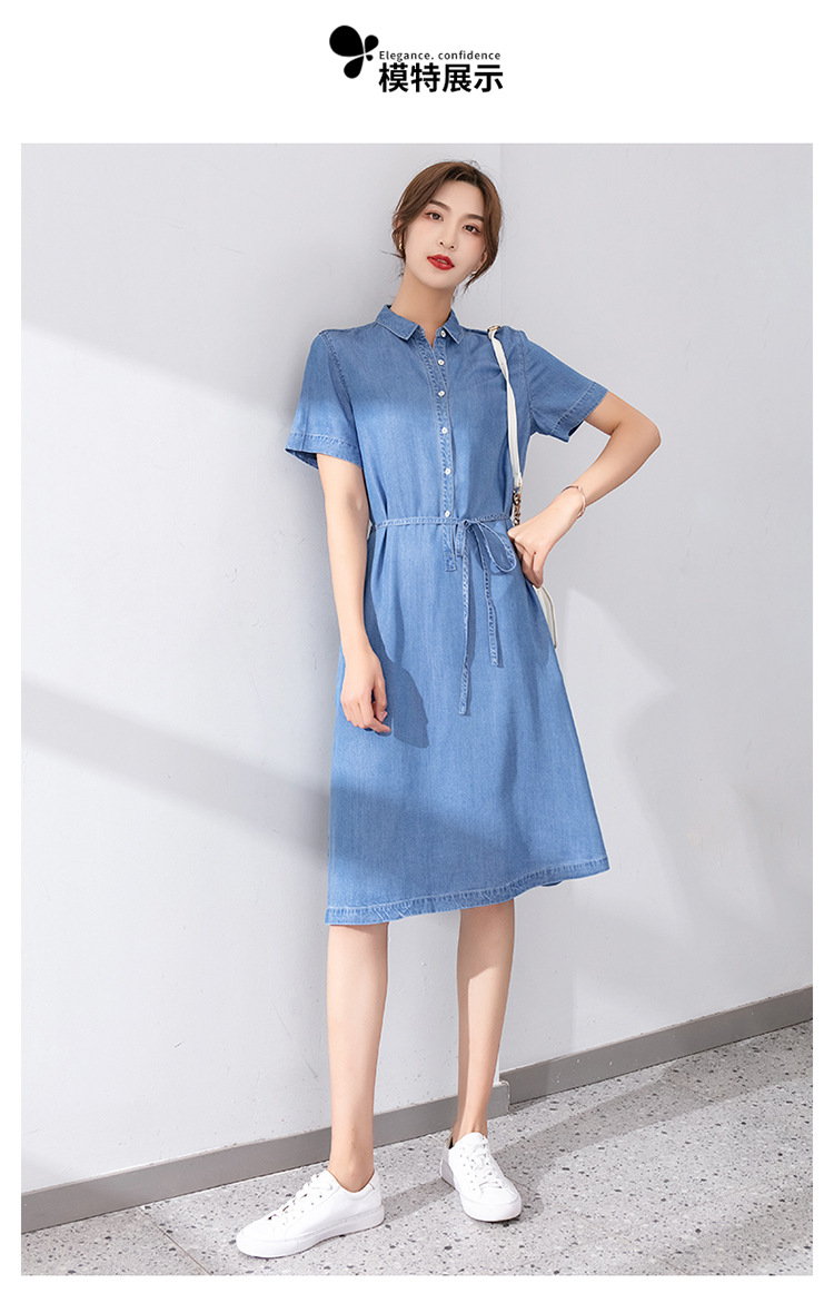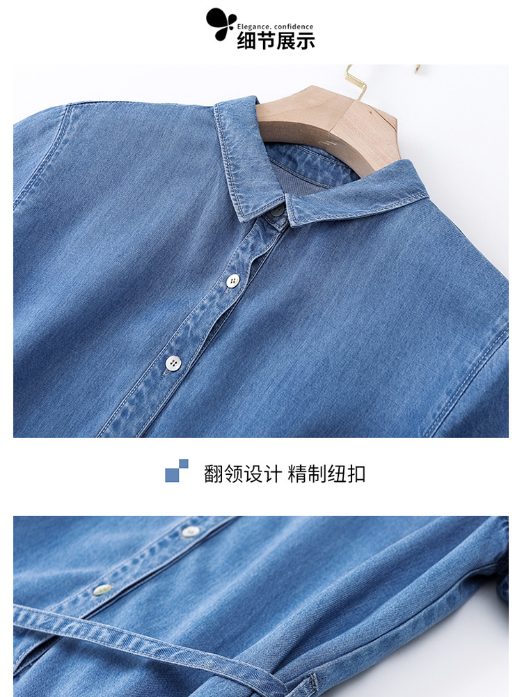 天丝连衣裙2026新款夏季小个子女装显瘦气质polo领蓝色牛仔衬衫裙