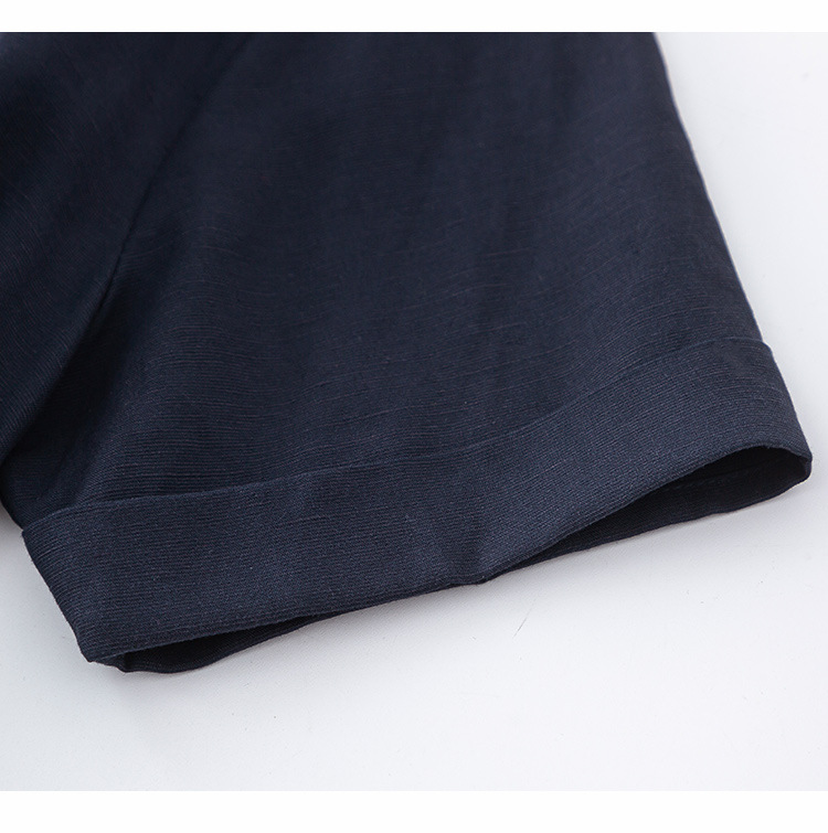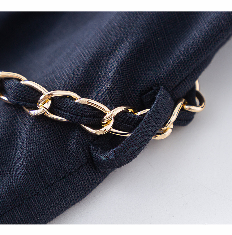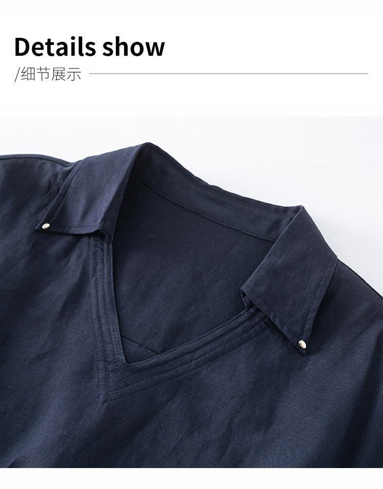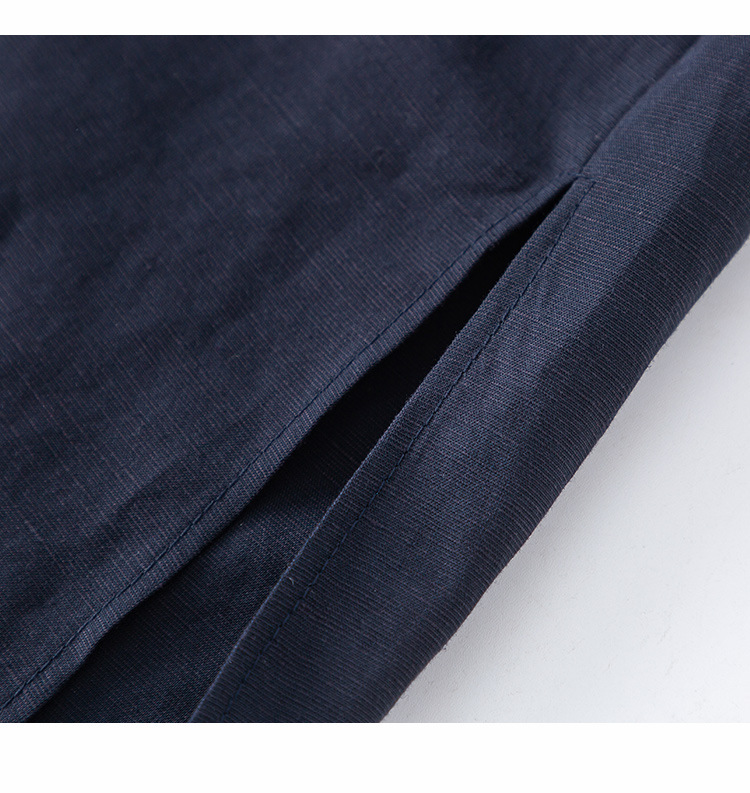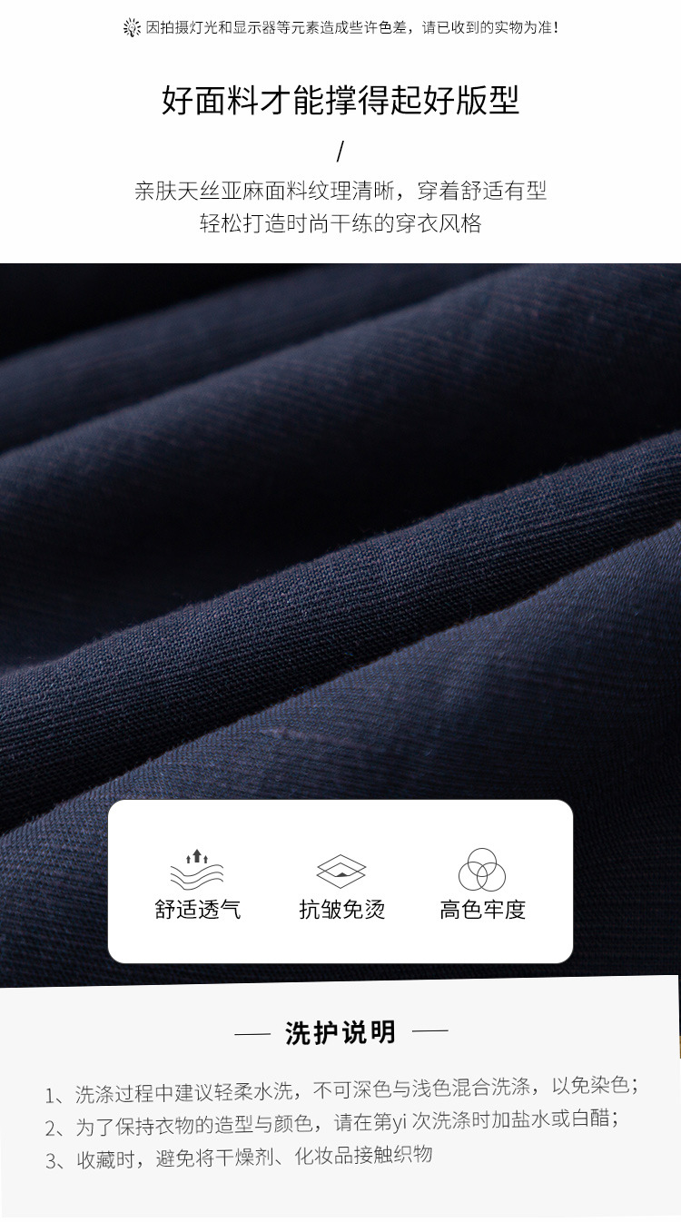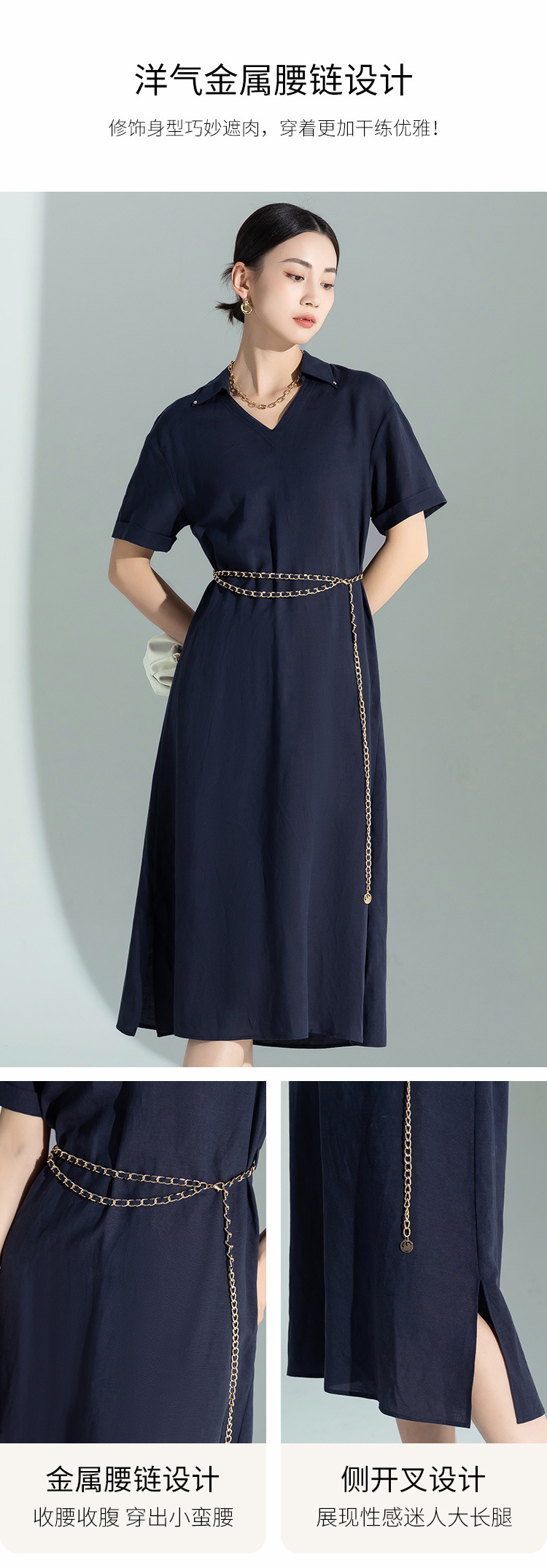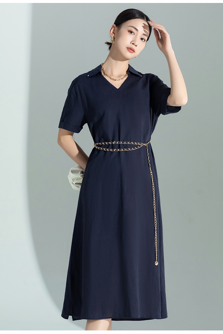藏蓝色亚麻天丝连衣裙女夏季2026年新款高级感职业时尚收腰裙子女