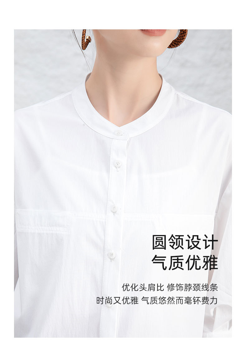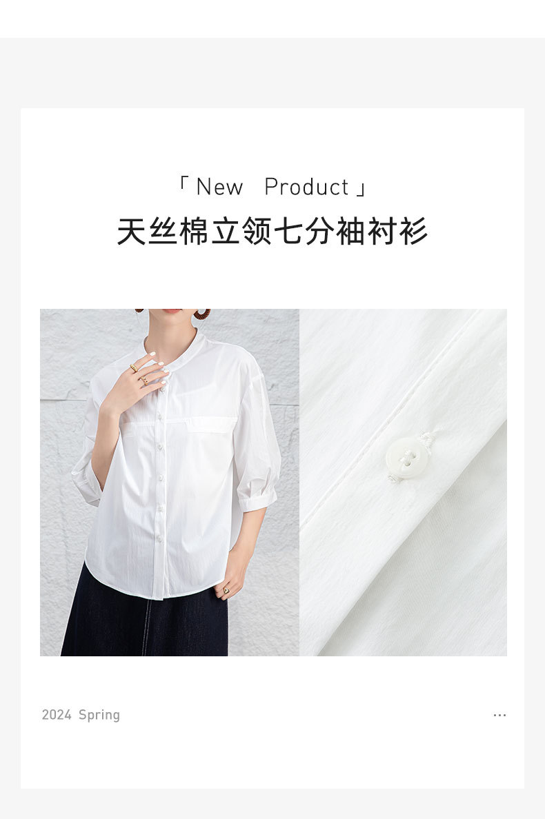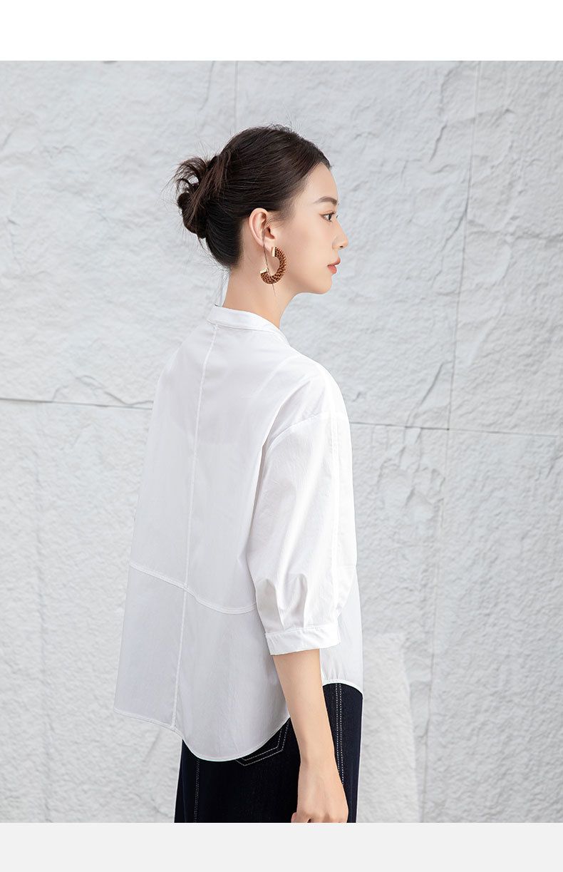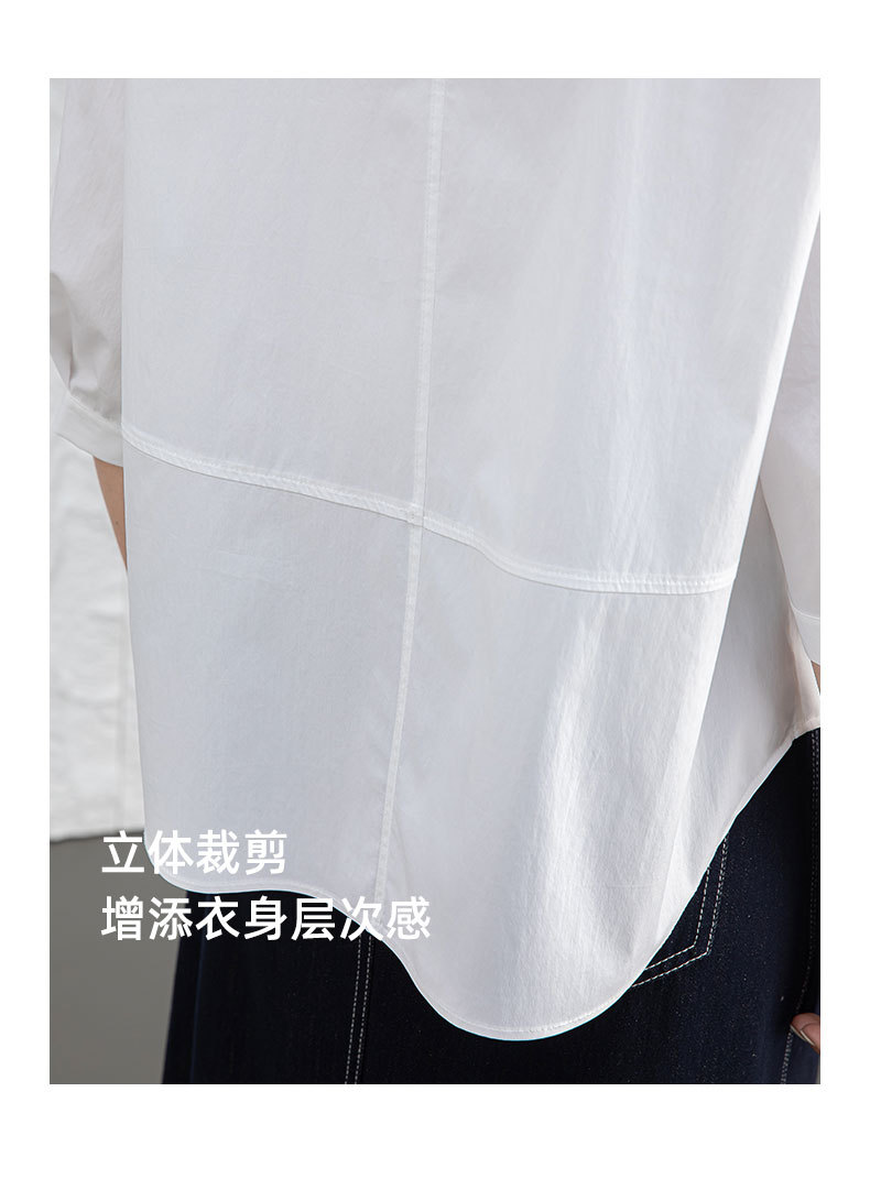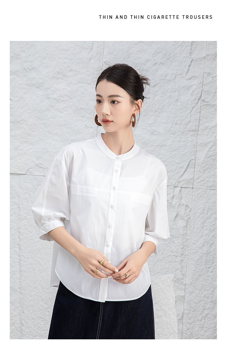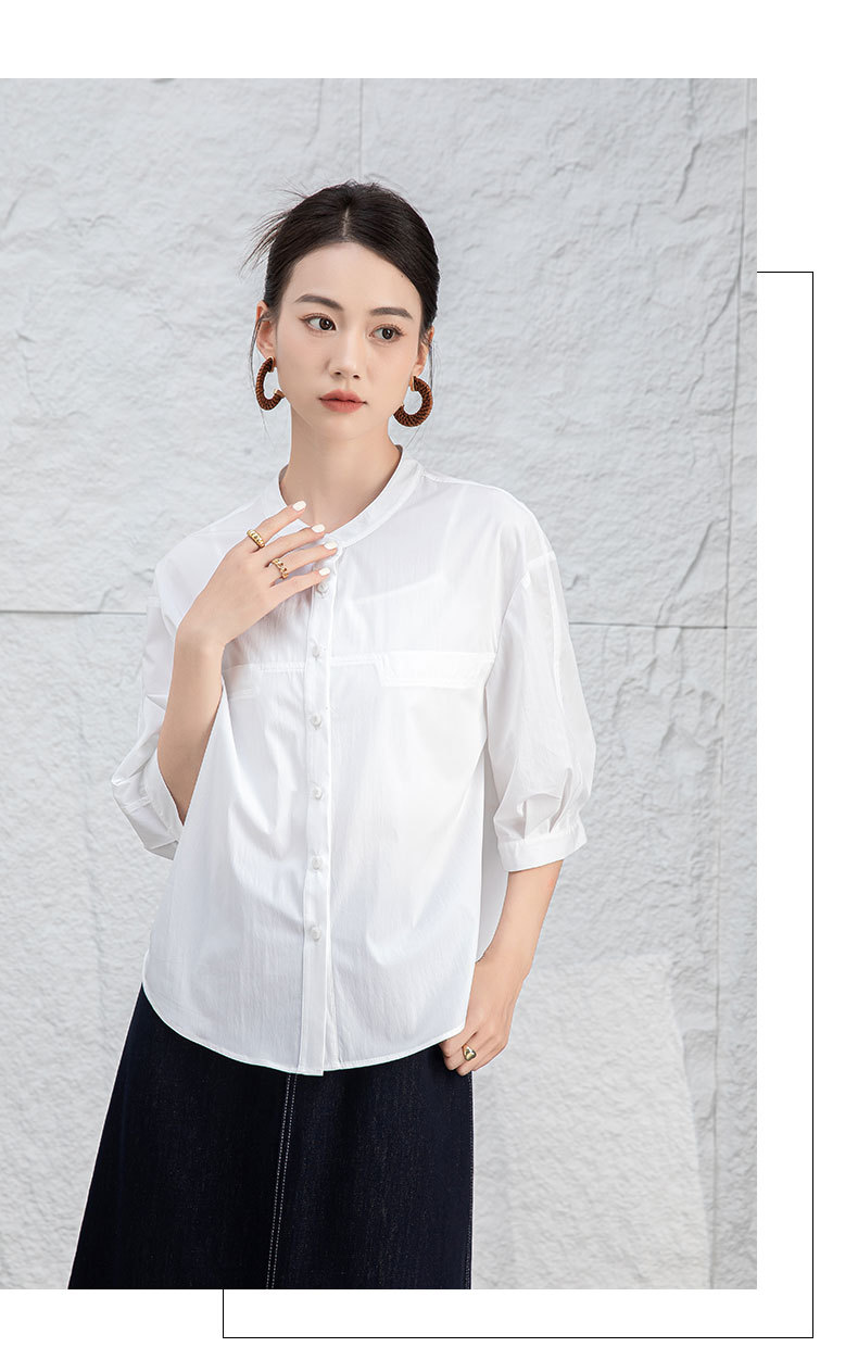 鑫阁 白色五分袖立领女夏设计感宽松中袖衬衣职业通勤天丝棉上衣