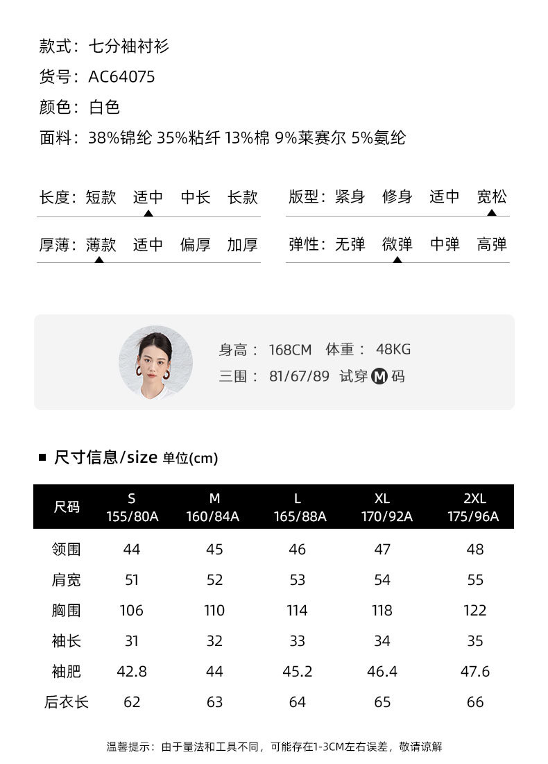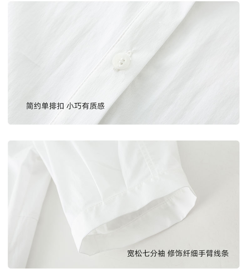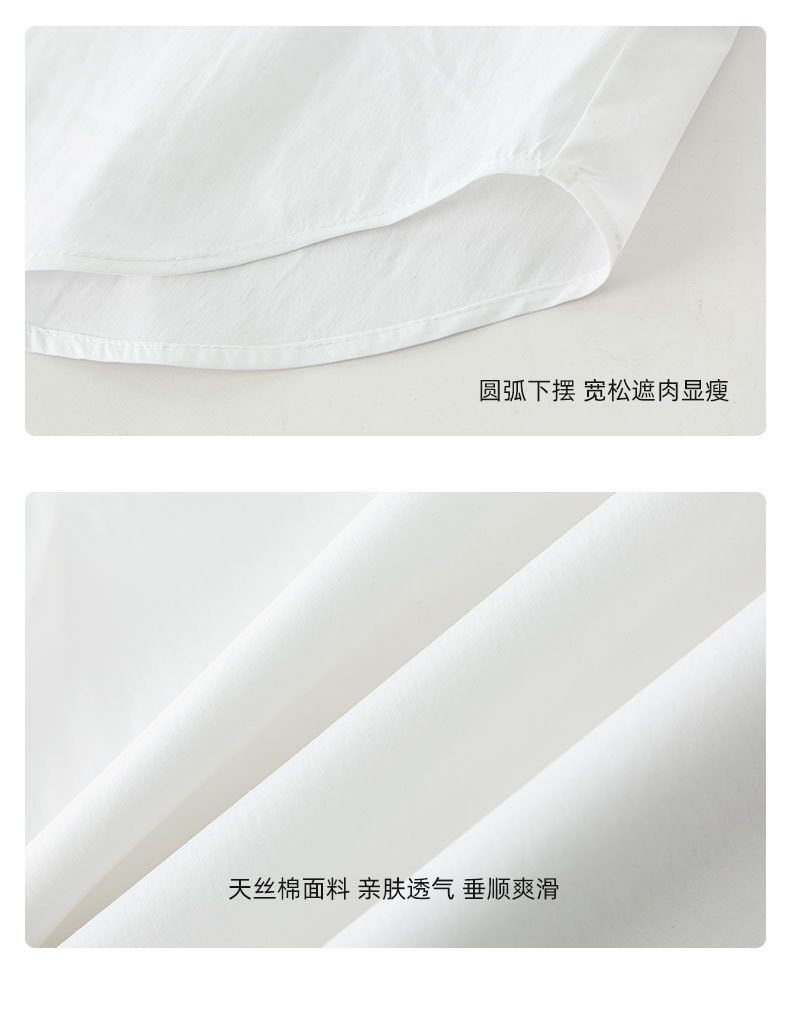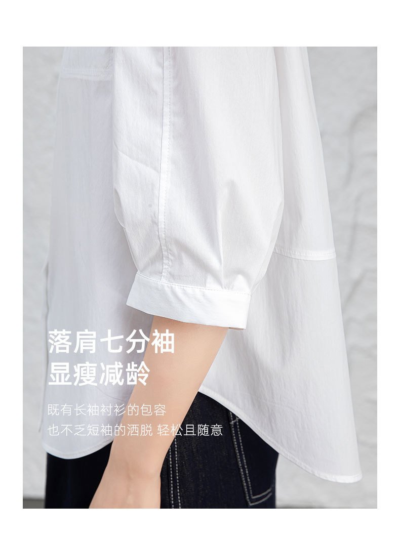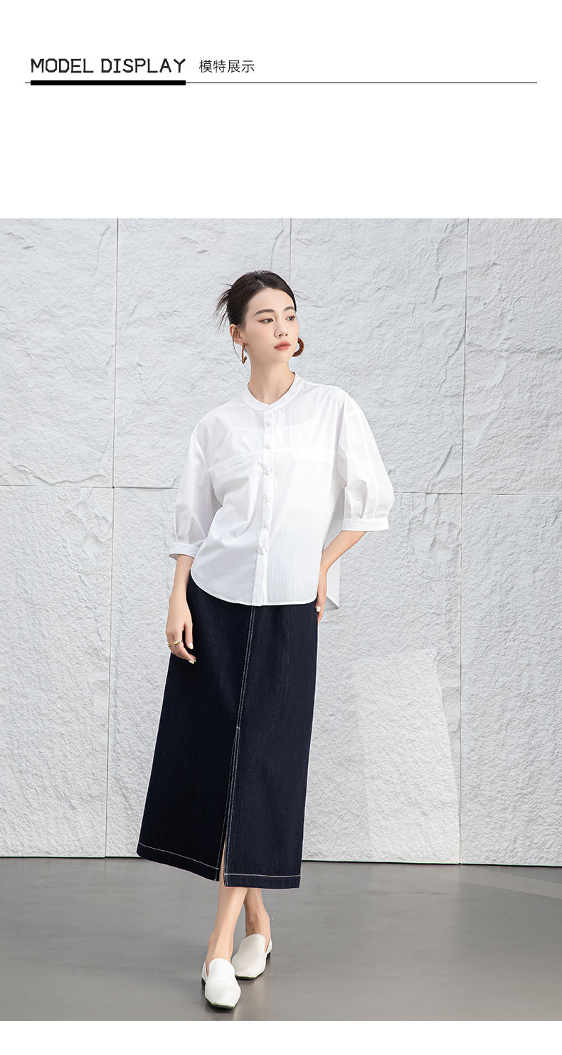 鑫阁 白色五分袖立领女夏设计感宽松中袖衬衣职业通勤天丝棉上衣