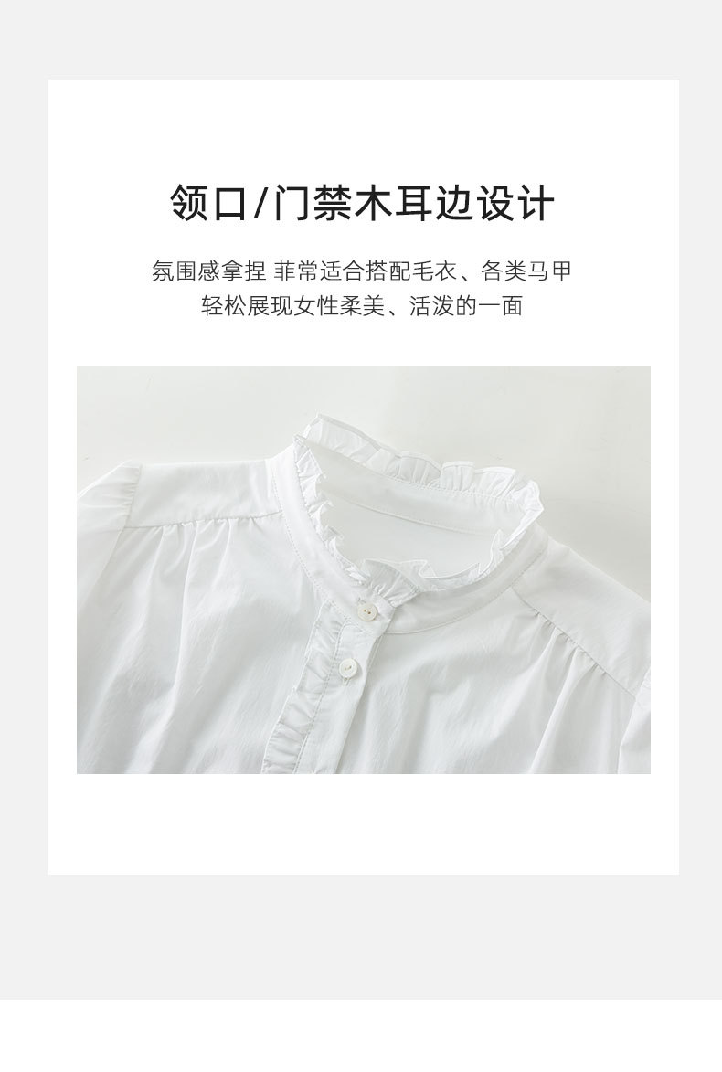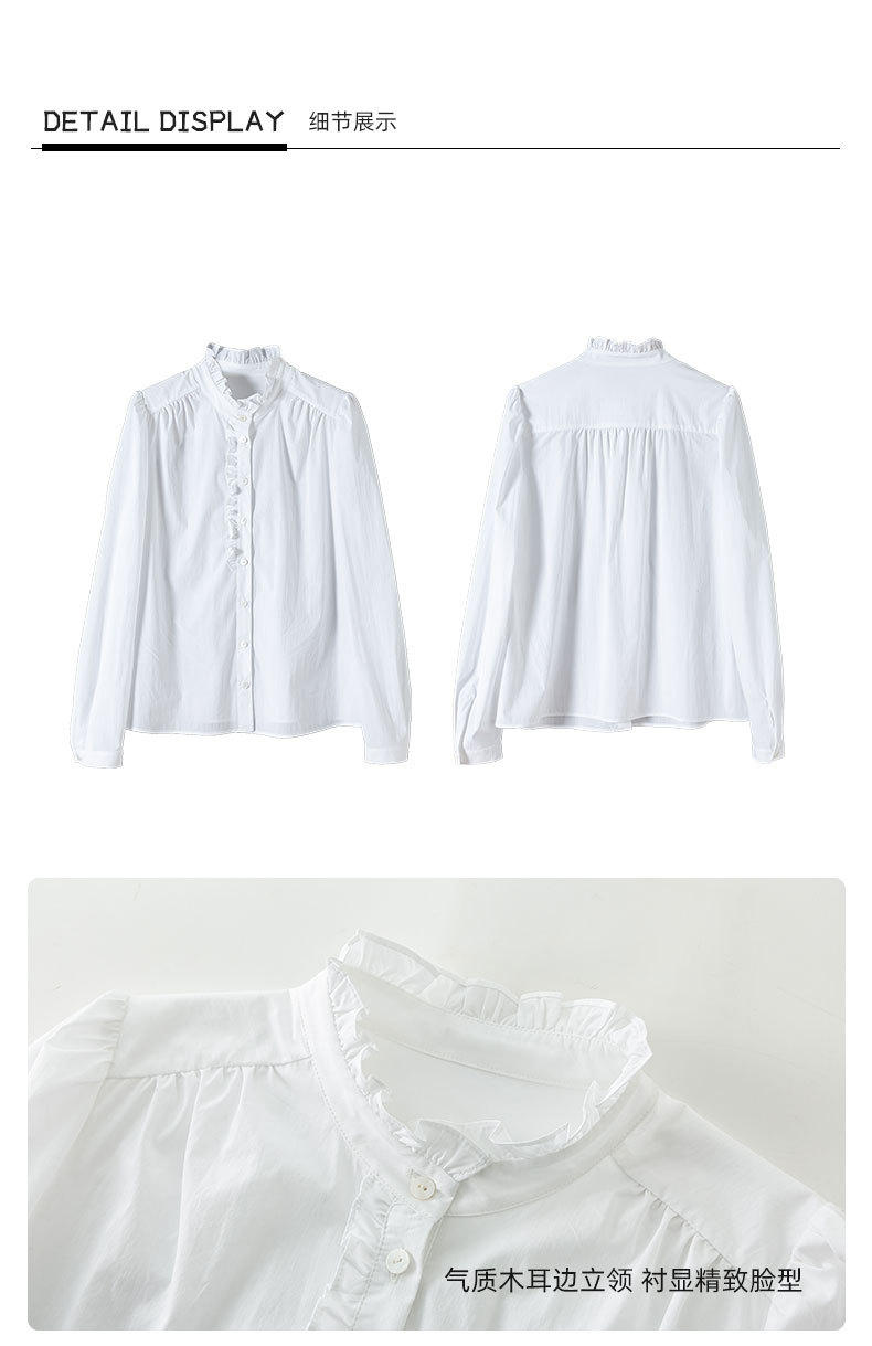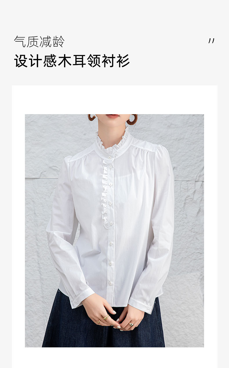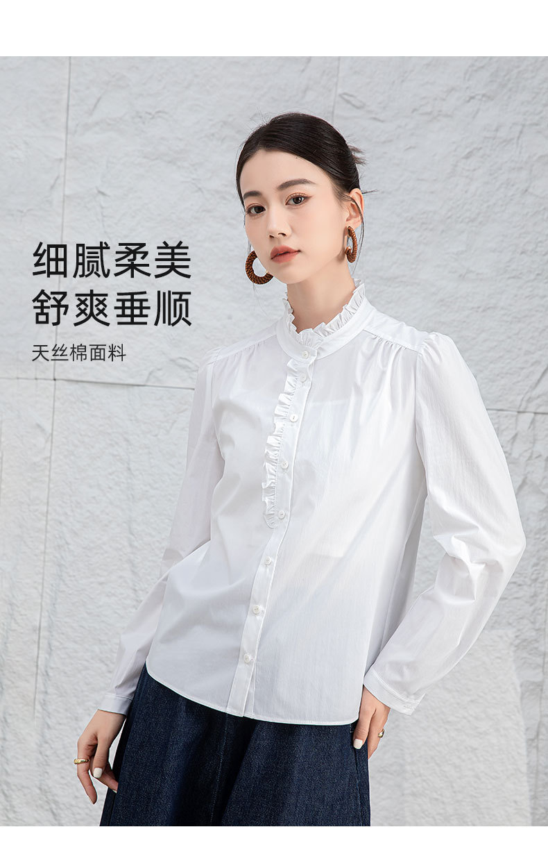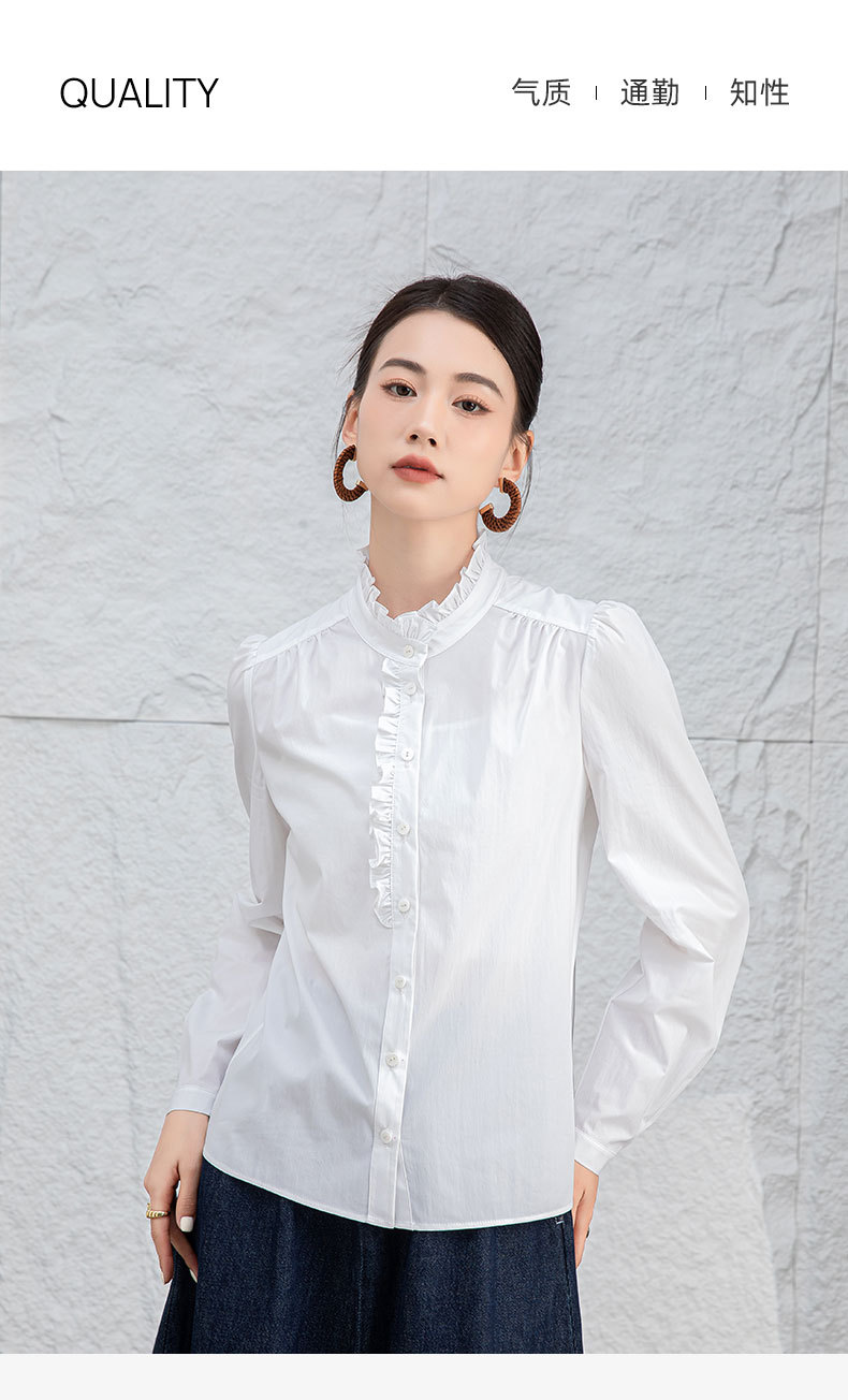 鑫阁 天丝棉荷叶边设计感白色衬衫女长袖气质通勤优雅衬衣上衣