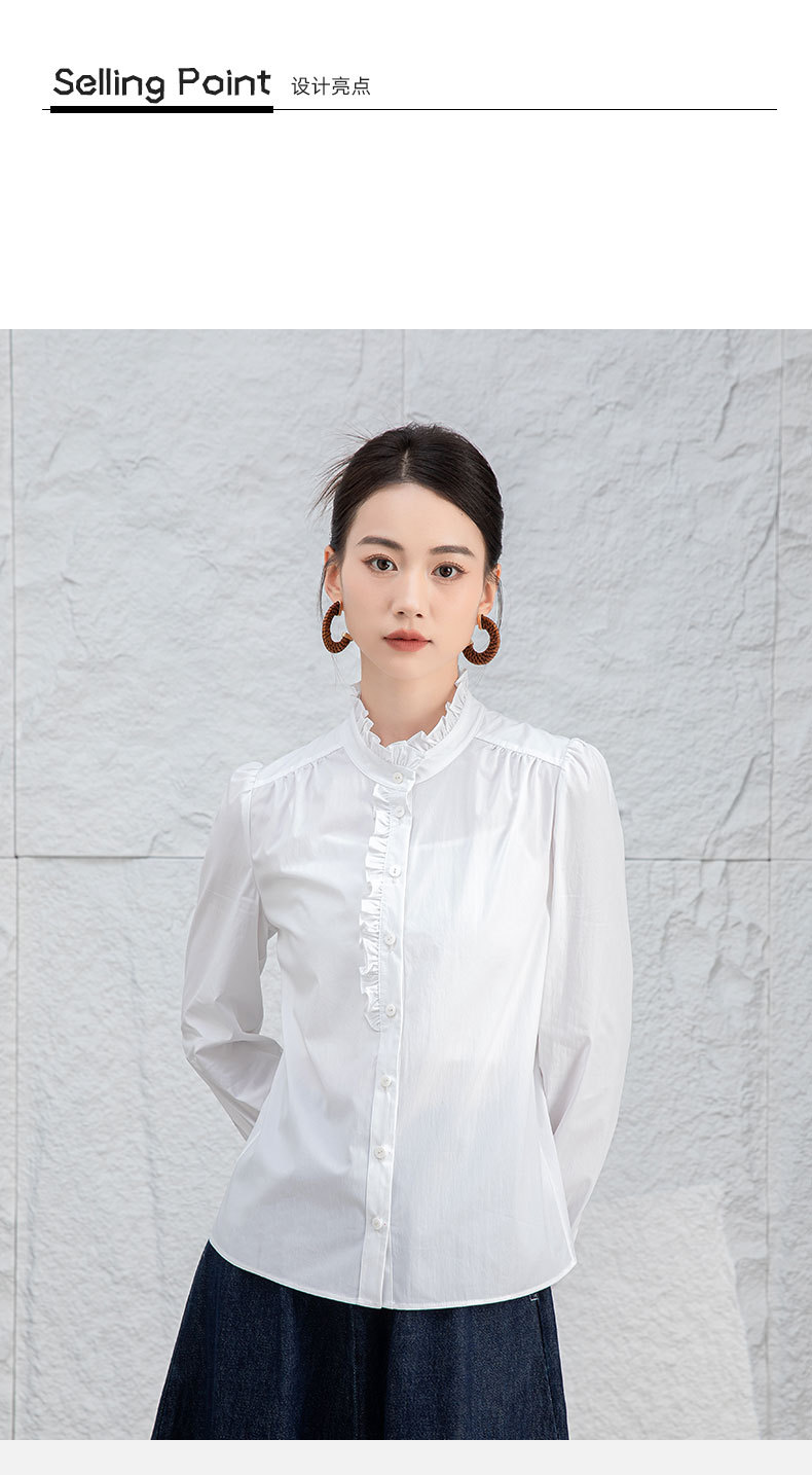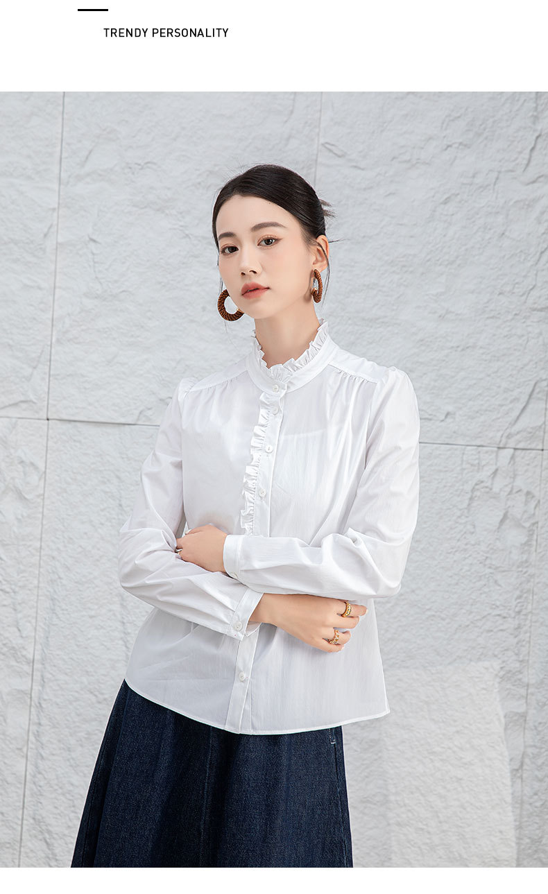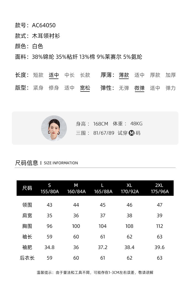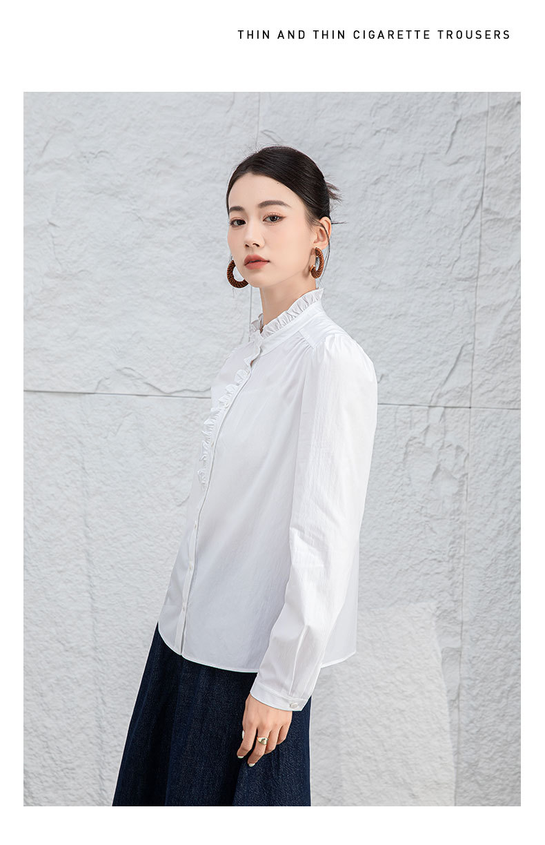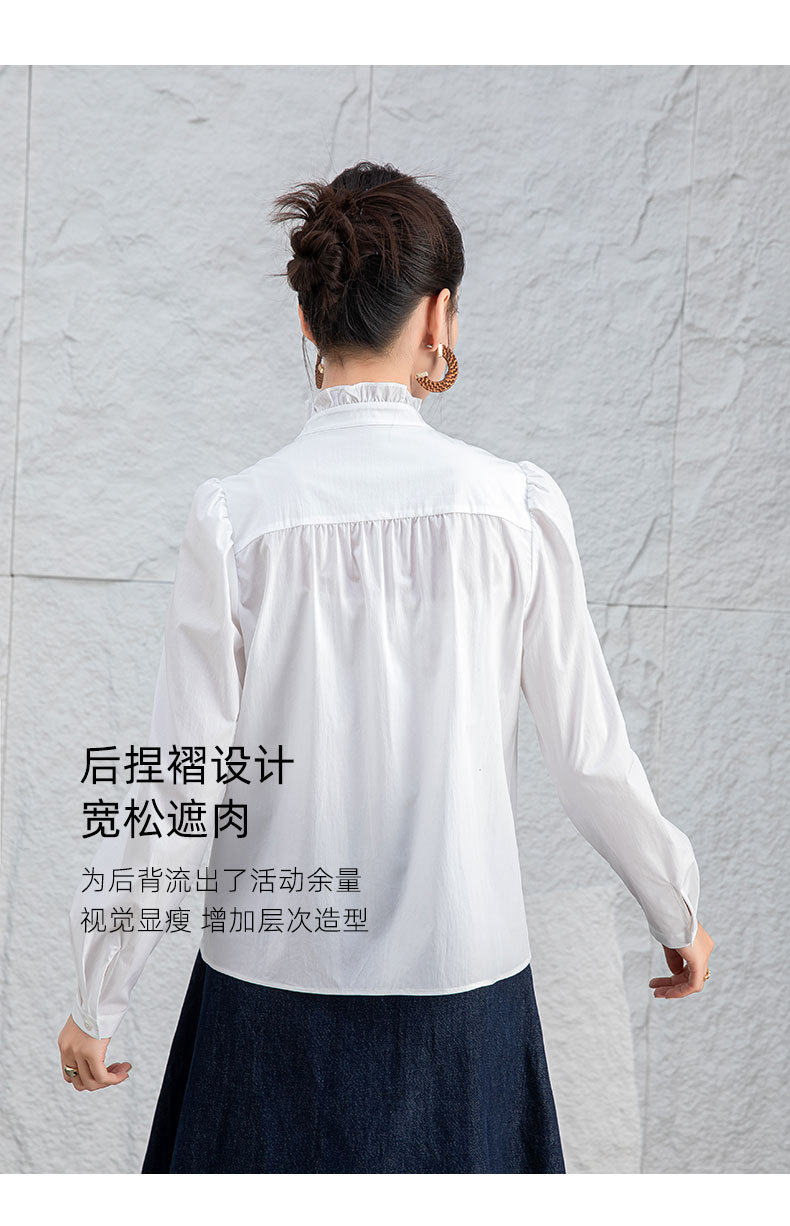 鑫阁 天丝棉荷叶边设计感白色衬衫女长袖气质通勤优雅衬衣上衣