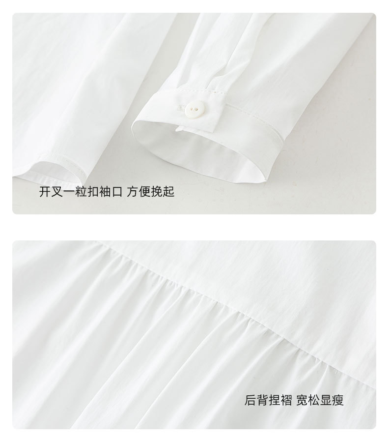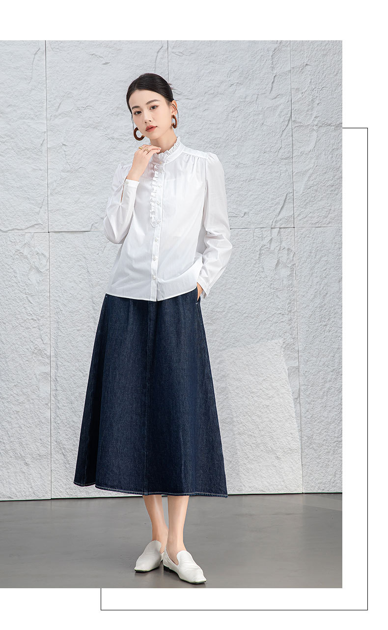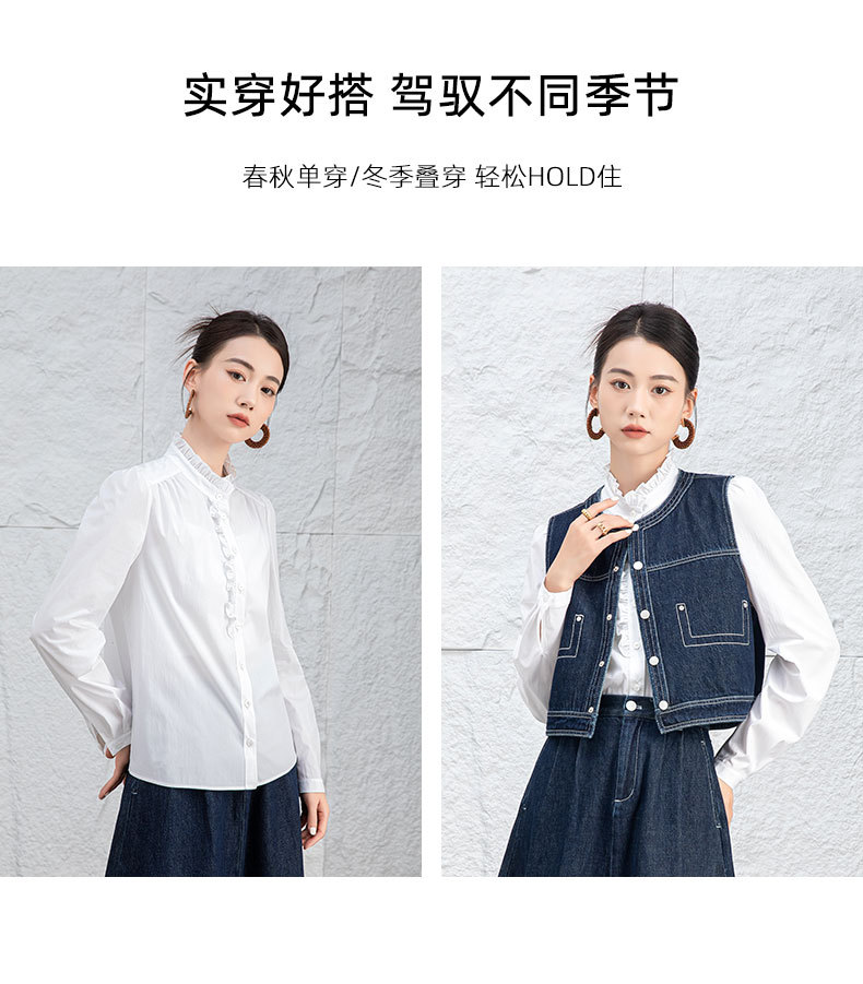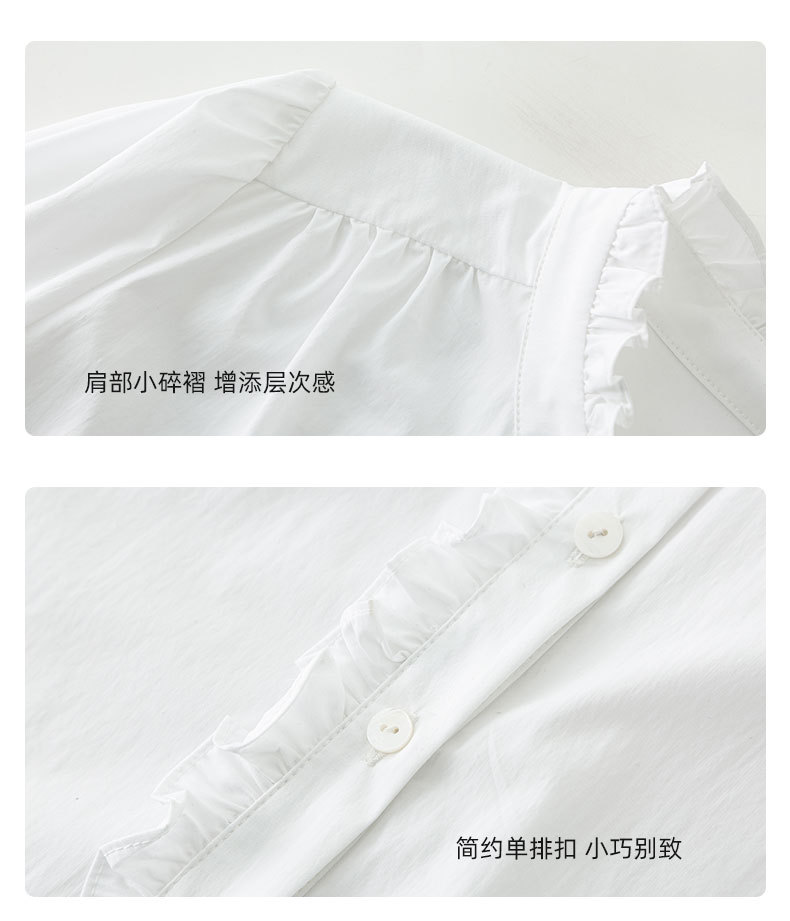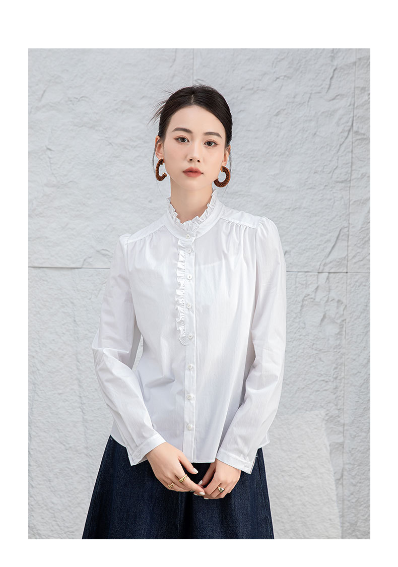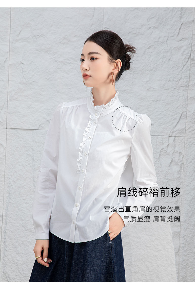 鑫阁 天丝棉荷叶边设计感白色衬衫女长袖气质通勤优雅衬衣上衣