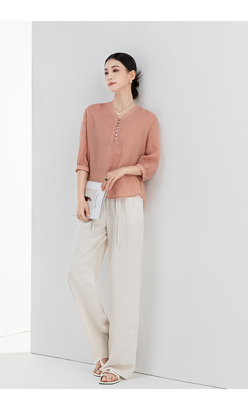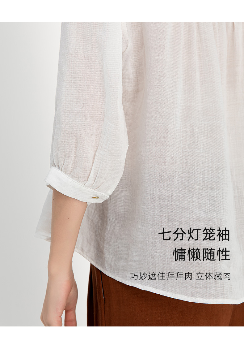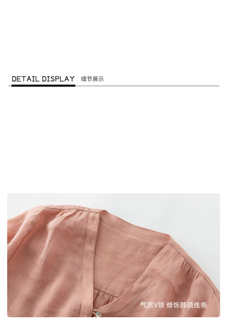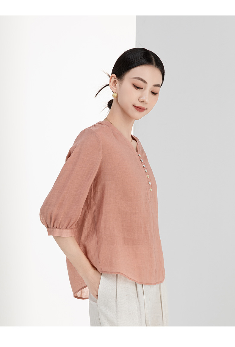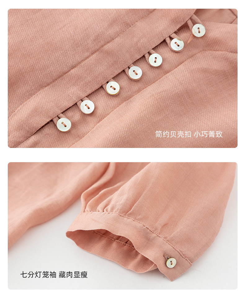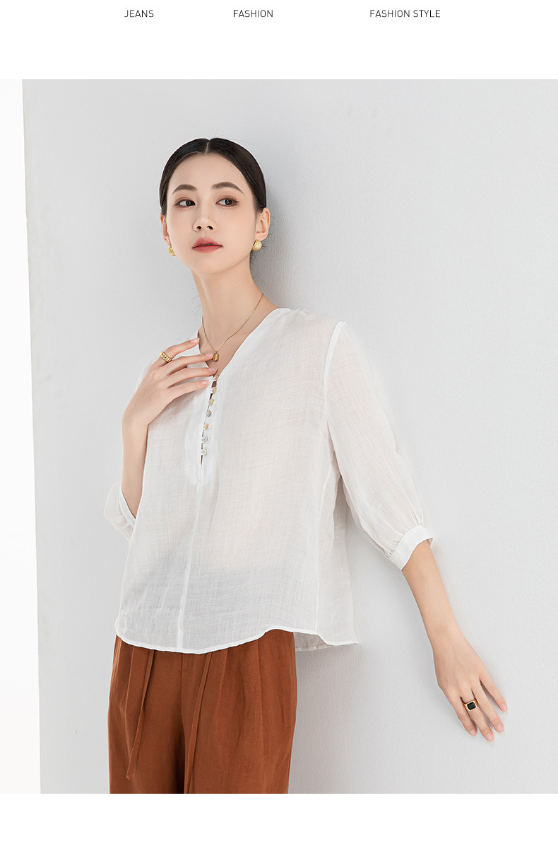鑫阁 天丝麻贝壳扣V领衬衫2026夏季新款休闲随性佰搭七分袖小衫