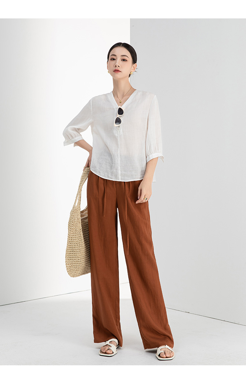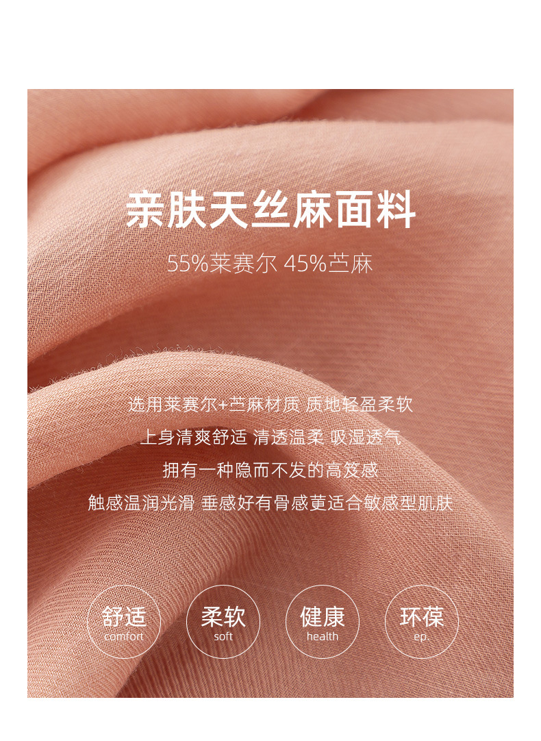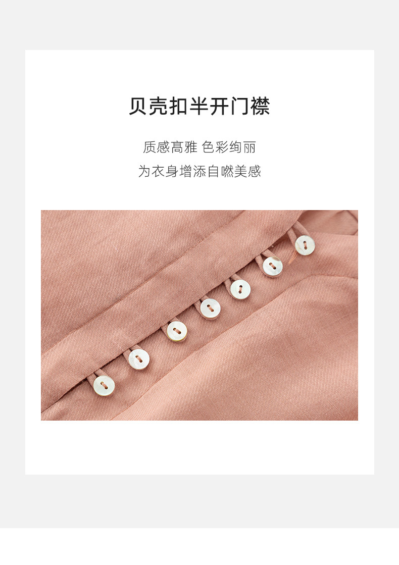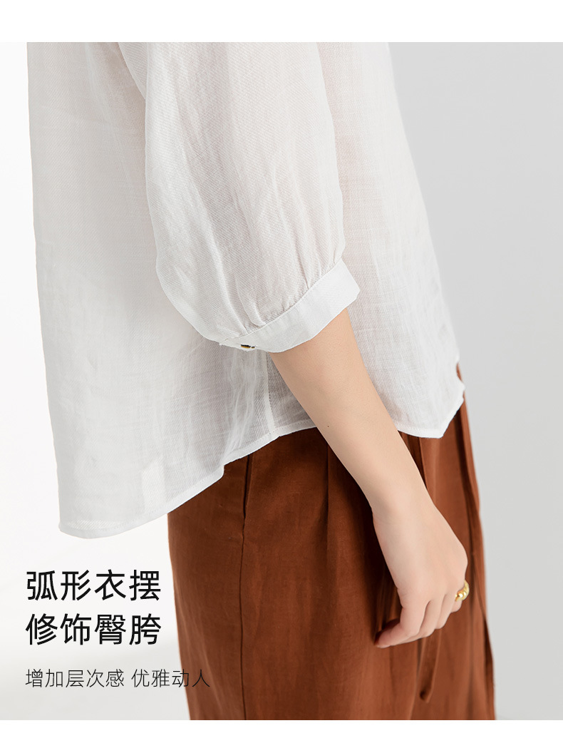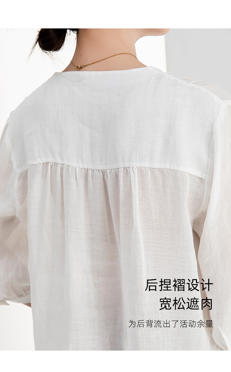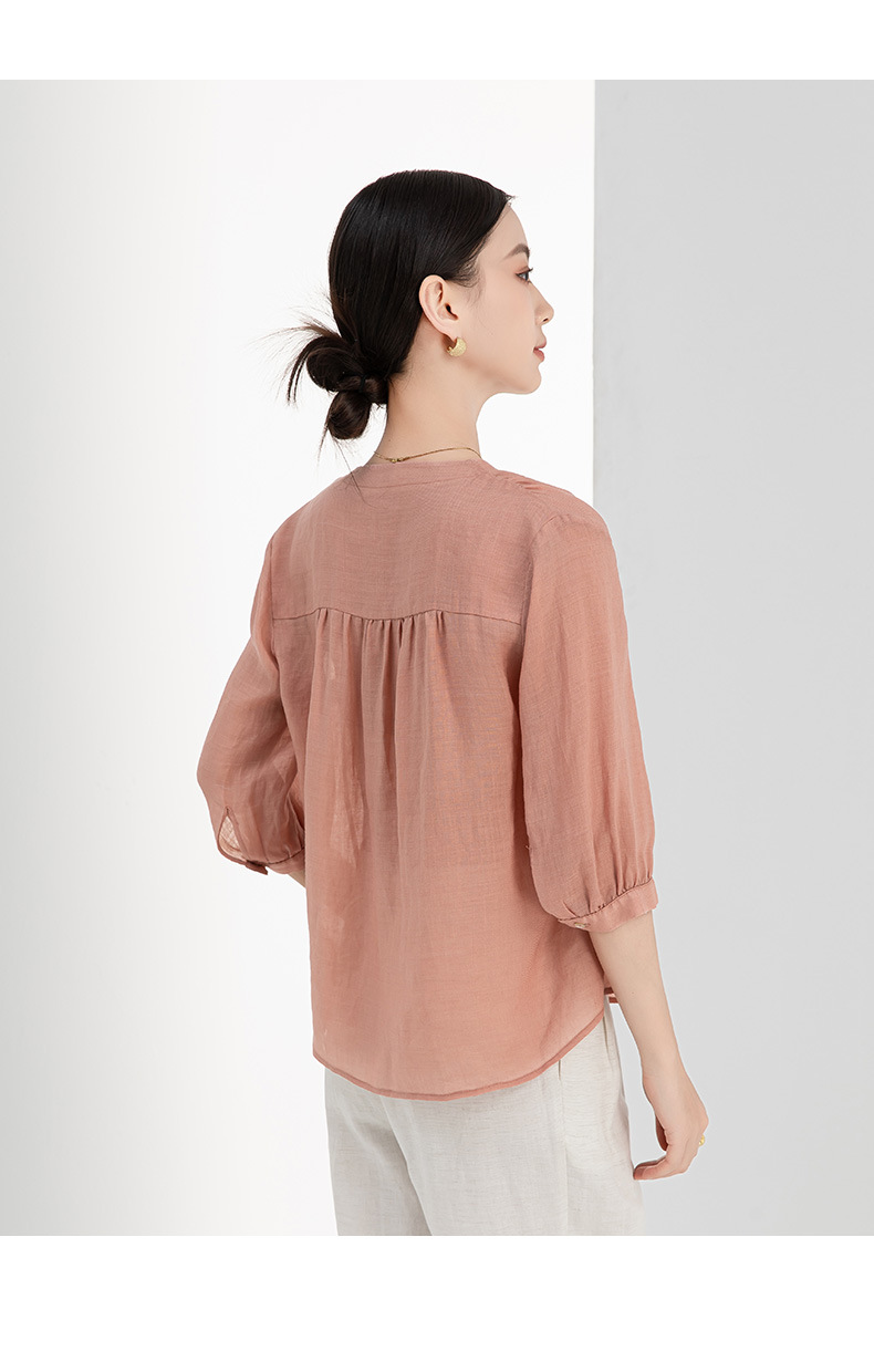 鑫阁 天丝麻贝壳扣V领衬衫2026夏季新款休闲随性佰搭七分袖小衫