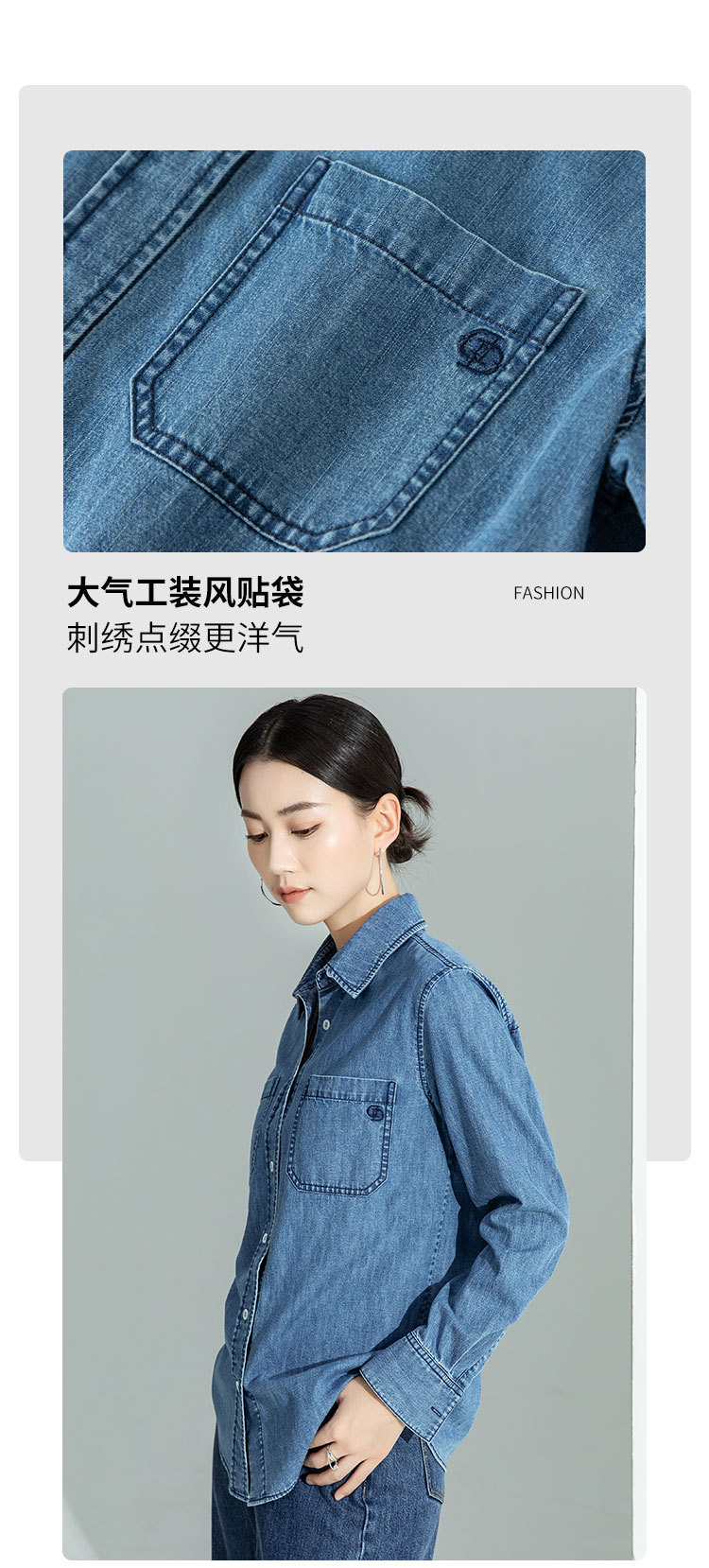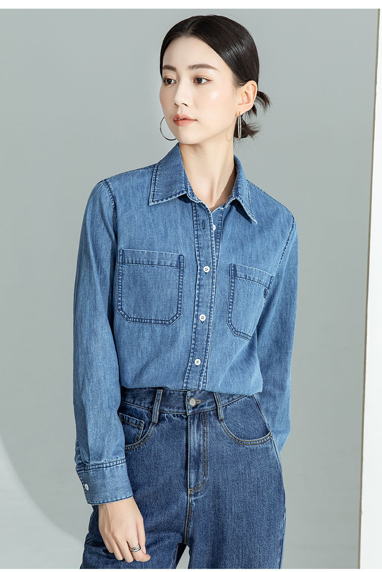 休闲时尚牛仔衬衫外套女2026新款宽松叠穿别致复古蓝色长袖衬衣