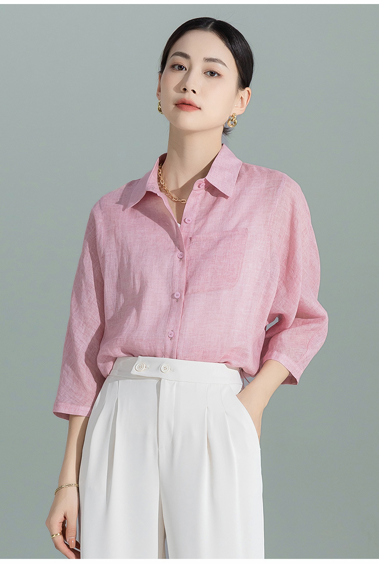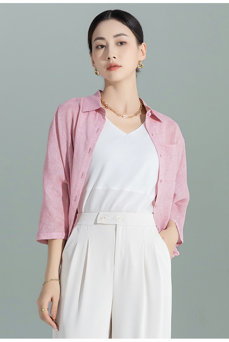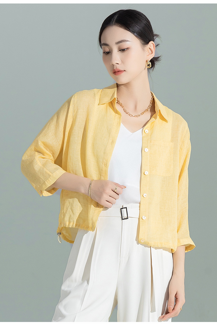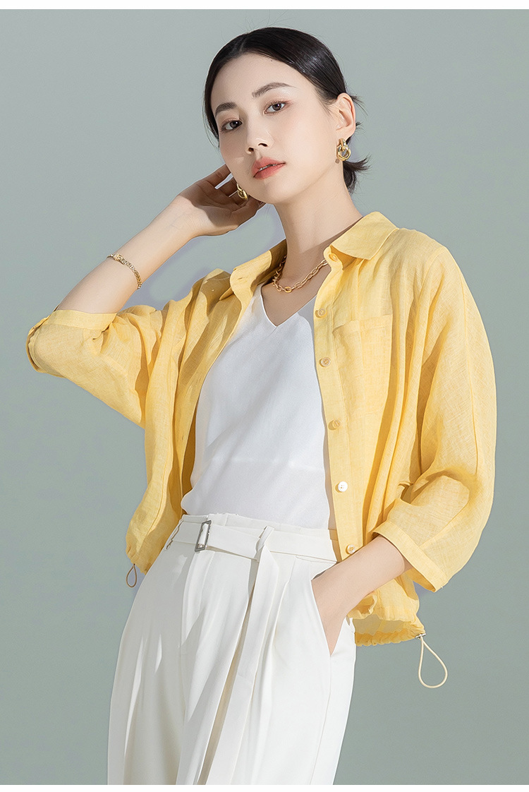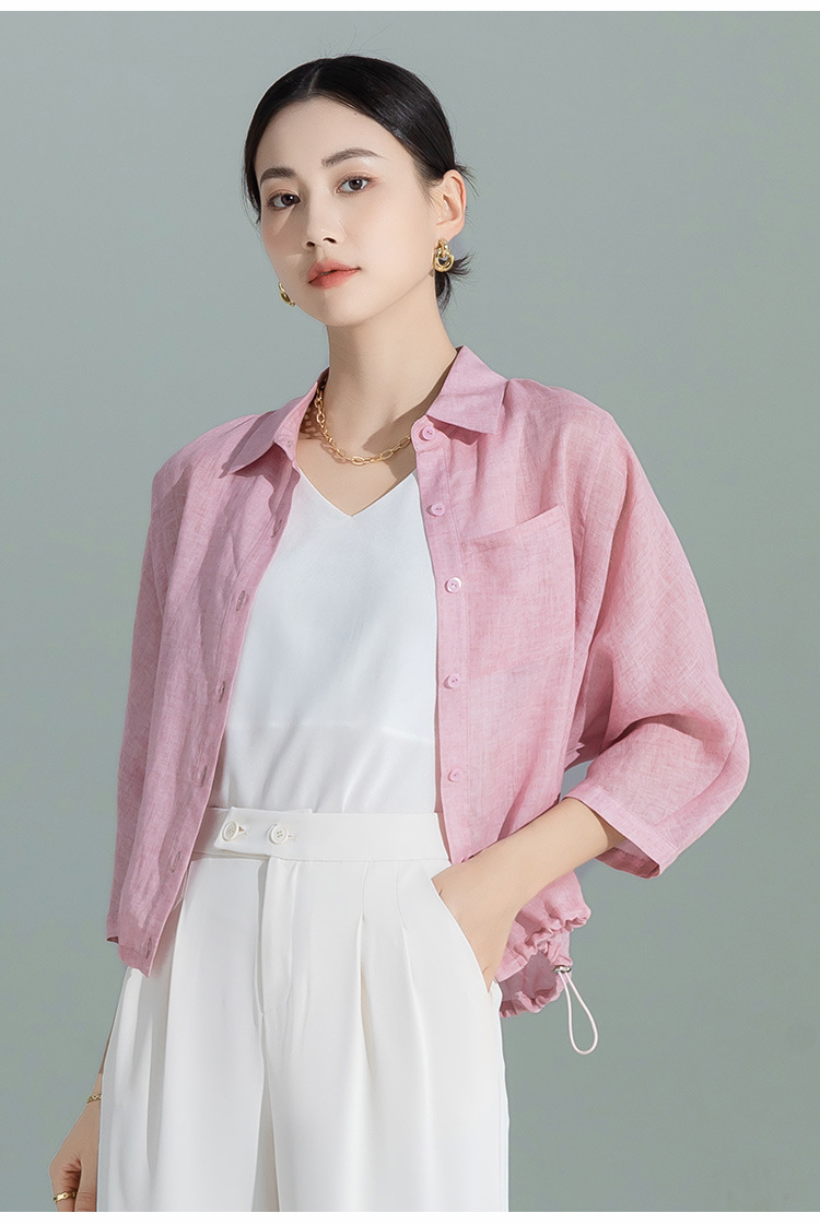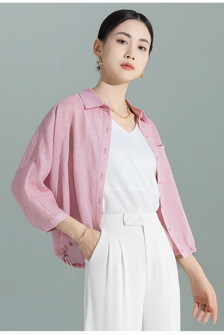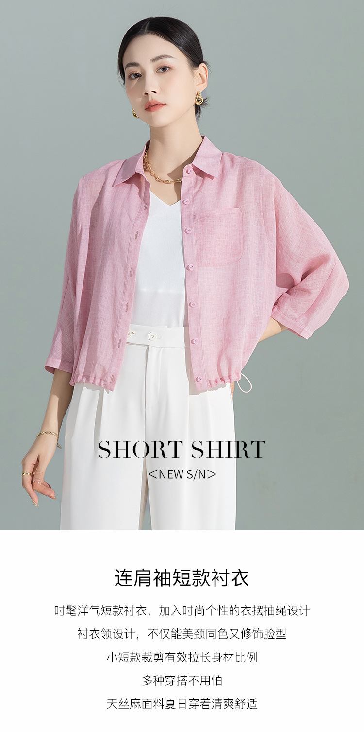 天丝麻七分袖宽松衬衫女夏季新款显瘦上衣设计感抽绳短款防晒外套