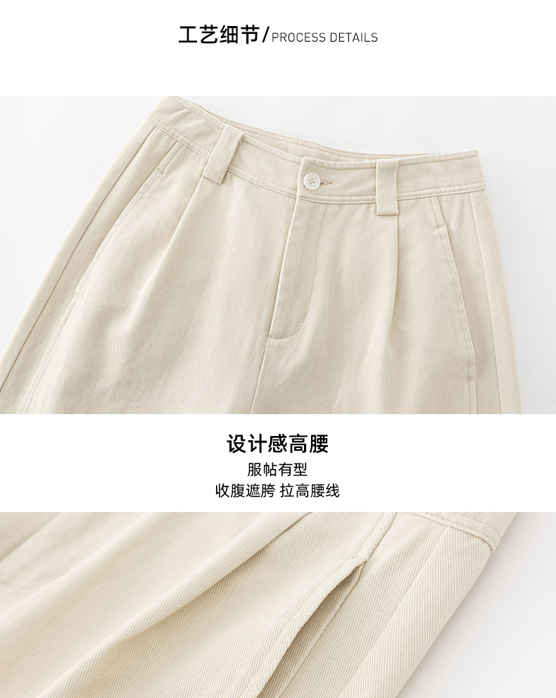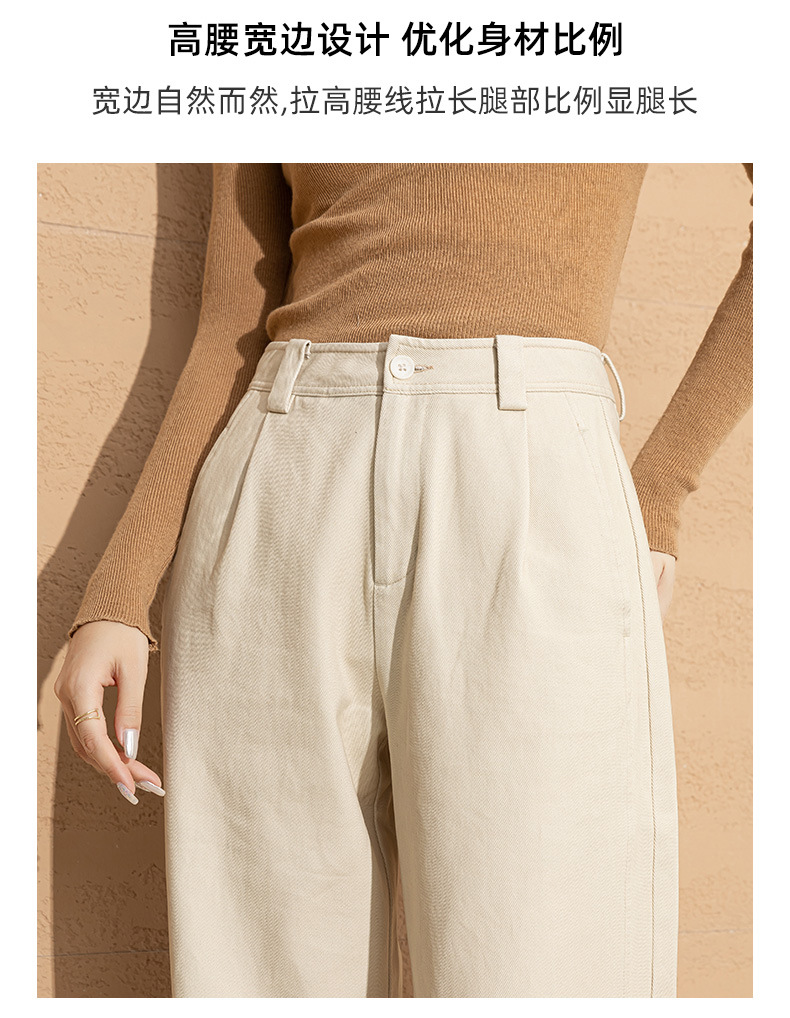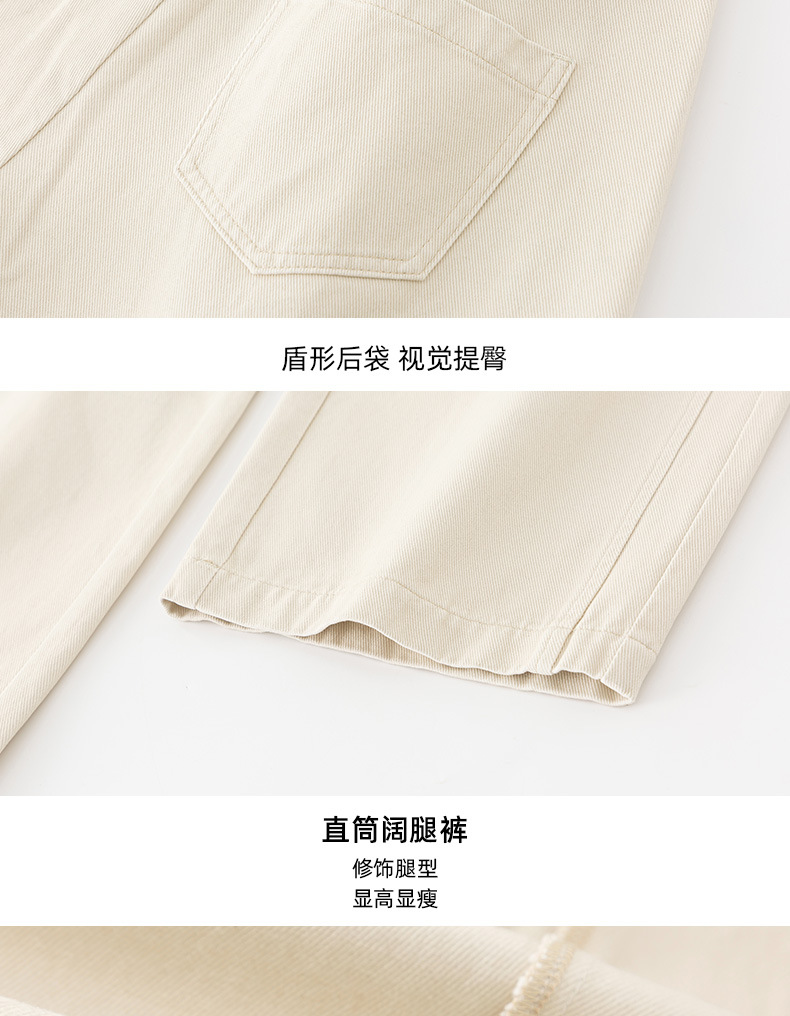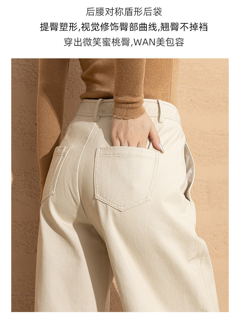 米白色窄版阔腿牛仔裤女春2026年新款高腰显瘦宽松直筒垂感拖地裤