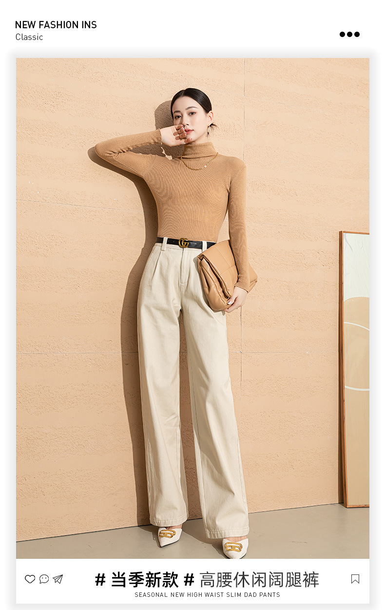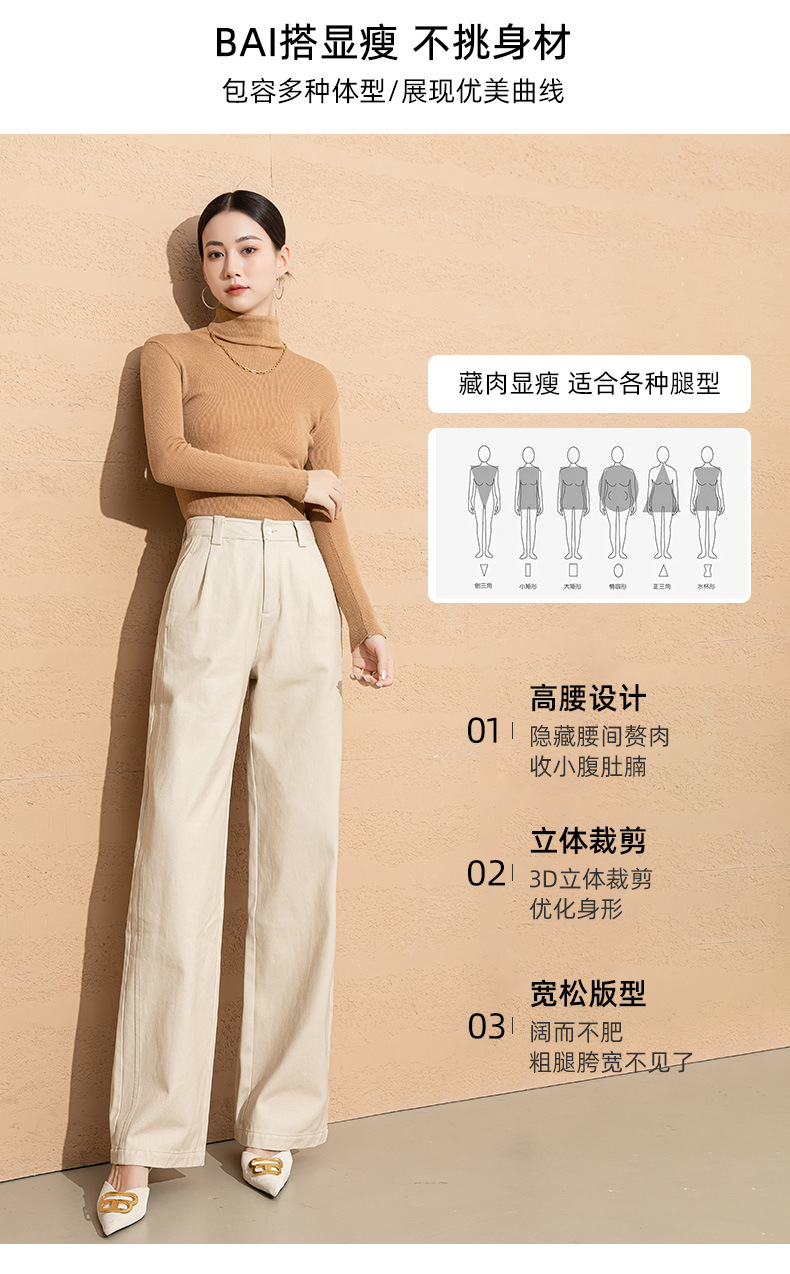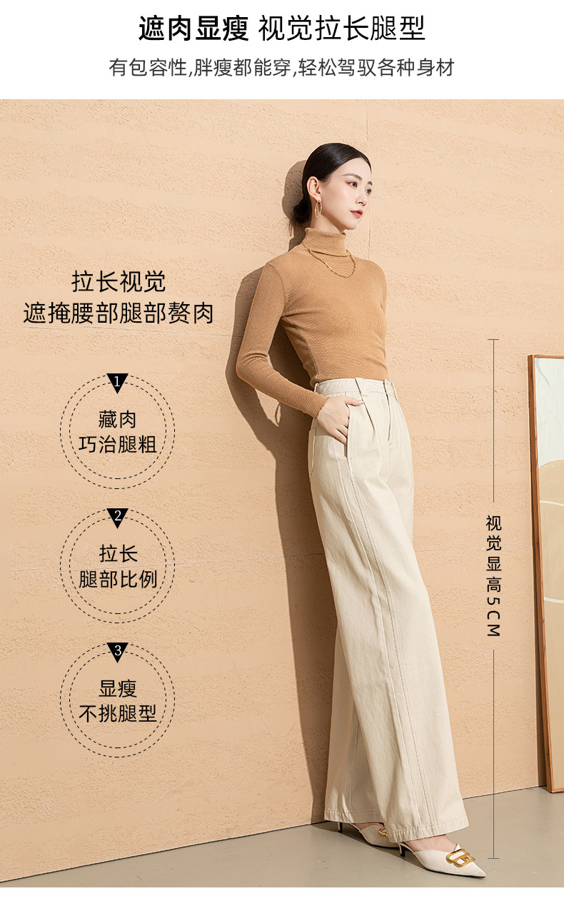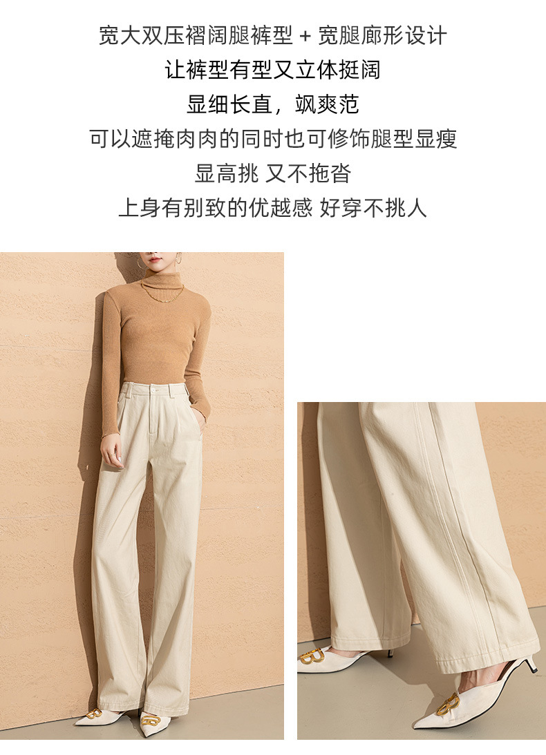 米白色窄版阔腿牛仔裤女春2026年新款高腰显瘦宽松直筒垂感拖地裤