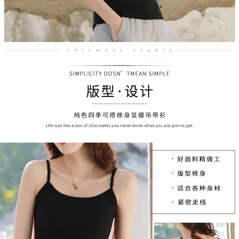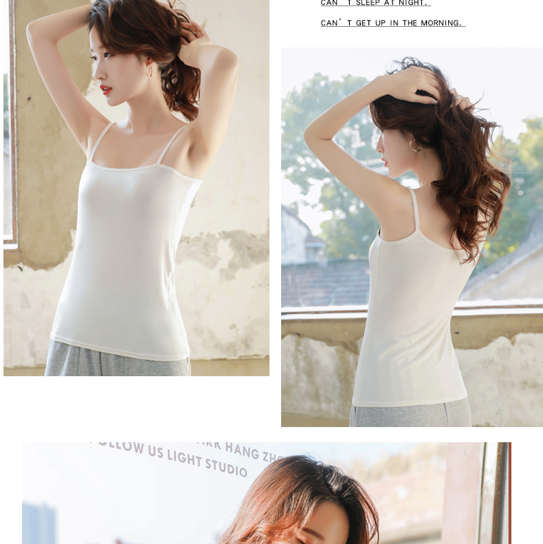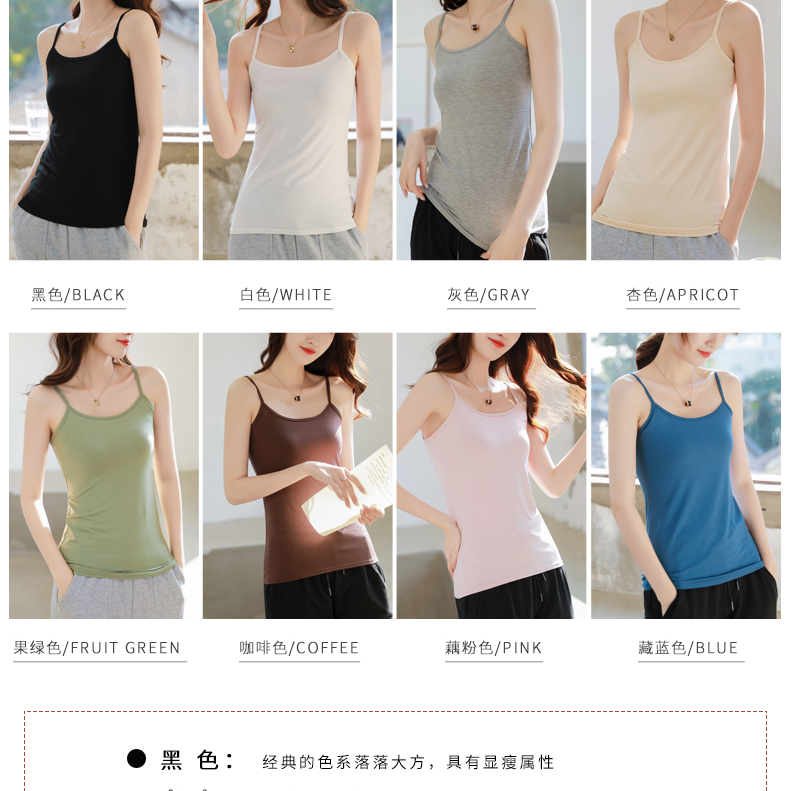 吊带背心女打底外穿无袖上衣百搭性感莫代尔黑白色吊带女学生内搭