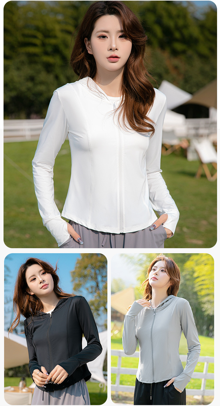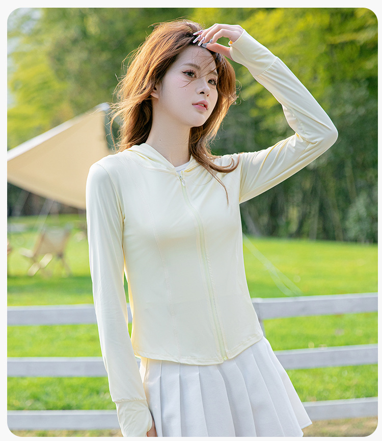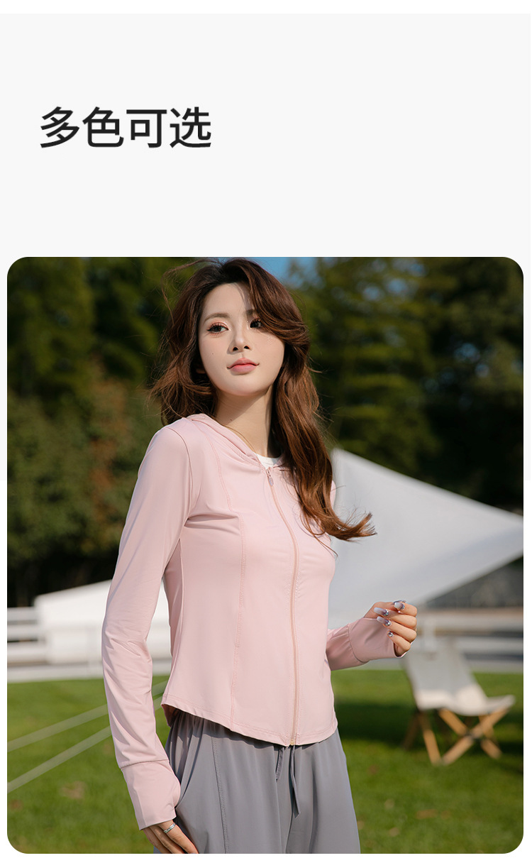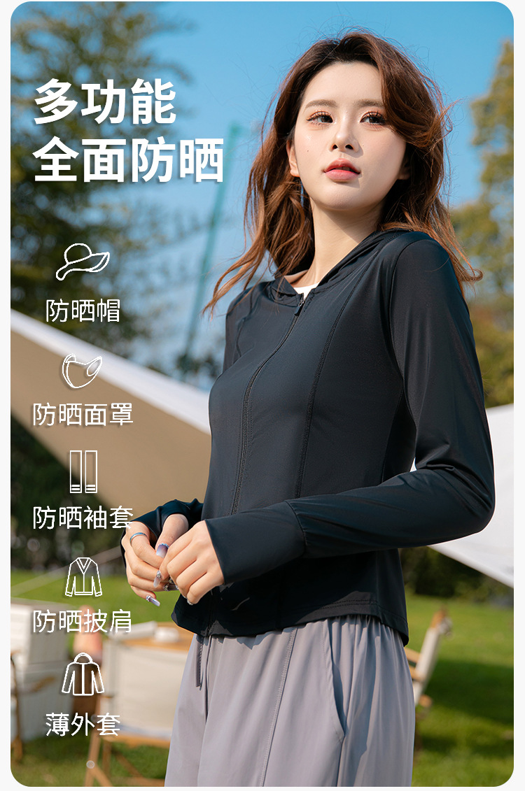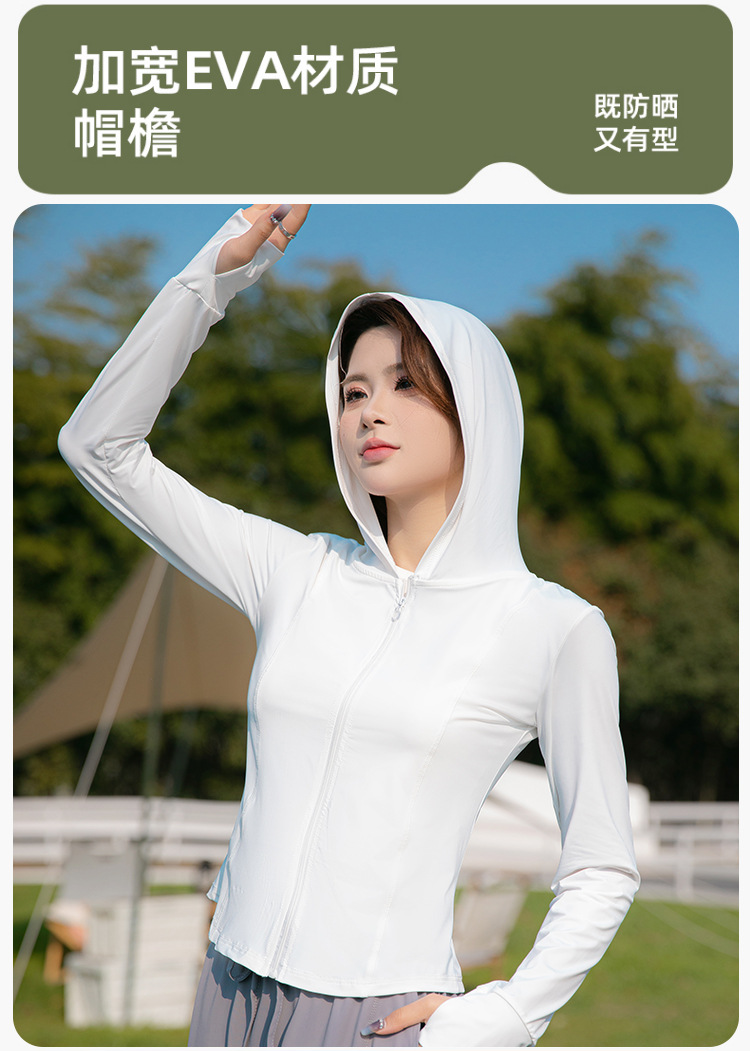 夏季云朵原纱锦纶修身防晒衣女款遮阳防紫外线连帽瑜伽防晒服批发