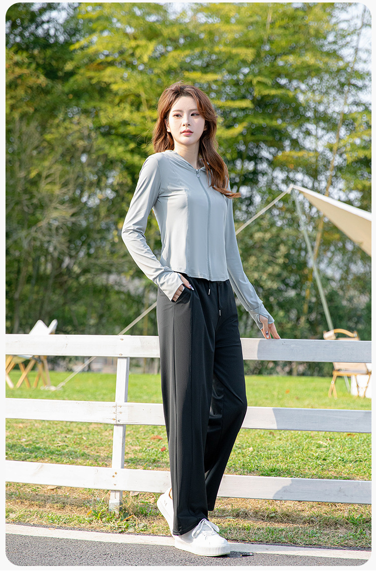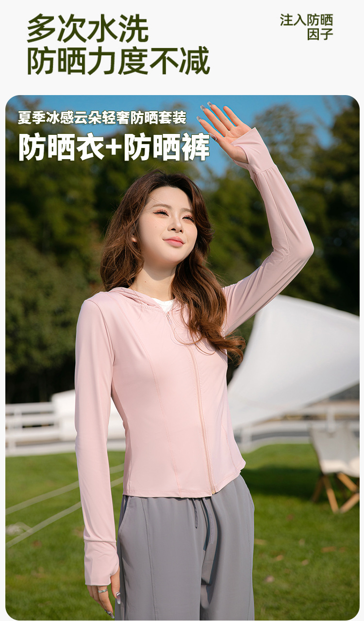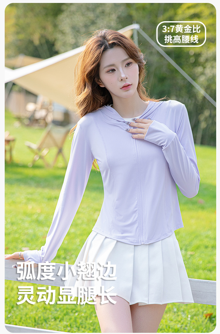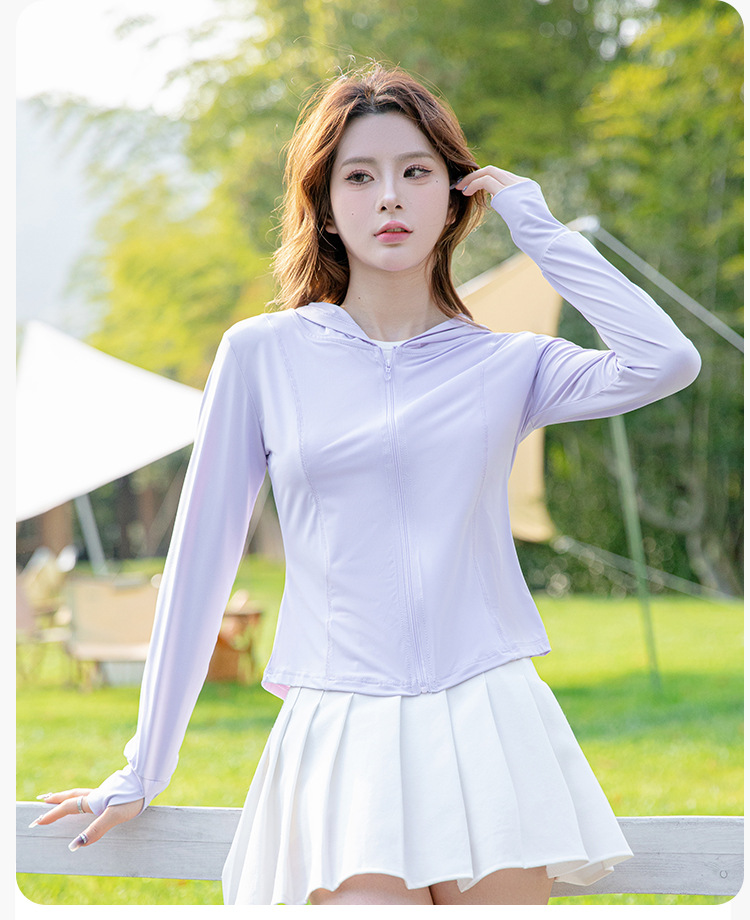 夏季云朵原纱锦纶修身防晒衣女款遮阳防紫外线连帽瑜伽防晒服批发