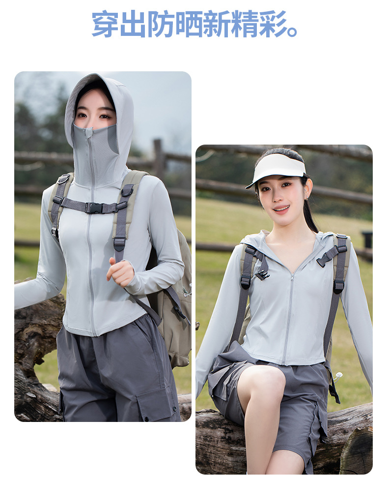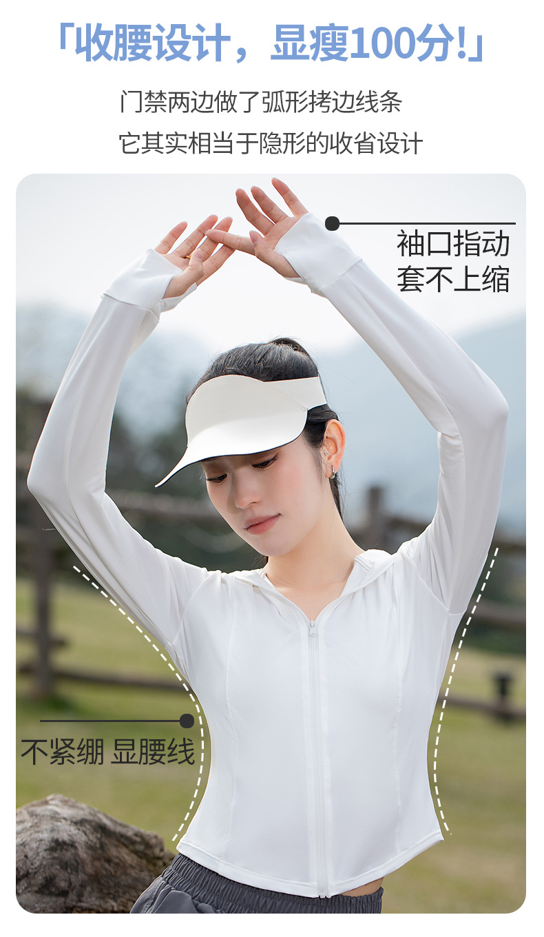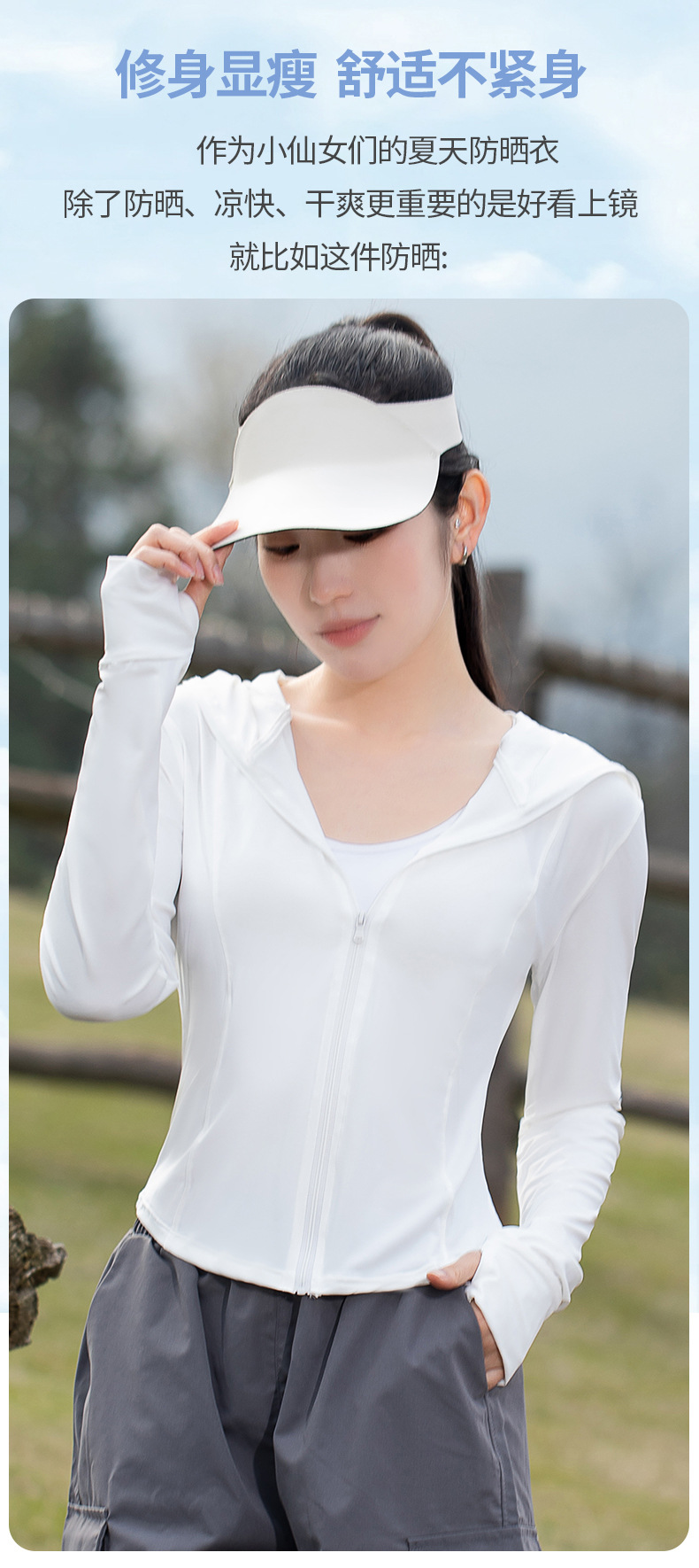 修身款收腰防晒衣女夏冰感防紫外线外套户外骑行大帽檐宽松防晒服
