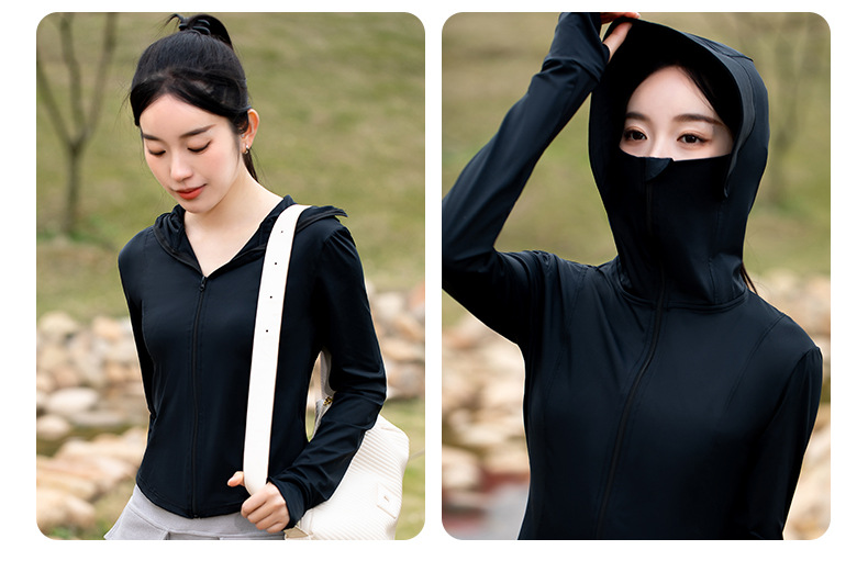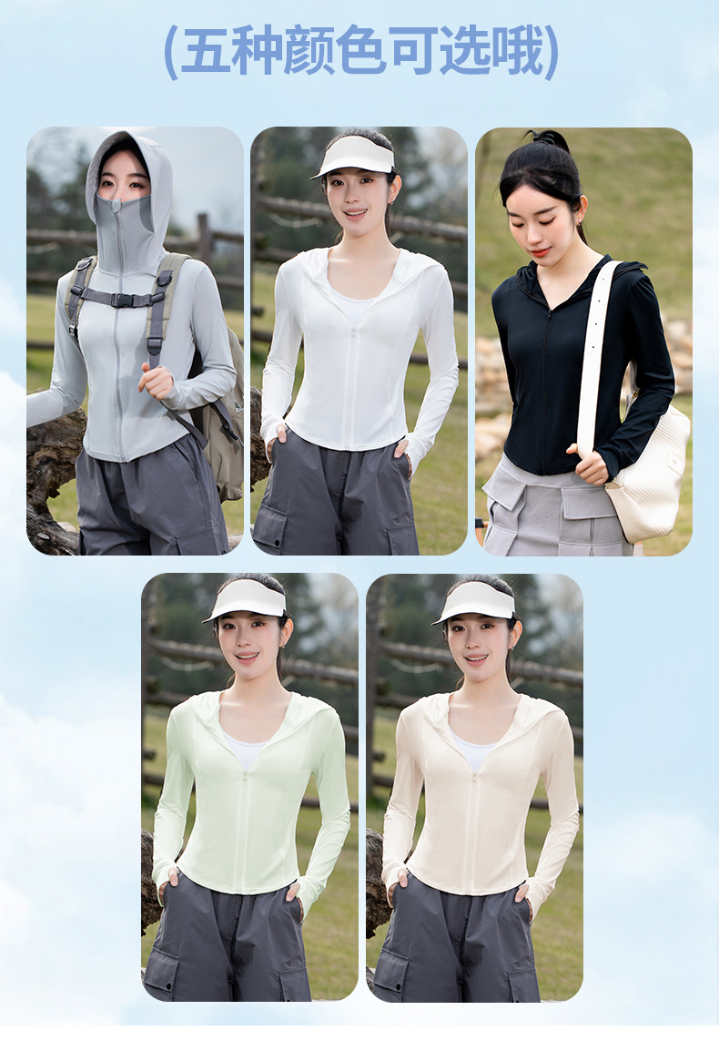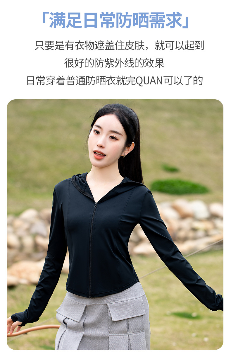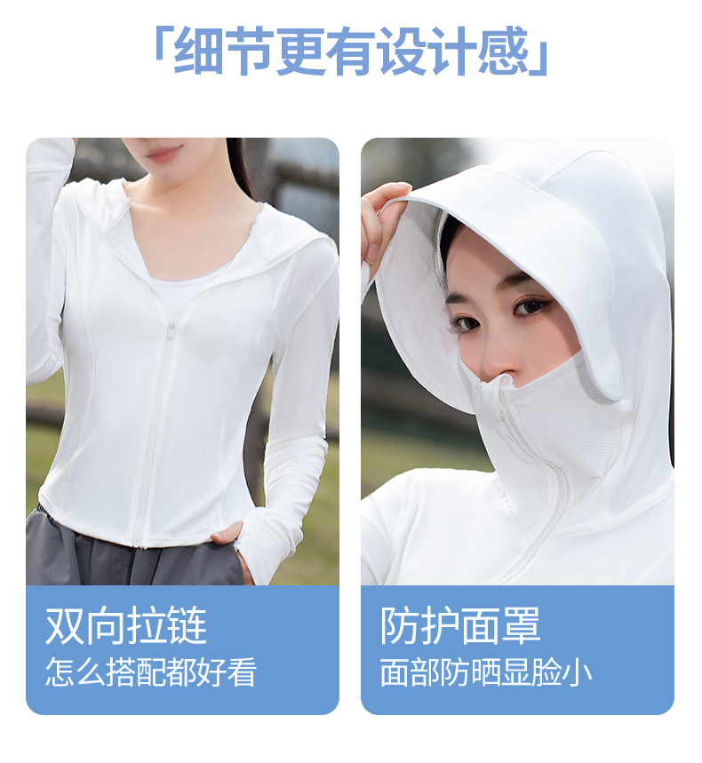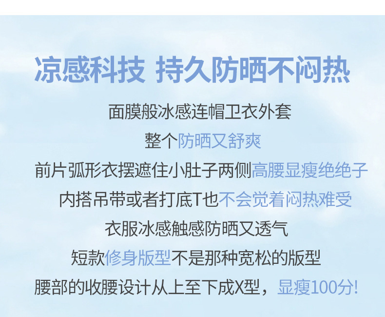 修身款收腰防晒衣女夏冰感防紫外线外套户外骑行大帽檐宽松防晒服