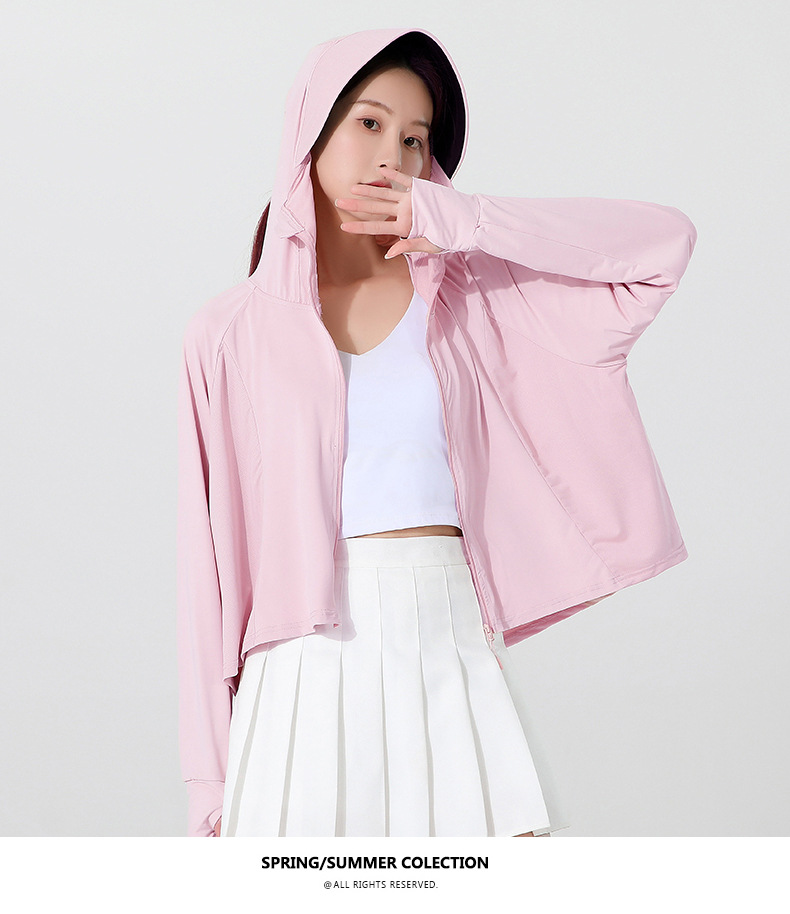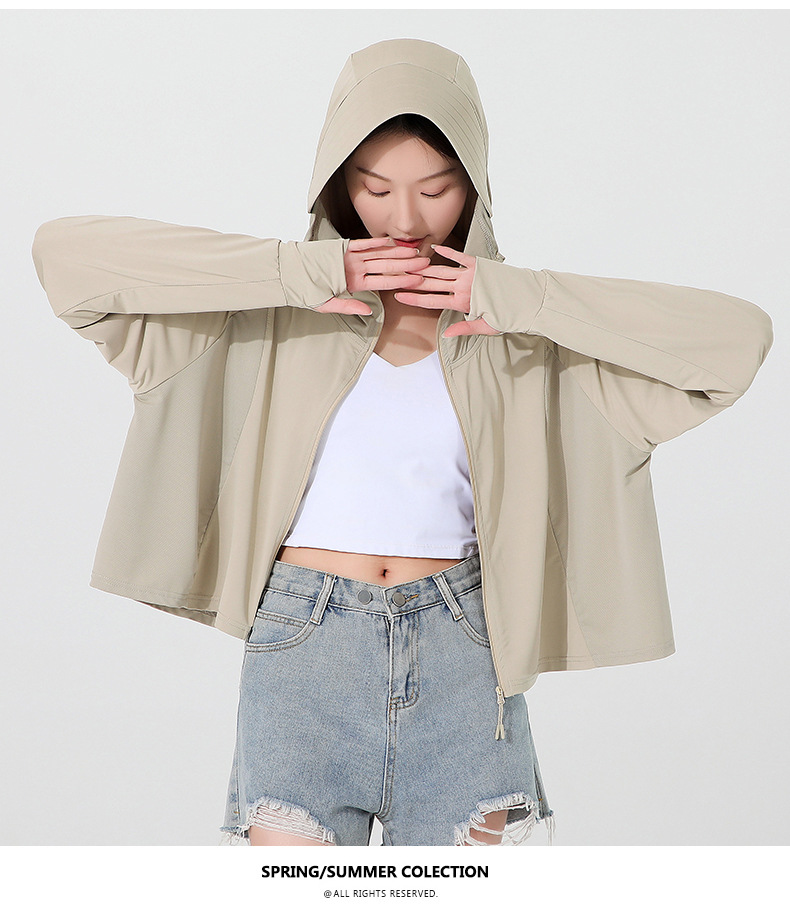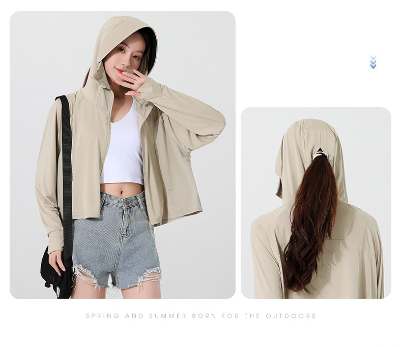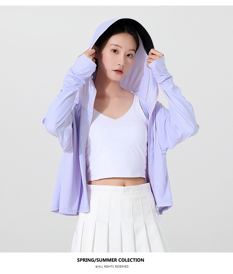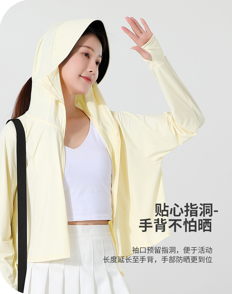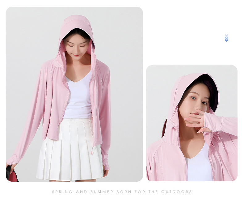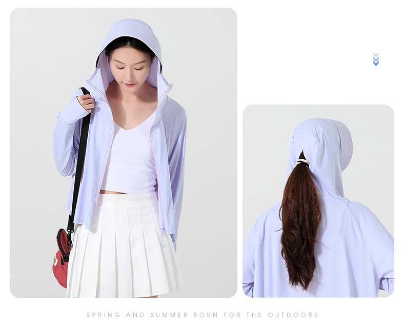 小清新女士防晒衣防紫外线冰感透气皮肤衣女带马尾洞连帽防晒外套