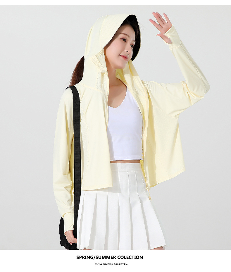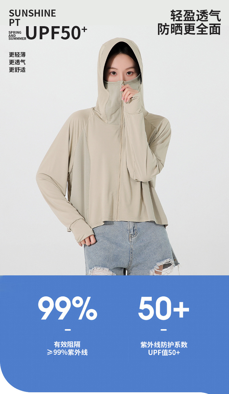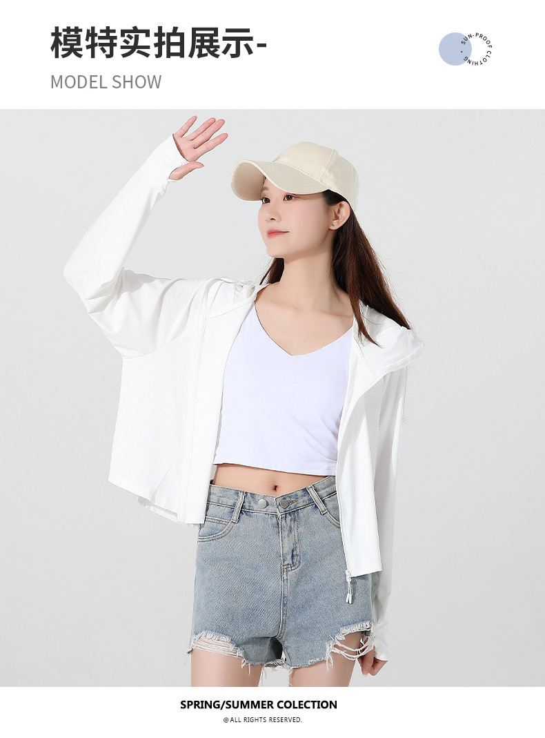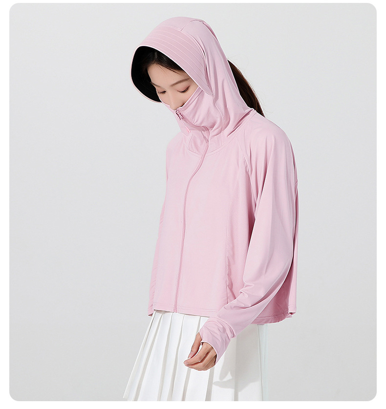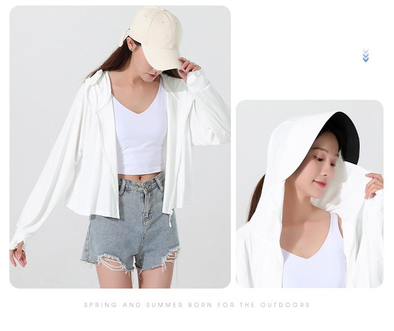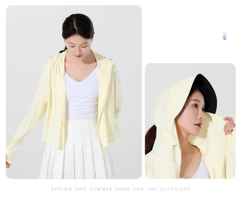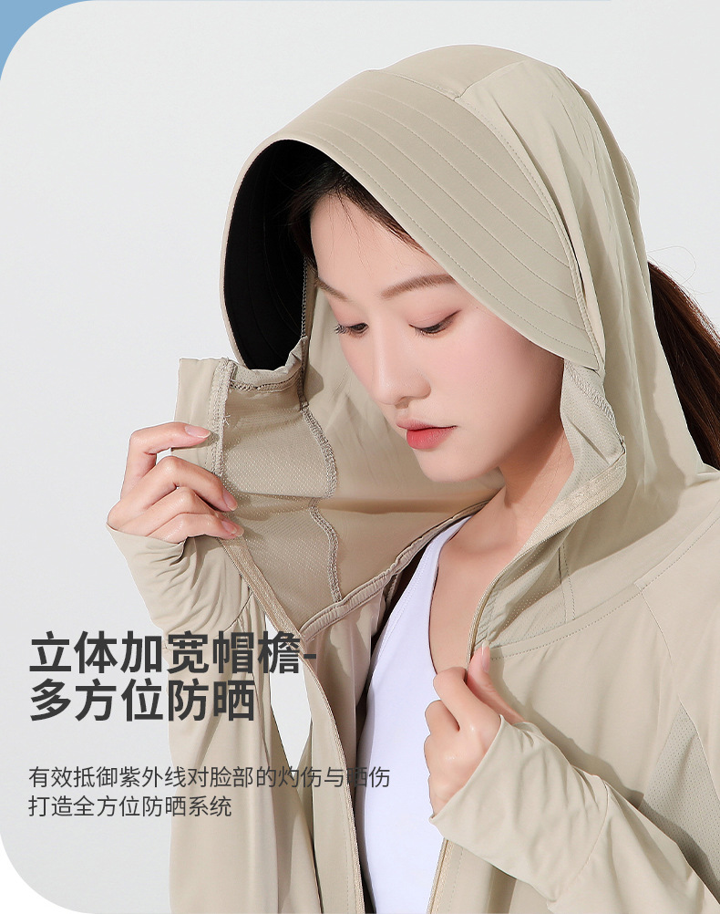 小清新女士防晒衣防紫外线冰感透气皮肤衣女带马尾洞连帽防晒外套