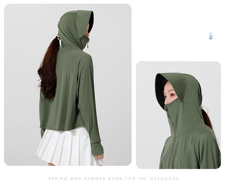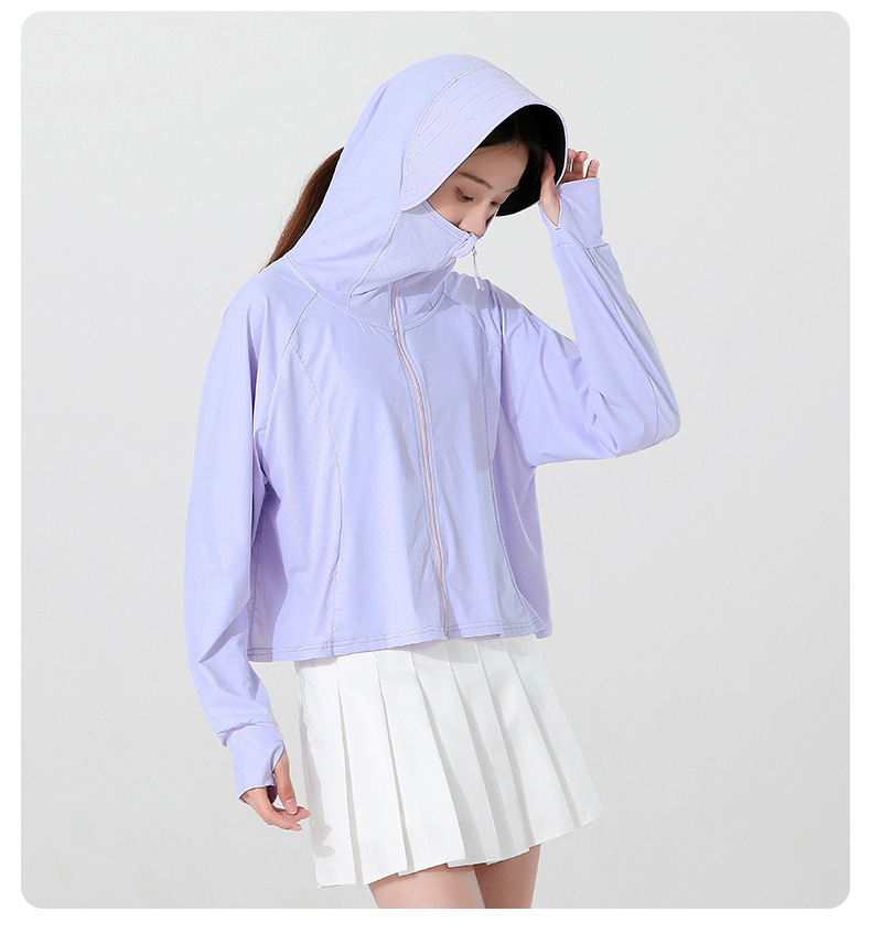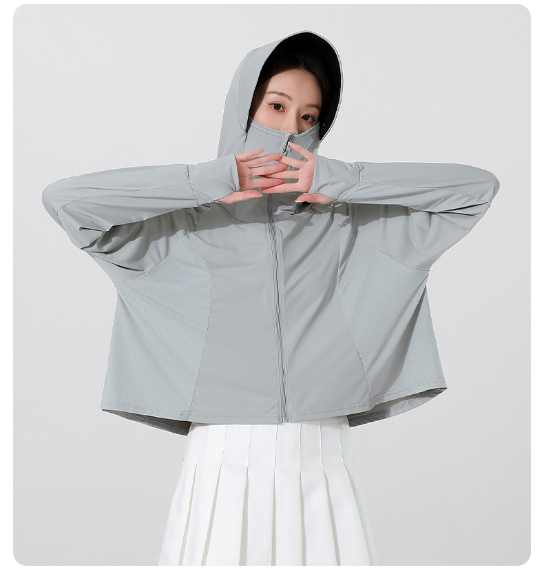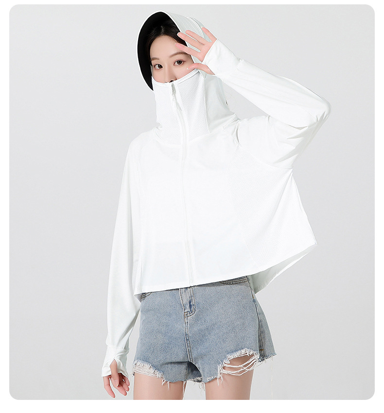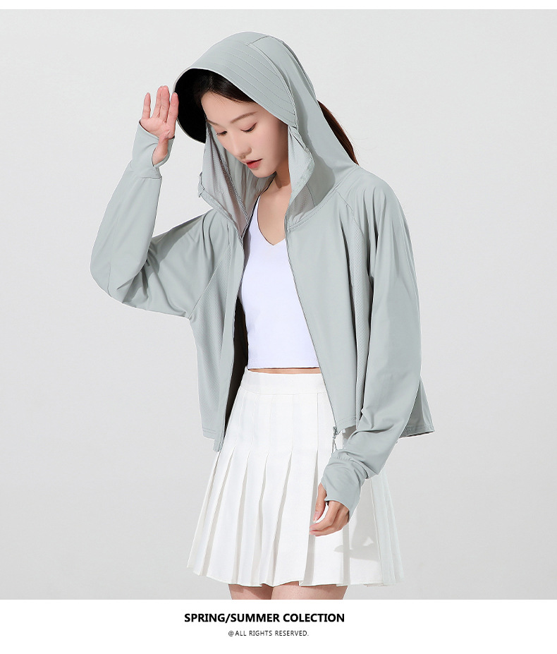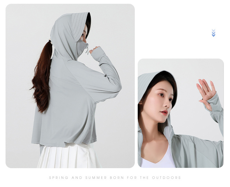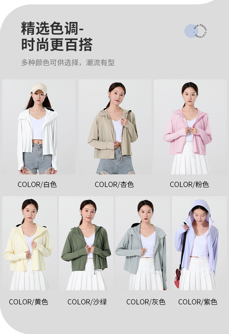 小清新女士防晒衣防紫外线冰感透气皮肤衣女带马尾洞连帽防晒外套