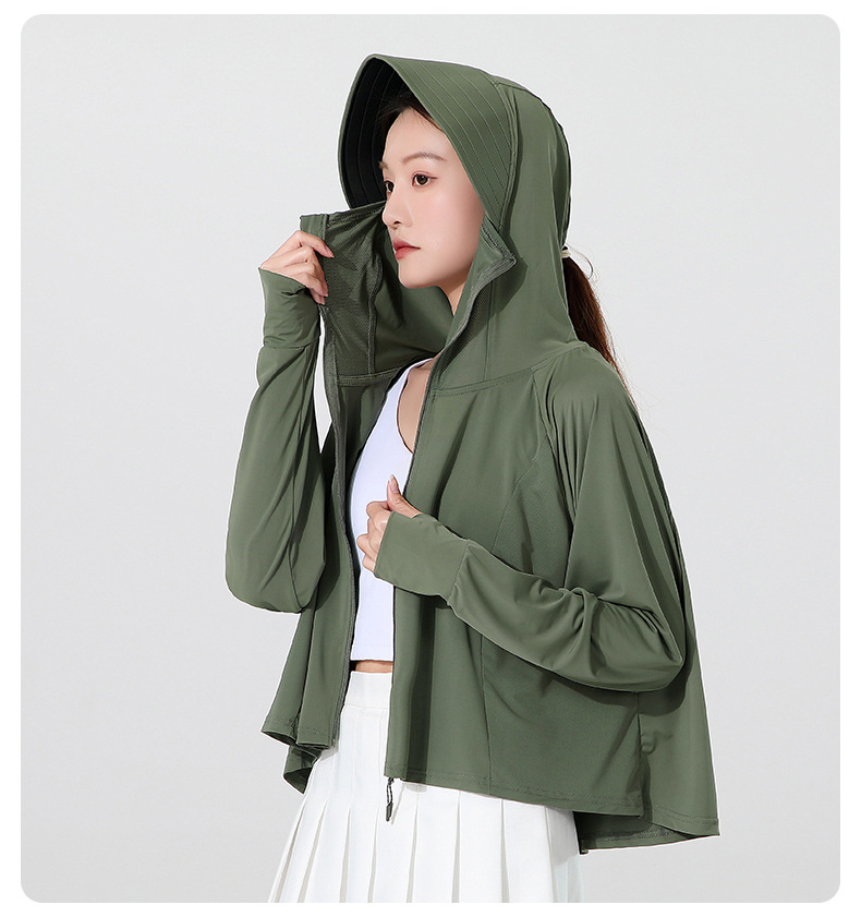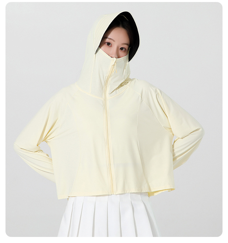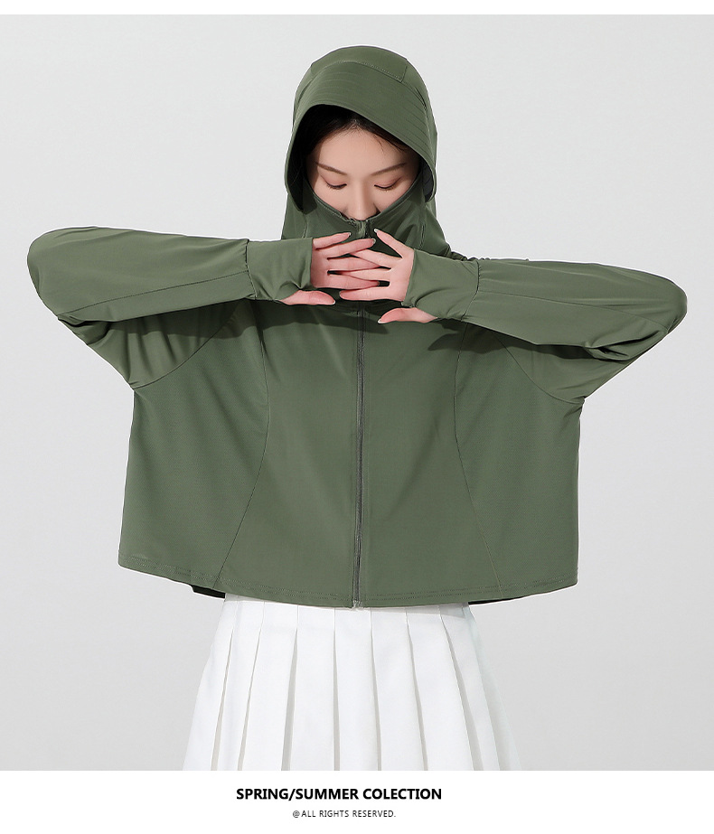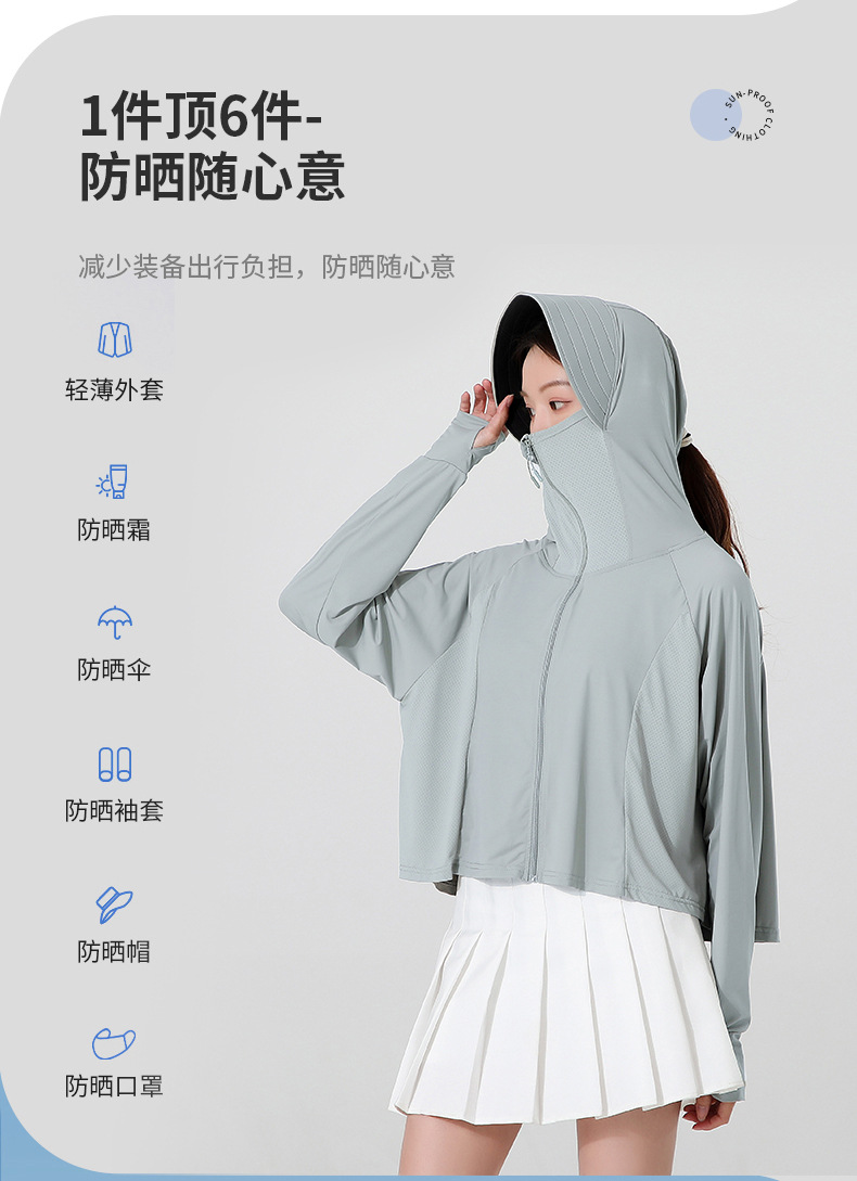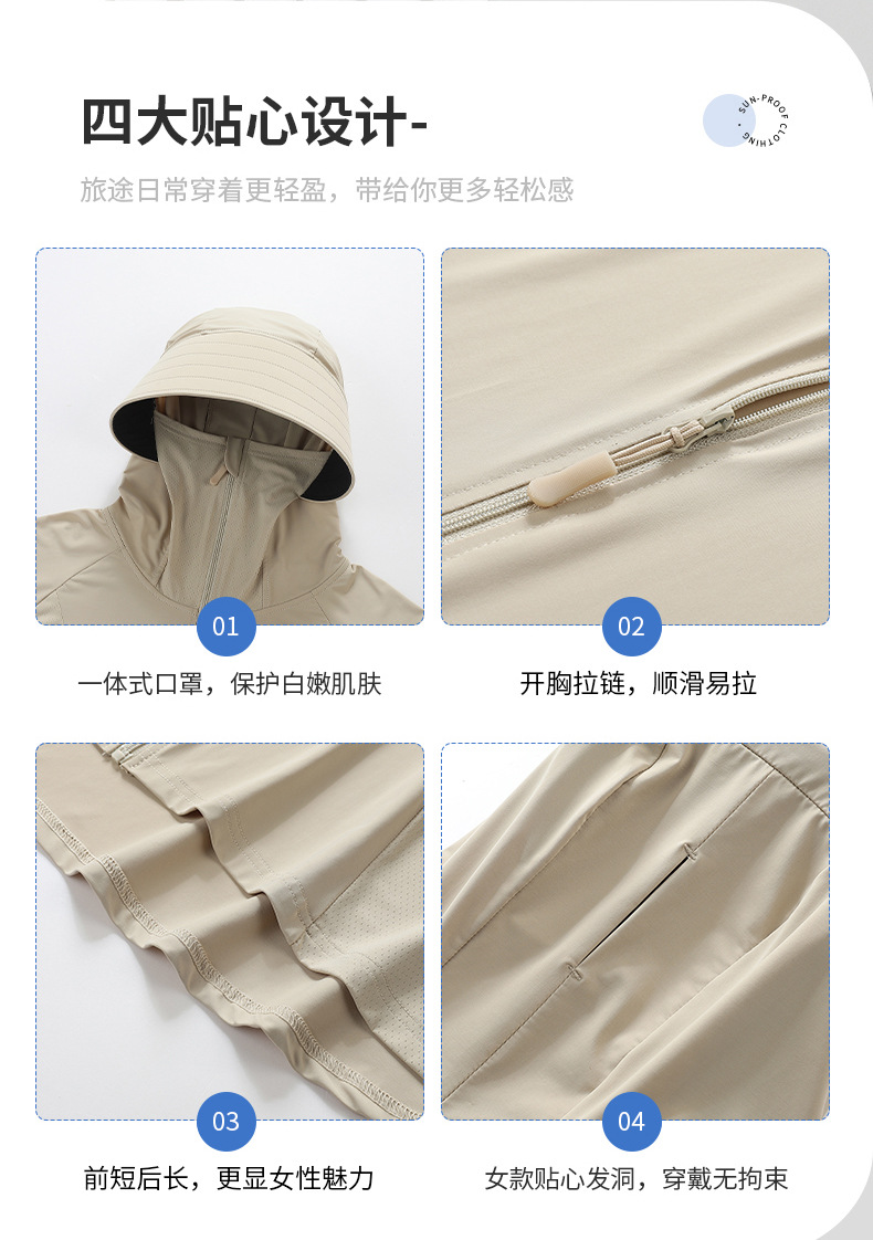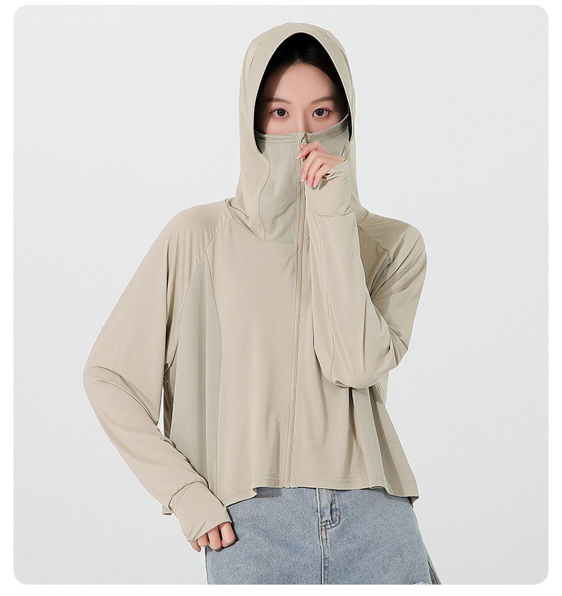 小清新女士防晒衣防紫外线冰感透气皮肤衣女带马尾洞连帽防晒外套