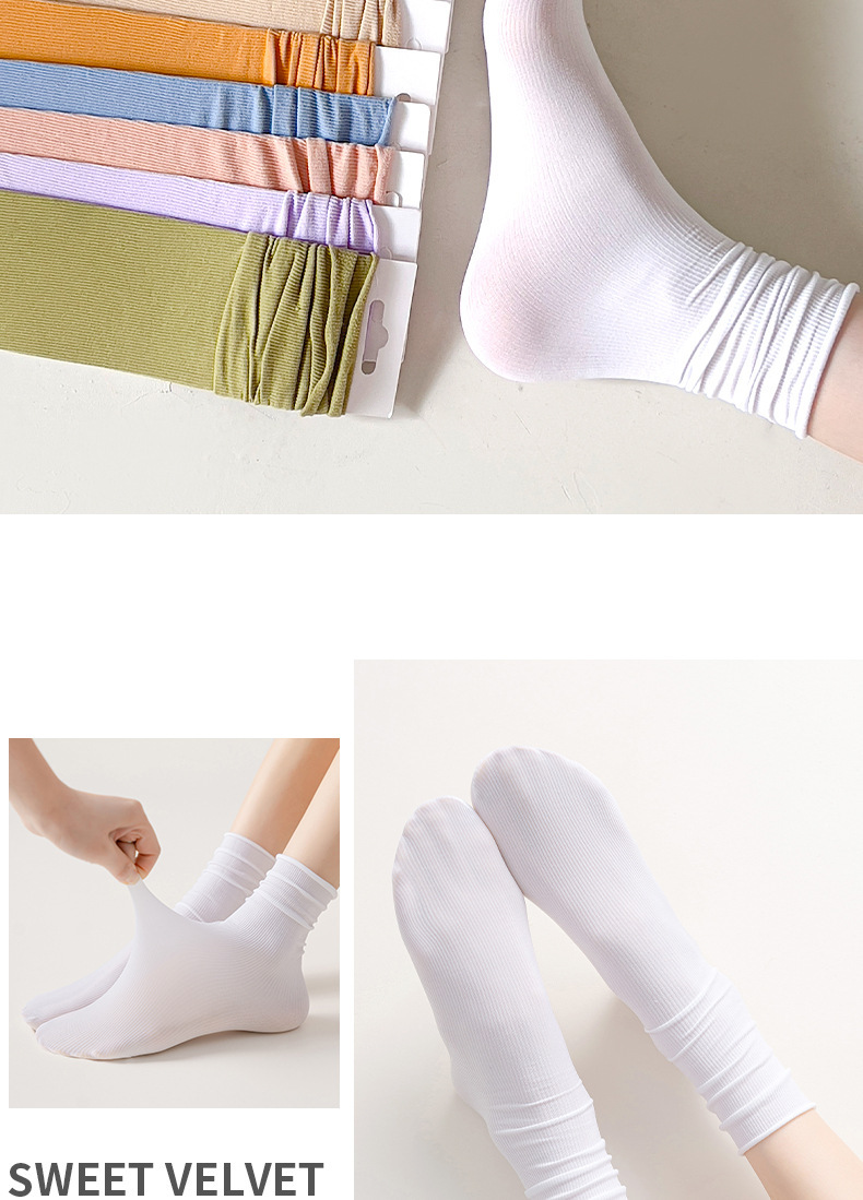 堆堆冰冰袜夏春秋季纯色天鹅绒中长筒女士薄款冰丝袜日系月子女袜
